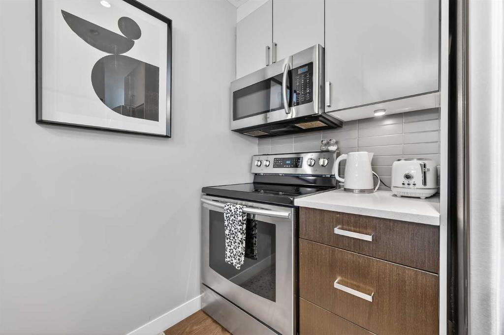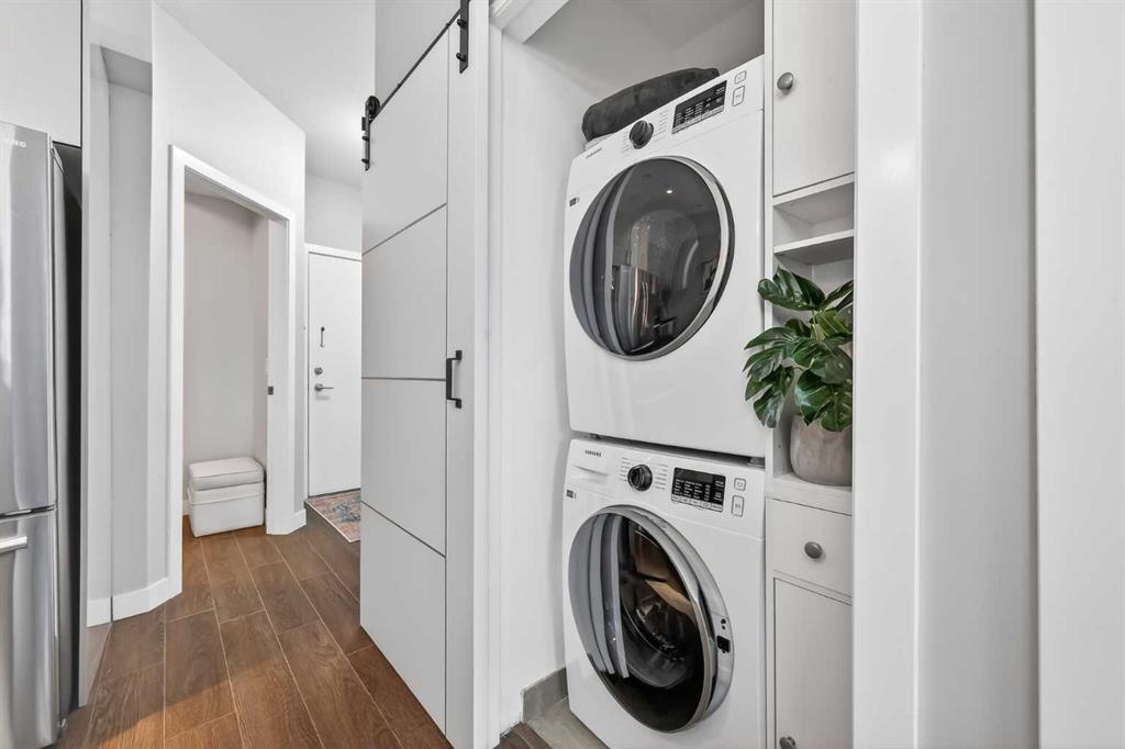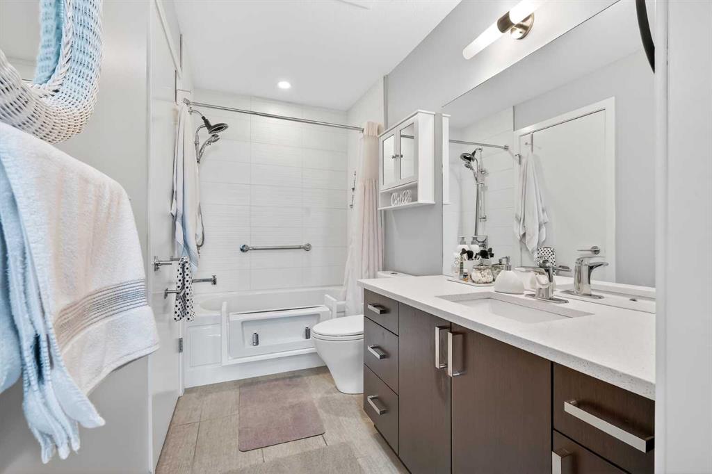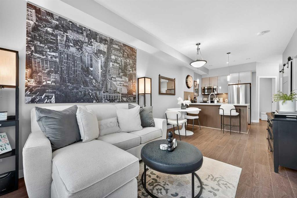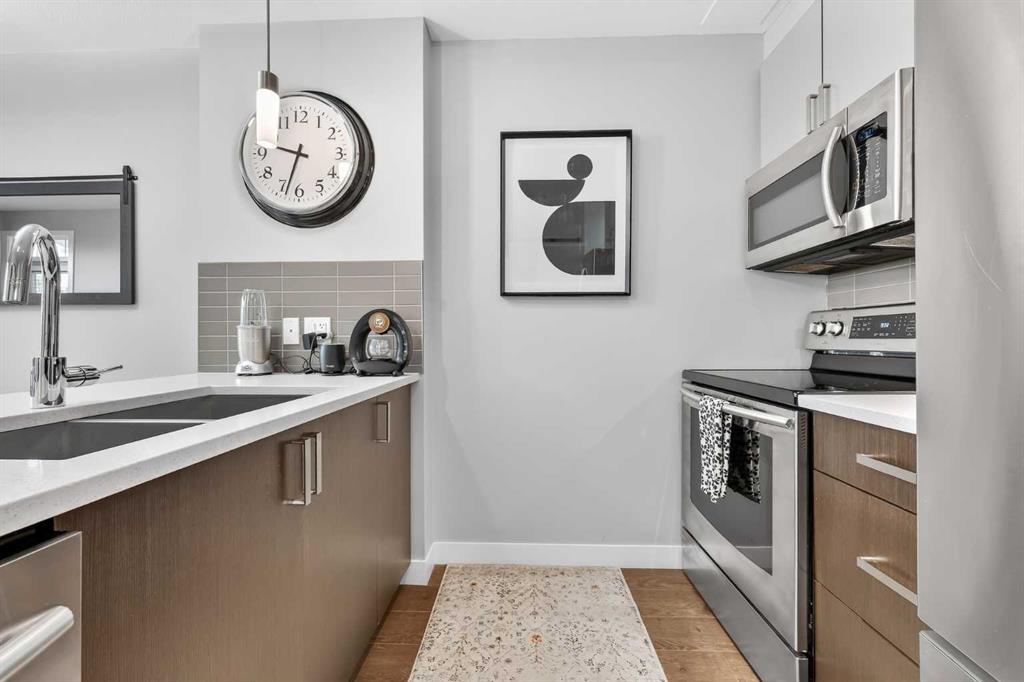 Pride of ownership shines in this fantastic ground floor condo in the premier lake community of Auburn Bay. This 1-bedroom plus den unit features an open concept layout with 9’ ceilings, fresh paint, and expansive windows. The modern kitchen is a standout, boasting quartz countertops, a large island, stainless steel appliances, and custom cabinetry. Step directly from your living room onto a massive private patio equipped with a gas BBQ line. The primary suite offers a walk-through closet and dual access to the 4-piece bath. Professional perks include infloor heating, a versatile den/office/storage space, underground parking, and a separate storage locker. Enjoy year-round lake access (skating, swimming, fishing, tennis) and walkability to the South Health Campus, YMCA, and Seton’s vibrant shopping district.