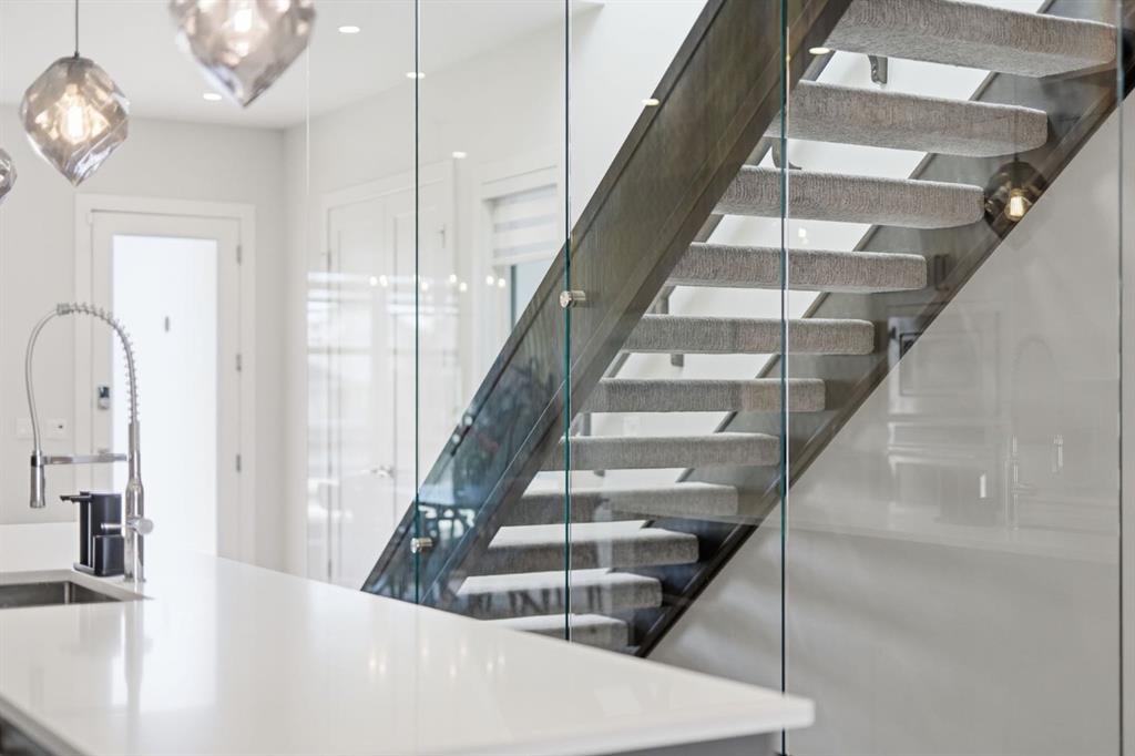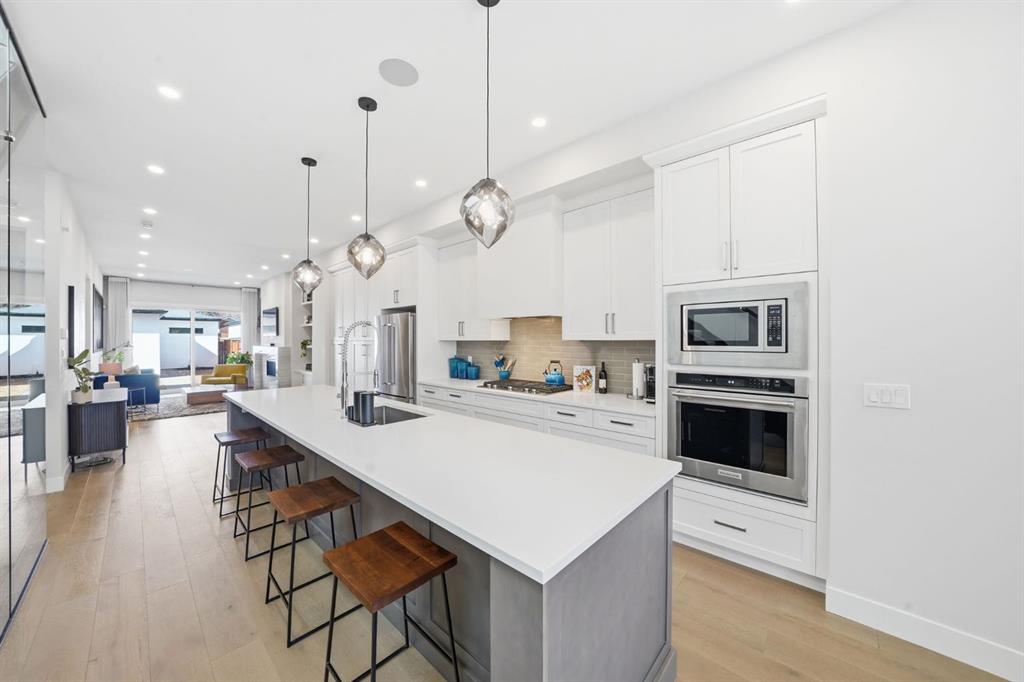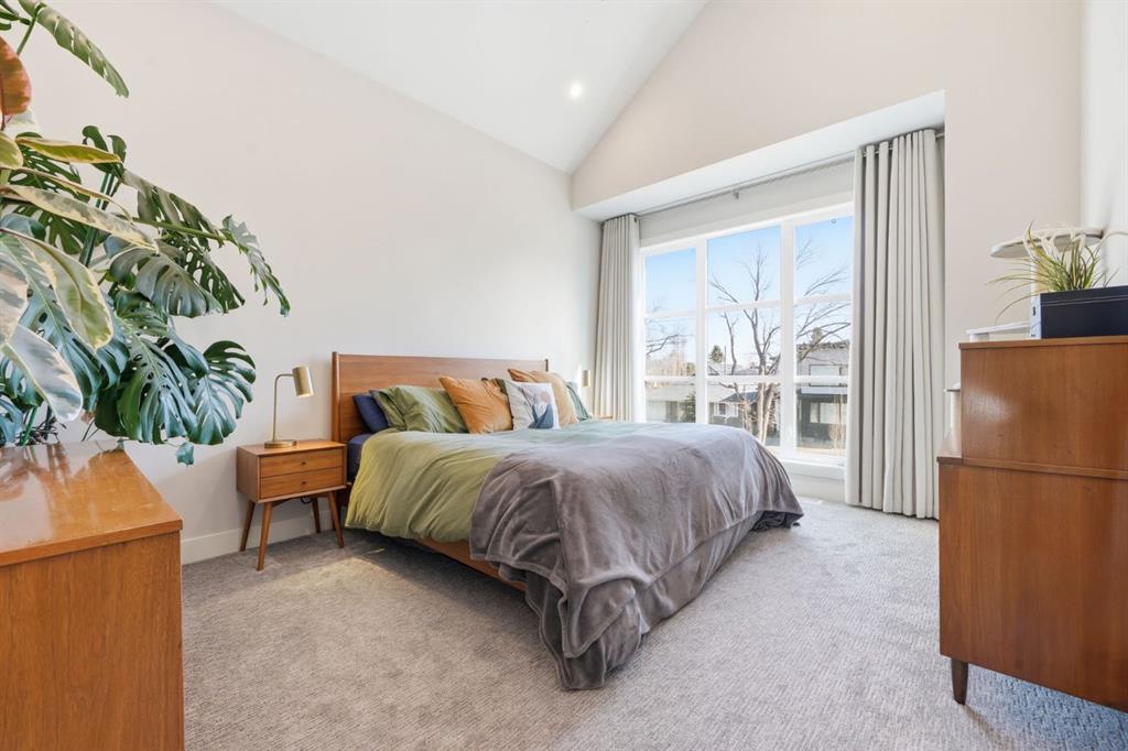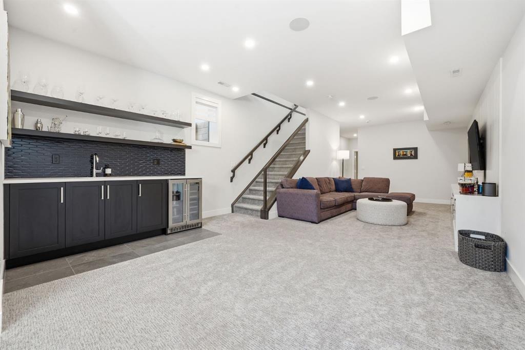Homes like this don’t come up often in the inner city. This detached home in Spruce Cliff offers over 2,160 sq ft above grade across four bedrooms, three full bathrooms, and a fully developed basement — all on an oversized lot with a triple detached garage and landscaped west-facing backyard with poured concrete patio and perennials planted throughout. Main Floor - Engineered hardwood and twelve-foot ceilings set the tone throughout. The kitchen is built for the way you actually cook — full-height custom cabinetry, and a tiled backsplash, gas cooktop, oversized central island with 6 person seating. The living room anchors around a gas fireplace with featured tile surround, with sliding glass doors leading directly to the newly landscaped backyard. A fully tiled mudroom with built-in cabinetry and bench keeps arrivals organized. Upper Floor - The primary bedroom features a vaulted ceiling, an oversized walk-in closet with extensive built-ins, and a five-piece ensuite with heated tile floors, freestanding soaker tub, fully tiled standing shower, and quartz vanity. Two secondary bedrooms each have walk-in closets and share a well-appointed four-piece bathroom with private water closet. A dedicated laundry room with folding counter and sink rounds out the upper floor. Lower Level - A generous rec room with built-in wet bar and media nook anchors the basement. The fourth bedroom is currently set up as a private home gym — with two large closets and four-piece bathroom access, it converts effortlessly into a guest suite, office, or whatever your lifestyle calls for. Spruce Cliff puts you steps from parks, schools, the Bow River pathway, and the LRT — inner-city convenience without the density.