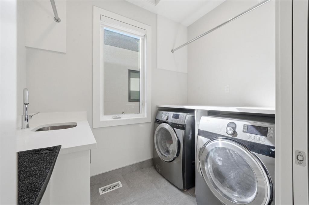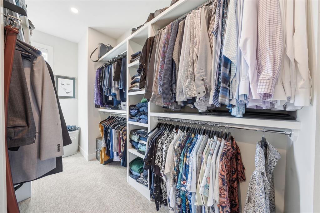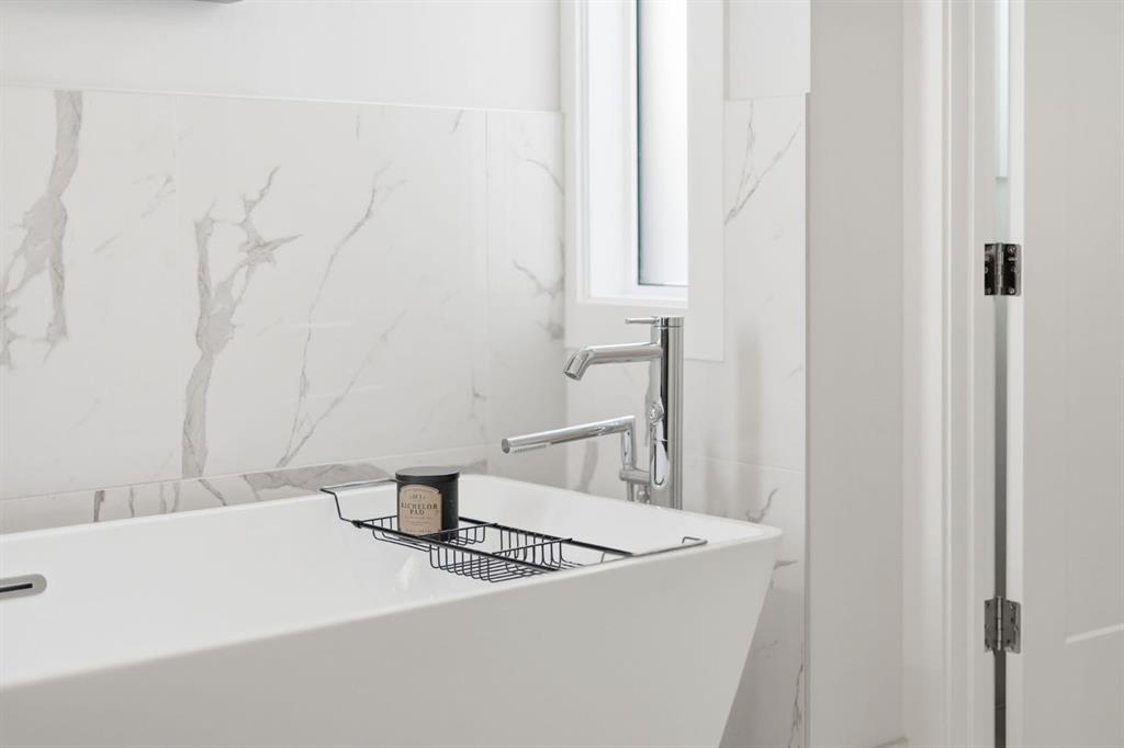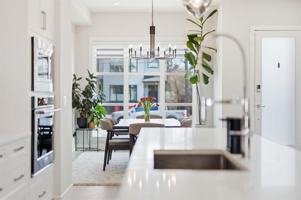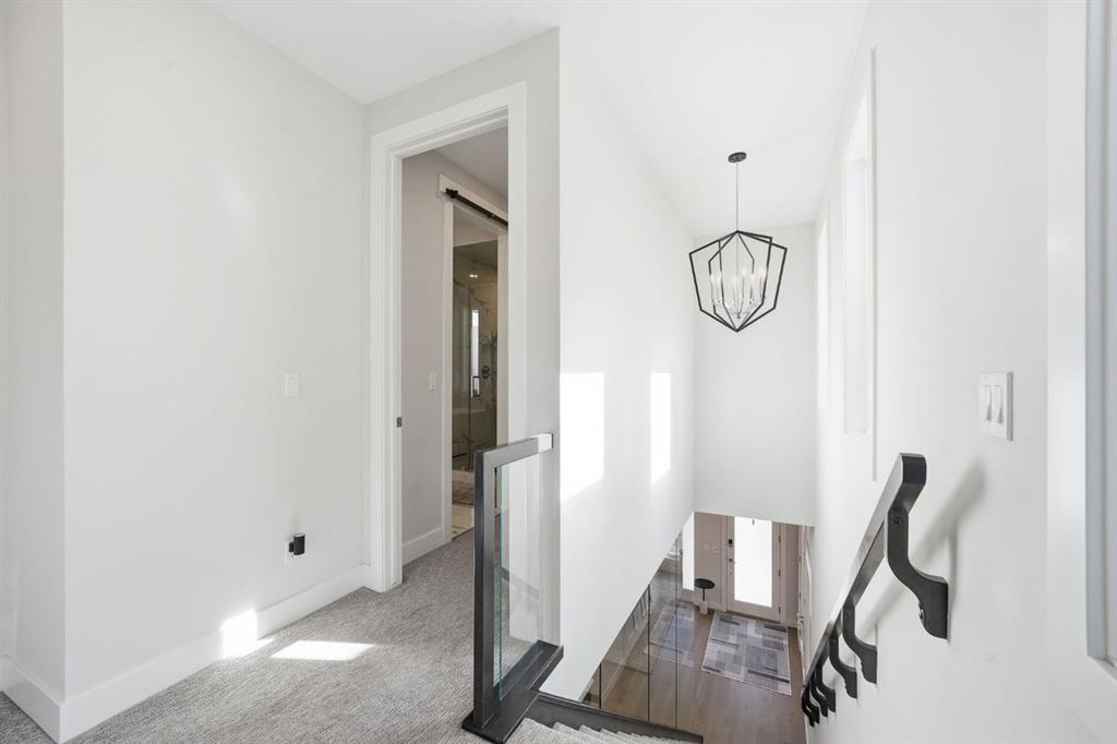 Homes like this don’t come up often in the inner city. This detached home in Spruce Cliff offers over 2,160 sq ft above grade across four bedrooms, three full bathrooms, and a fully developed basement — all on an oversized lot with a triple detached garage and landscaped west-facing backyard with poured concrete patio and perennials planted throughout. Main Floor - Engineered hardwood and twelve-foot ceilings set the tone throughout. The kitchen is built for the way you actually cook — full-height custom cabinetry, and a tiled backsplash, gas cooktop, oversized central island with 6 person seating. The living room anchors around a gas fireplace with featured tile surround, with sliding glass doors leading directly to the newly landscaped backyard. A fully tiled mudroom with built-in cabinetry and bench keeps arrivals organized. Upper Floor - The primary bedroom features a vaulted ceiling, an oversized walk-in closet with extensive built-ins, and a five-piece ensuite with heated tile floors, freestanding soaker tub, fully tiled standing shower, and quartz vanity. Two secondary bedrooms each have walk-in closets and share a well-appointed four-piece bathroom with private water closet. A dedicated laundry room with folding counter and sink rounds out the upper floor. Lower Level - A generous rec room with built-in wet bar and media nook anchors the basement. The fourth bedroom is currently set up as a private home gym — with two large closets and four-piece bathroom access, it converts effortlessly into a guest suite, office, or whatever your lifestyle calls for. Spruce Cliff puts you steps from parks, schools, the Bow River pathway, and the LRT — inner-city convenience without the density.