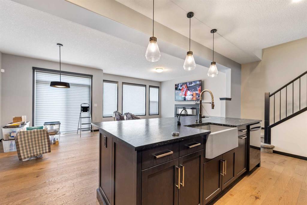 One of the best homes for the price in the desirable community of Sage Hill, this beautifully appointed home offers just over 2,000 sq ft of thoughtfully designed living space. Built in 2018, the main floor features an open concept layout with engineered hardwood flooring and numerous upgrades throughout. At the heart of the home is a striking expanded island with a saddle granite countertop, breakfast bar, and built-in wine fridge, surrounded by ample cabinetry, a gas cooktop, and a convenient walkthrough pantry. The spacious dining area is ideally positioned next to patio doors that open onto the west-facing deck, perfect for enjoying afternoon sun and evening gatherings. The open living room is bright and welcoming, complete with a gas fireplace and large windows. Upstairs, a generous family room provides additional space to relax or entertain. The primary bedroom includes a 5-piece ensuite with dual sinks, a soaker tub, a separate shower, and a walk-in closet. Two additional bedrooms, a large laundry room, and another full bathroom complete the upper level. The basement remains unfinished, offering excellent potential for future development. Additional features include a double attached garage and a driveway with space for two more vehicles. Ideally located close to playgrounds, shopping, and transit, this is a fantastic opportunity to own a modern and stylish home in a thriving community.
