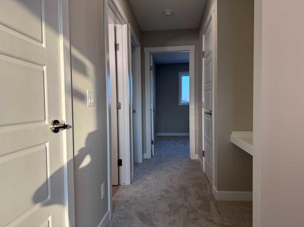 End Unit with South and West Exposures … The often asked for Beautiful Glasgow Model by Douglas Homes Master Builder... This bright and exceptional 1,334 sq. ft. townhome comes with 3 bedrooms and 2.5 bathrooms, offers the perfect blend of modern elegance and practical design—ideal for families, first-time buyers, or those looking to downsize without sacrificing quality… Upon entering, you'll be welcomed by a spacious open-concept main floor with soaring 9' ceilings and large windows that flood the home with natural light, creating a warm, inviting atmosphere. The main level is beautifully finished with engineered hardwood flooring that adds a touch of luxury throughout the space… The kitchen is a highlight, featuring premium builder's grade stainless steel appliances, sleek quartz countertops, and ample cabinet space, perfect for daily cooking or entertaining… Adjacent to the kitchen is a bright and cozy dining nook, and a well-sized great room that flows seamlessly together for gatherings or family time. Upstairs, the generously sized primary bedroom offers a private retreat, complete with a walk-in closet and a well-appointed ensuite. Two additional bedrooms, perfect for children, guests, or a home office, share a full bathroom… This model offers sought-after features such as no condo fees, a rear garage, a treated wood deck, and fully landscaped front and rear yards, providing comfort and convenience in a low-maintenance package… With its elegant finishes and thoughtful design, the Glasgow Model is a great option for those making the leap from renting to owning, or anyone seeking an affordable yet high-quality home… Community Perks… For families, this location is a dream come true. Rancheview K-8 School is just a few blocks away, and St. Timothy High School is a short drive south. The future community center and a third school, in the pipeline, will be within walking distance. Convenience and Adventure Await… Escape into the mountains, just 40-45 minutes away on the scenic route. The city of Calgary is a quick 30-minute drive, as is to your nearest Costco, while the airport is an easy 45-minute commute… **Key Features: | Townhouse | No Condo Fees | Rear Garage | Front Concrete Pad | 9' Main Floor Ceilings | Treated Wood Deck | Full Landscaping (Front & Back) | Quartz Countertops | Engineered Hardwood on Main Floor | Built-in Desk |