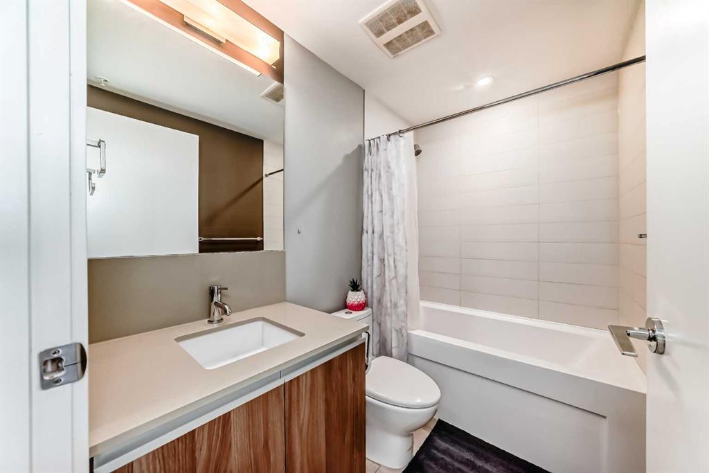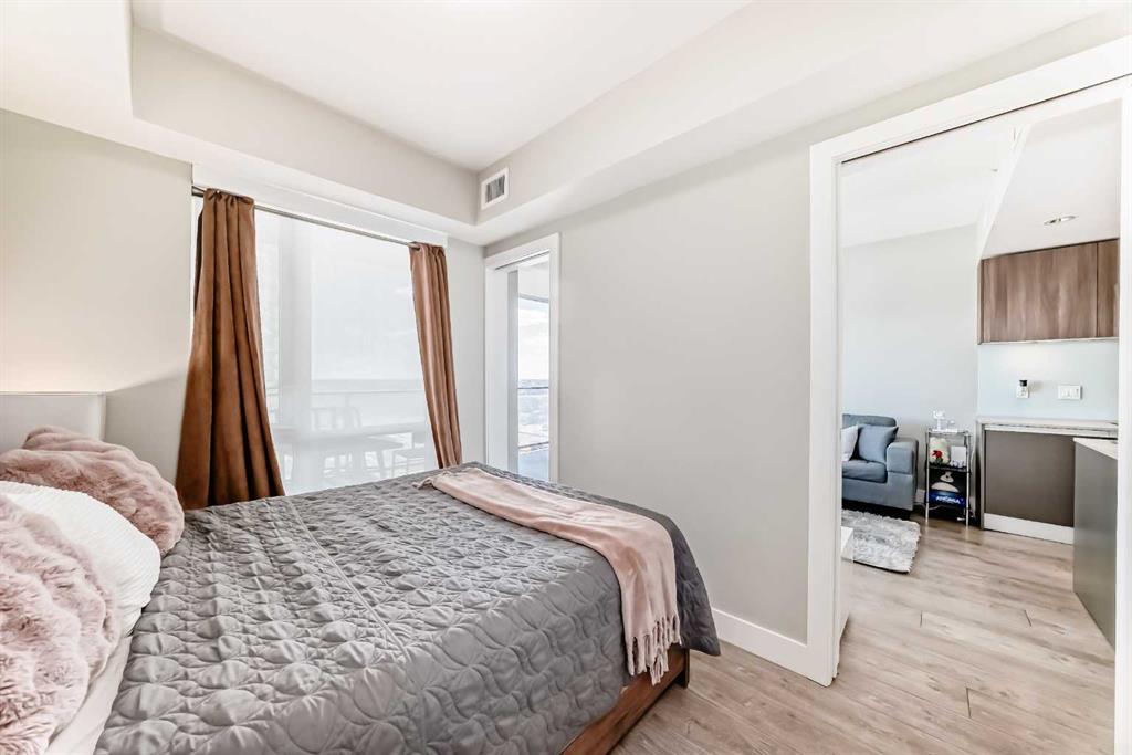 Welcome to this well-maintained 1 BED in the heart of Beltline, one of Calgary’s most vibrant inner-city communities. Perched high on the 21st floor, this bright and functional unit offers stunning city and river views, modern finishes, and unbeatable downtown convenience. Step inside to discover a thoughtfully designed layout featuring a sleek kitchen with integrated appliances, quartz countertops, and full-height cabinetry. The central island provides additional workspace and casual seating, seamlessly connecting to the living area that’s flooded with natural light from floor-to-ceiling windows. The private balcony offers a front-row seat to sweeping skyline views—perfect for unwinding after a long day. The bedroom is spacious and well-separated from the den, offering privacy and flexibility whether you’re working from home or setting up a creative corner. A modern 4-piece bathroom and in-suite laundry add both comfort and function to the space. This unit is meticulously maintained, making it ideal for professionals, first-time buyers, or investors seeking a low-maintenance lifestyle in the urban core. Set within a clean and secure building, this home is just steps from cafes, restaurants, parks, the Stampede Grounds, and convenient LRT access. With the best of city living at your doorstep, every detail of this home supports a vibrant and convenient lifestyle. Schedule your viewing today!
