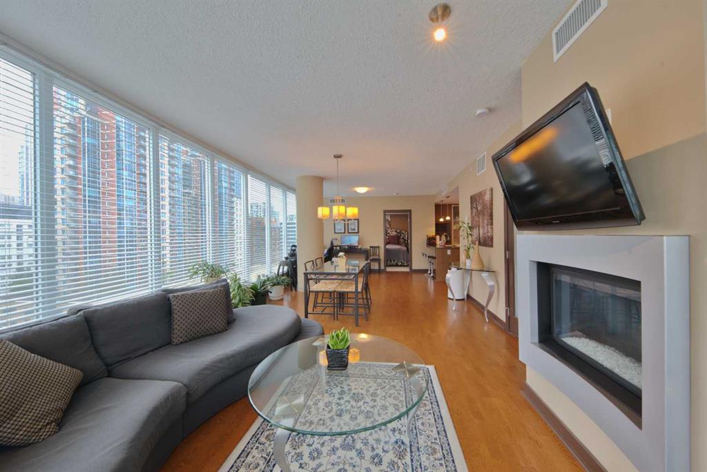 Welcome to this bright and spacious 2-bedroom, 2-bathroom CORNER unit in Solaire—one of downtown Calgary’s premier luxury residences. Thoughtfully designed, this layout offers two bedrooms on opposite sides of the unit, providing excellent privacy—ideal for families with a grown child or those in need of a separate guest space. The contemporary kitchen is a chef’s dream, featuring high-end European appliances, full-height cabinetry, and generous granite countertops. The open-concept living area is complemented by floor-to-ceiling windows, a cozy fireplace, and a well-sized dining area—perfect for entertaining or everyday comfort. Beyond the stylish interiors, the building’s amenities are designed to enhance your lifestyle. Enjoy secure underground parking with ample space, a car wash bay, a fully equipped fitness room, central air conditioning, and professional concierge service in a clean and welcoming lobby. Located just steps from Prince’s Island Park, the Bow River Pathway, and an array of downtown restaurants and cafés, this home offers the perfect balance of relaxation and vibrant urban living. Come and experience the comfort, convenience, and luxury of this exceptional residence—your new lifestyle awaits!
