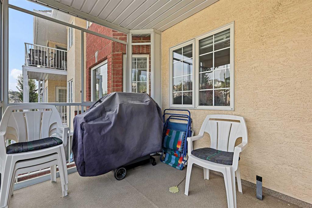 Enjoy quiet, low maintenance living in this spacious 55+ condo in sought after Signal Hill. Among the largest floor plans in the complex, this home features a functional kitchen, open living and dining area, and two well-sized bedrooms including a primary with private two-piece ensuite. The standout feature is the glass enclosed balcony with windows that open, creating a sunroom-style space you can enjoy almost year round, included with a gas BBQ for easy entertaining. In suite laundry, secure underground parking, private storage locker, and access to a fitness centre, a game room with library, and courtyard complete the package. Close to bus stops, walking paths, shopping, and Stoney Trail for quick escapes to the mountains!