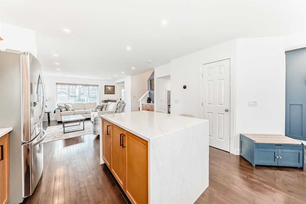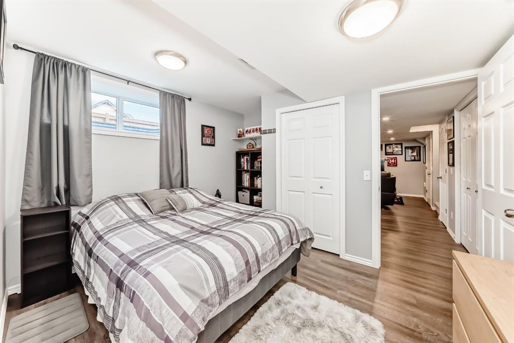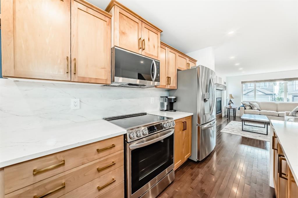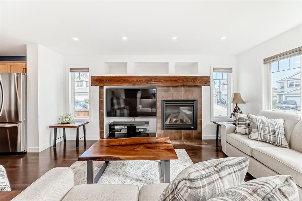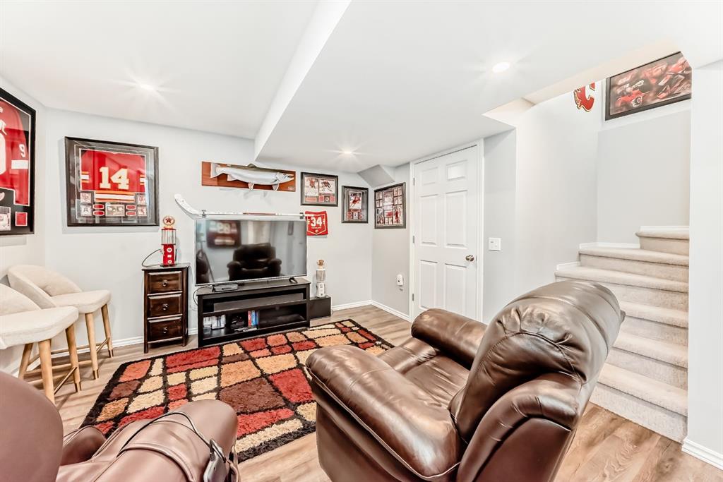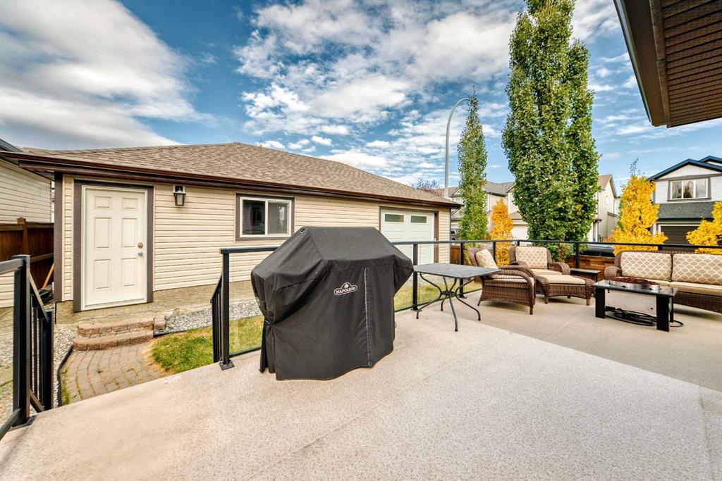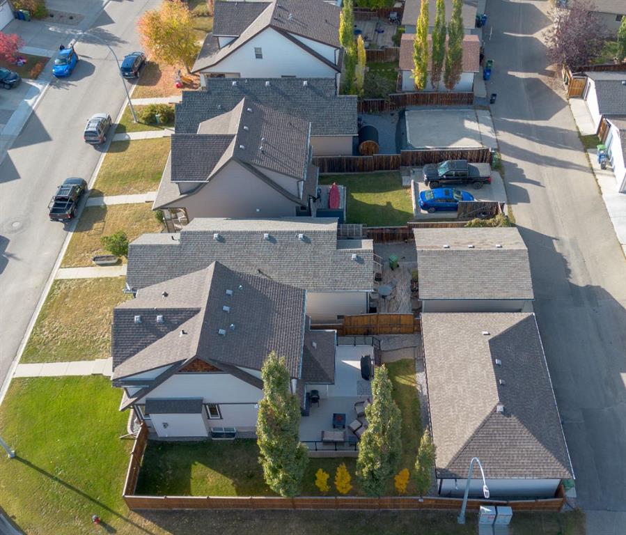 Nestled in the heart of Sunset Ridge this extensively renovated and upgraded home is a true gem adorned with gemstone lighting! With over $100,000 in upgrades this home is as unique as the lot it sits on. The HUGE 21' x 35' HEATED fully finished triple car garage features a custom painted floor and three overhead doors, two leading to the lane in the back and one into the backyard. All permits were completed for the 16' extension to the garage. Inside you will find a great open concept layout on the main floor. Featuring a brand new kitchen, renovations completed in 2025 featuring all new SS appliances, gorgeous quartz countertops, quartz back splash, original shaker style cabinets with new brass hardware, large waterfall kitchen island perfect for entertaining and custom coffee bar with with more storage space in the built in cabinets below. No details were overlooked and no expense was spared! The popcorn ceilings are no more with scraped knock down ceilings. The main floor half bath was also renovated with new vanity, toilet and floating shelves. The living room features a cozy gas fireplace and plenty of windows to let the natural light enhance the warm hardwood floors. Outside in the large back yard the deck was extended the length of the house with composite decking, glass railing and gas line with three connectors perfect for those summer time BBQ's with the whole family. Upstairs you will find hardwood flooring throughout, 2 spacious bedrooms and the primary retreat large enough for a king bed, mountain views, walk in closet and 4 piece ensuite. The basement was completed with all permits 7 years ago with cozy family room, 4th bedroom, 3 pc bathroom and plenty of storage. Perfect for guests or in law suite! The laundry room is also in the basement with brand new washer and dryer pair. The HWT was just replaced in 2021, the furnace is original and runs great with regular servicing and cleaning, AC was installed in 2022 to keep you cool in the summer months. It was last serviced in the summer of 2025. Sunset Ridge is home to kms of walking paths, Ranchview K-8 School, St. Timothy High School, shops, restaurants and gas bar with quick access to the Mountains or into town with the overpass construction almost at completion. Book a showing today and don't miss out on this unique one of a kind property.