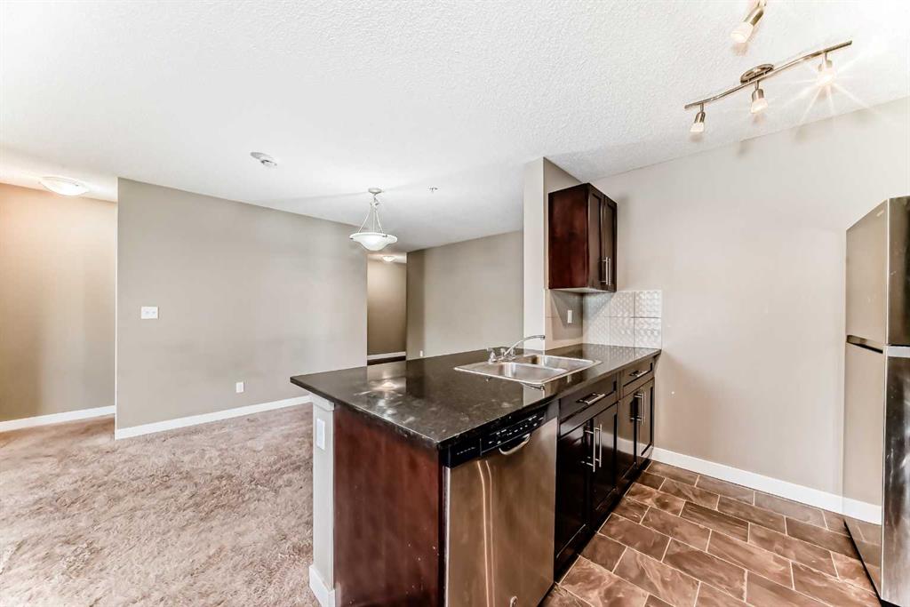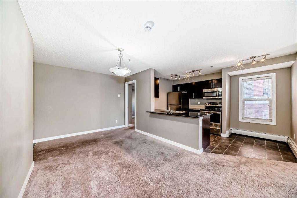Hello, Gorgeous! Welcome to 8201-403 Mackenzie Way SW in Airdrie. This beautifully updated corner unit offers 2 bedrooms and 2 bathrooms, combining modern finishes with everyday convenience. The open-concept layout is filled with natural light and features real wood cabinetry, granite countertops in both the kitchen and baths, and a full stainless steel appliance package. The spacious primary suite includes a walk-in closet and an upgraded ensuite with a custom tiled shower. A second bedroom and full bath provide space for guests or a home office, while the dedicated office nook, in-suite laundry, and private balcony add comfort and functionality. Enjoy peace of mind with your own heated underground parking stall and condo fees that include water and heat. Perfectly located within walking distance to shopping, restaurants, and Airdrie’s scenic walking paths, this home offers stylish, low-maintenance living in a vibrant community.