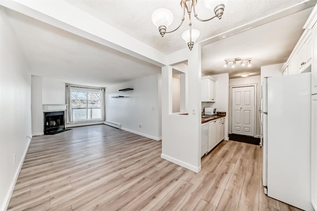 Beautiful Patterson condo, ideally situated in a great location, close & direct access to the downtown core, new LRT! The light & bright living area showcases dark laminate flooring, centers on a cozy corner fireplace, and opens out to a private covered balcony, the kitchen has been updated and features plenty of cabinetry & counter space, along with a tile backsplash and unique pass-through; the dining area offers great storage solutions. The master bedroom boasts a large walk-in closet, while a the second bedroom is of a good size and an updated four-piece bath is great for guests! This unit also offers in-suite laundry & ample storage - a must! Ideal for owner-occupant and investor alike, don't miss out on this one. All windows and patio doors in the complex have been changed. Call today!
