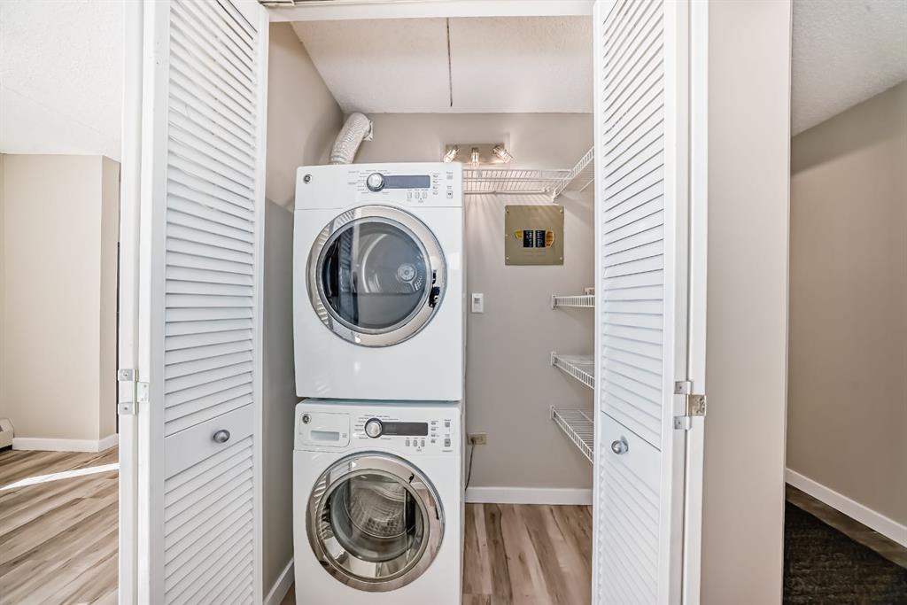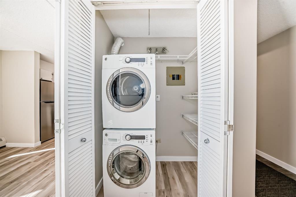 *Back on Market due Pet Application* Stylish & Sunlit 2-Bedroom Condo with Southwest Views of 17th Ave Step into comfort and convenience with this fully upgraded 2-bedroom condo, perfectly located in Calgary’s lively Beltline neighborhood. Situated in a quiet, well-managed adults-only building, this southwest-facing corner unit is filled with natural light and offers beautiful views of 17th Avenue. Enjoy over $20,000 in recent upgrades, including brand-new appliances, modern flooring, and fresh paint throughout. The spacious primary bedroom easily fits a king-sized bed, while the second bedroom—with charming French doors—makes a perfect home office or cozy guest room. You’ll love the ease of in-suite laundry, your own heated underground parking stall, and a dedicated storage locker. Step out onto your private balcony to unwind and take in the city skyline—ideal for morning coffee or evening sunsets. The building has also seen thoughtful updates, including triple-pane windows and refreshed balconies, adding comfort and energy efficiency. Pet-friendly and just steps from trendy restaurants, cafés, shops, and transit—this is urban living at its best. Whether you're a first-time buyer, downsizing, or looking for a stylish city retreat, this condo checks all the boxes.