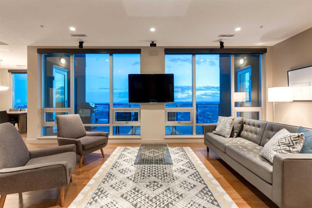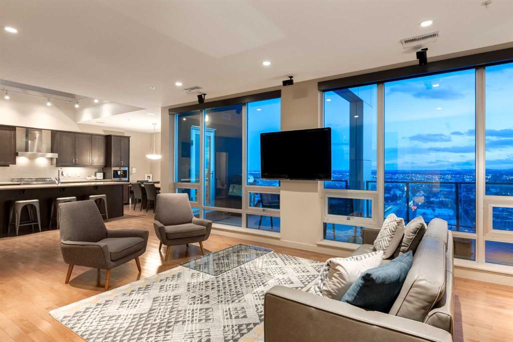 WELCOME to this PRIVATE PENTHOUSE in the VETRO Building on the 34th + 35st FLOOR with 2,139 Sq Ft of REFINED LIVING across a 2-STOREY, 2 BED, 2.5 BATH EXECUTIVE LAYOUT, 2 TITLED PARKING STALLS in UNDERGROUND HEATED GARAGE, an ASSIGNED STORAGE UNIT, and a HUGE Balcony including UNOBSTRUCTED GORGEOUS VIEWS of the ROCKY MOUNTAINS all in the BELTLINE!!! This IMPECCABLE HOME has Touchscreen ELAN controlled climate, lights/blinds, + sound system throughout. The Main level opens with a WELCOMING FOYER, in-suite STORAGE, + a 2 pc Bath. The CHEF-INSPIRED KITCHEN features SS BOSCH Appliances including a BUILT-IN ESPRESSO MACHINE, a BERTAZZONI GAS Range, SLEEK ESPRESSO Cabinetry, LARGE ISLAND with QUARTZ Countertops. Casual Dining is easy at the BREAKFAST BAR, and the BUILT-IN Desk is handy in the Dining Room which will host FRIENDS and FAMILY gathering together. A door to a PRIVATE BALCONY w/GAS LINE - your front-row seat to PANORAMIC DOWNTOWN VIEWS, MOUNTAIN VIEWS glowing Sunsets, and Calgary’s iconic SKYLINE. The OPEN-CONCEPT LIVING ROOM is framed by TOWERING SOUTH-FACING WINDOWS, while an INTEGRATED WET BAR elevates your ENTERTAINING EXPERIENCE - perfect for hosting GUESTS. NATURAL LIGHT floods the space, highlighting the SEAMLESS CONNECTION between the Living, Dining, + Kitchen areas. The 2nd Bedroom can also be used as an OFFICE. It has a WALK-IN Closet, and a 3 pc Bath. The Laundry room is next, and the STORAGE area underneath the stairs. The upper level is equally IMPRESSIVE the EXPANSIVE PRIMARY BEDROOM - a TRANQUIL RETREAT with multiple LARGE WINDOWS, CUSTOM BUILT-INS, + plenty of space for a full suite of furnishings. The 2nd Entrance on the 35th Floor for ADD security. The LUXURIOUS 5 pc EN-SUITE boasts a DOUBLE VANITY, a BACKLIT Mirror with a TV EMBEDDED, DEEP JETTED SOAKER TUB with 2 SHOWER HEADS. Crafted for individuals who ASPIRE to a LUXURY-DRIVEN URBAN WAY OF LIVING, this residence offers a SOPHISTICATED MULTI-LEVEL EXPERIENCE with SOARING DOUBLE-HEIGHT CEILINGS, DRAMATIC FLOOR-TO-CEILING GLASS, and UNSTOPPABLE CITY VIEWS from SUNRISE TO NIGHTFALL. Residents of VETRO enjoy access to a STATE-OF-THE-ART 2-Level FITNESS CENTRE w/ a Hot Tub, a Theatre, 24-HOUR Security, a Concierge, Secure Bike Storage + access to beautifully maintained common areas. A DEDICATED elevator serves the 34th floor, providing residents with QUICK + exclusive. Ideally located in the heart of the BELTLINE, this residence delivers unmatched walkability to Dining, Shopping, Entertainment, + Transit – with effortless access to the C-TRAIN, Stampede Park, the Downtown Core, + major commuter routes. Adding to the long-term appeal, a new LUXURY FAIRMONT HOTEL is set to be built next door, further elevating the prestige and vibrancy of the surrounding area. It has STRIKING ARCHITECTURAL design, PREMIUM FINISHES, intelligent layout, + BREATHTAKING VIEWS, this home stands as a TRUE EXECUTIVE-LEVEL RESIDENCE for the discerning buyer seeking LUXURY, SOPHISTICATION, + UNPARALLELED INNER-CITY LIVING!
