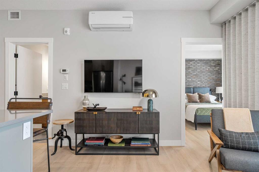 Welcome to the Brylee at The Vintage, a new condominium residence by Partners in the heart of Upper Greenwich. This top-floor, pond-facing suite combines premium finishings, thoughtful design, and modern comfort in one of Northwest Calgary’s most desirable new communities. Inside, 9-foot ceilings, a spacious central island, and a refined interior palette create an elevated and functional living space. The kitchen features 42-inch upper cabinetry, full-height tile backsplash, quartz countertops throughout, soft-close drawers and doors, and a stainless steel appliance package. Forced-air heating with optional cooling ensures year-round comfort. The primary bedroom includes a box vault ceiling for added character and a sense of openness. A private ensuite, a full second bathroom, and a dedicated laundry space with included washer and dryer offer flexibility for guests, roommates, or a home office setup. Additional upgrades include roller blinds, waterline to the fridge, a gas line to the BBQ, LVP and LVT in high-traffic areas, carpet in the bedrooms, and a code-compliant sprinkler system. The building is pet friendly, making it a great option for owners with pets. This suite includes titled parking, and dedicated bike storage. The exterior blends full-bed brick with durable fibre cement siding, adding long-lasting quality and timeless appeal. The Vintage offers landscaped grounds, a central pond, walking paths, and a location that puts you minutes from Calgary Farmers’ Market West, WinSport, Trinity Hills, Bow River pathways, and major commuter routes. With 270 residences across four boutique five-story buildings, The Vintage delivers a well-connected lifestyle in a quiet and natural setting. Thoughtfully designed, ideally located, and built by Partners, this is refined living in Upper Greenwich. Reach out to learn more or secure your suite at The Vintage.