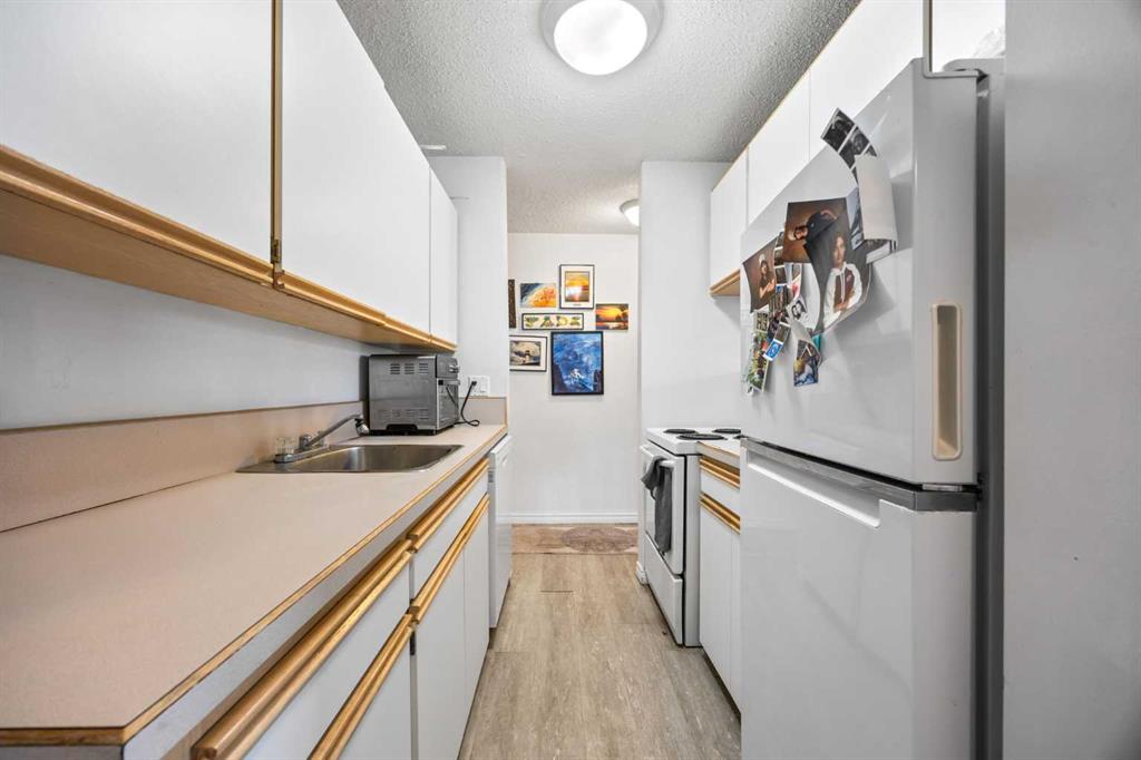 LOCATION, LOCATION, LOCATION + Parking Stall. Welcome to this charming 1-bedroom, 1-bath condo nestled in the heart of Hillhurst, a prime location perfect for both investors and first-time home buyers. Affordability with fantastic unobstructed views from the 4th floor. The bright atmosphere enhances the spacious layout, which includes a great kitchen, a dedicated dining nook, and a large living room featuring patio doors leading directly to your private balcony. This extremely well-maintained condo is conveniently located near Riley Park, Hillhurst Community Center, Downtown, SAIT, Alberta University of Arts, CT train, schools, parks, movie theatre, restaurants, library, paths and recreation center are all WITHIN WALKING DISTANCE. Whether you're looking to make a wise investment or find a cozy first home, this condo in Hillhurst offers the perfect blend of convenience, comfort, and style. Don't miss out on the opportunity to own a piece of this thriving and sought-after neighborhood. Come and experience the vibrant lifestyle and endless possibilities this delightful condo has to offer. Schedule a viewing today and envision yourself living the urban dream!