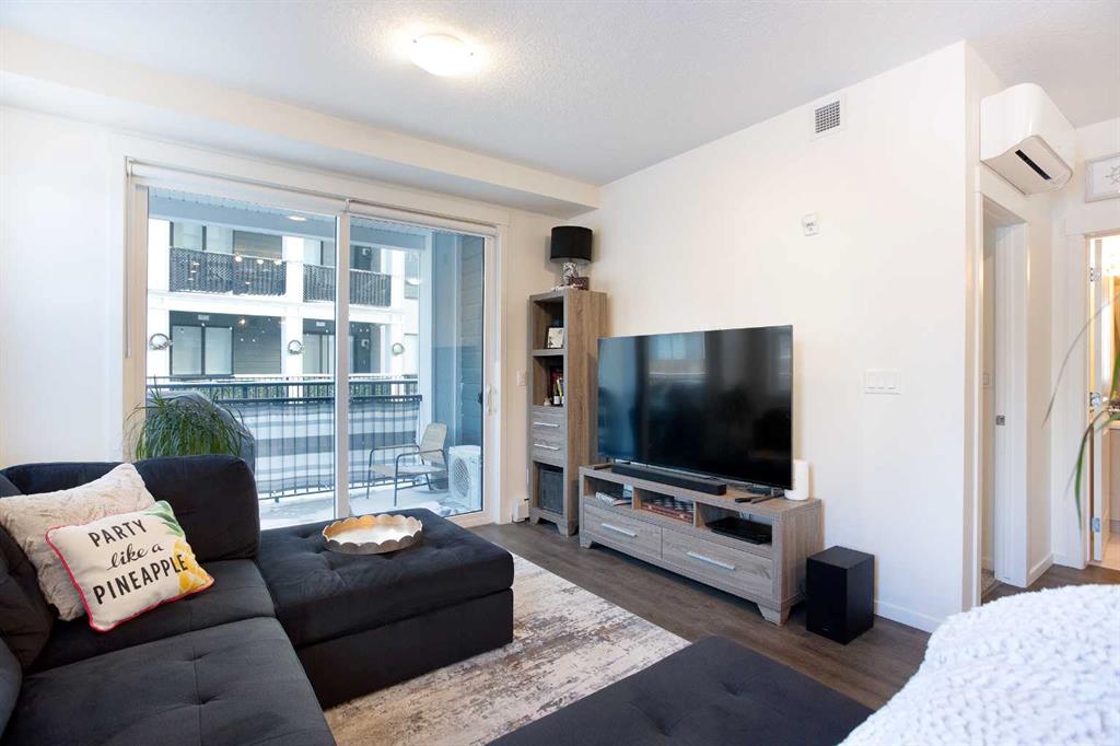 Welcome to a charming main-floor corner unit nestled in the heart of the Legacy community. This inviting 1-bedroom, 1-bathroom condo offers 690 square feet of comfortable, open-concept living space. The bright and airy layout features a modern kitchen complete with a central island finished with quartz countertops, a spacious pantry, and durable luxury vinyl plank flooring that adds both style and practicality. The living area opens seamlessly to a private balcony—perfect for relaxing or enjoying your morning coffee. The generous bedroom includes a custom closet designed for optimal storage, while the stylish bathroom provides both comfort and convenience. This unit offers exceptional practicality with air conditioning for year-round comfort, a surface parking stall just steps away, and an underground storage locker for added convenience. Located directly across the street from All Saints High School, it’s an excellent choice for a teacher or staff member looking to live close to work, while also appealing to investors, couples, or professionals seeking a low-maintenance lifestyle. Living in Legacy means enjoying a vibrant, master-planned community rich with amenities. Residents can take advantage of beautiful parks, scenic walking and biking paths, and abundant green spaces perfect for outdoor activities. The neighborhood offers convenient shopping and dining options, ensuring day-to-day needs are met with ease. Legacy also hosts community events throughout the year and fosters a warm, welcoming atmosphere that truly sets it apart.