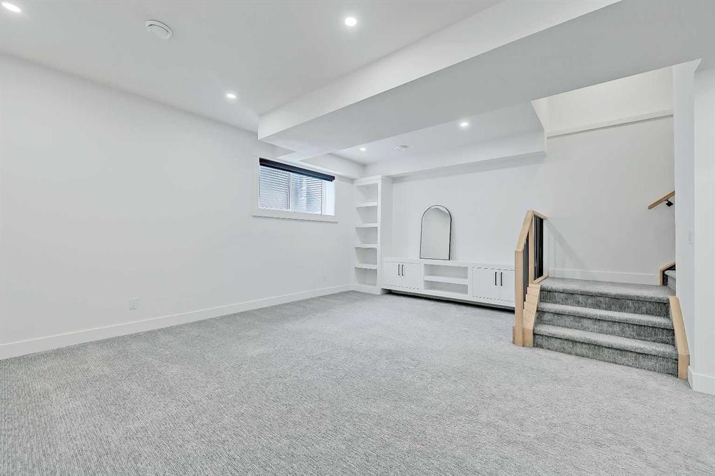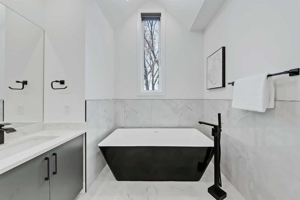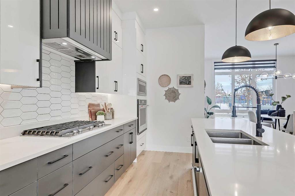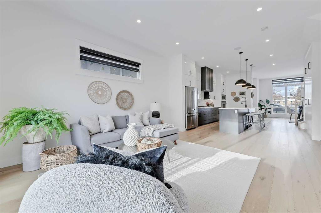 Discover a beautifully designed, custom SEMI-DETACHED home in the heart of WINDSOR PARK! Positioned on a quiet, tree-lined street FACING A GREEN SPACE, this home blends architectural vision with warm everyday comfort. The main floor opens with a refined dining room wrapped in natural light, complete with feature-wall detailing that sets a welcoming, upscale tone. Just beyond, the chef’s kitchen steals the spotlight with a large quartz island, custom cabinetry, and upgraded appliances that make day-to-day cooking feel easy and entertaining feel effortless. A smooth flow leads into the spacious living room, where a full-height tiled gas fireplace adds texture and warmth, balanced by oversized windows framing the south-facing backyard. At the rear, a well-planned mudroom keeps life organized with built-ins for coats, bags, and sports gear, and the powder room offers a stylish touch for guests with modern finishes and a clean, elegant aesthetic. Upstairs, the primary suite feels like a true retreat, starting with vaulted ceilings and a dedicated coffee bar that adds a boutique-hotel feel to your mornings. Two walk-in closets offer exceptional storage, while the spa-inspired ensuite features a freestanding soaker tub, double vanities, and a glass-enclosed shower finished in soft stone tones that echo throughout the upper level. Down the hall, two additional bedrooms share a beautifully designed Jack-and-Jill bathroom with a dual vanity and contemporary fixtures, giving everyone the space they need. A separate laundry room completes the upper level with added convenience. The lower level adds another dimension to the home. The expansive recreation room features a built-in media centre and open shelving, making it the perfect zone for movie nights, gaming, or relaxed gatherings. A sleek wet bar with a beverage fridge and sink elevates the space for entertaining, and an additional bedroom with a full bathroom provides comfort and privacy for guests. Ample storage keeps clutter tucked away, preserving a clean, open feel throughout. Outside, the south-facing backyard offers a sunny retreat for summer evenings, weekend barbecues, or quiet morning coffee on the deck. The double detached garage with rear-lane access keeps vehicles protected and provides easy in-and-out access year-round. Windsor Park continues to be one of Calgary’s most desirable inner-city neighbourhoods for its accessibility and charm. From this address, you’re minutes from Chinook Centre, the boutiques and dining of Britannia Plaza, and local favourites like Monogram Coffee, Village Ice Cream, and Sunterra Market. Green spaces such as Sandy Beach and the Elbow River pathways are close by, along with excellent schools, including Elboya School, Western Canada High School, and St. Augustine. Commuting is effortless with quick access to Macleod Trail, Glenmore Trail, and Elbow Drive for whole city access.