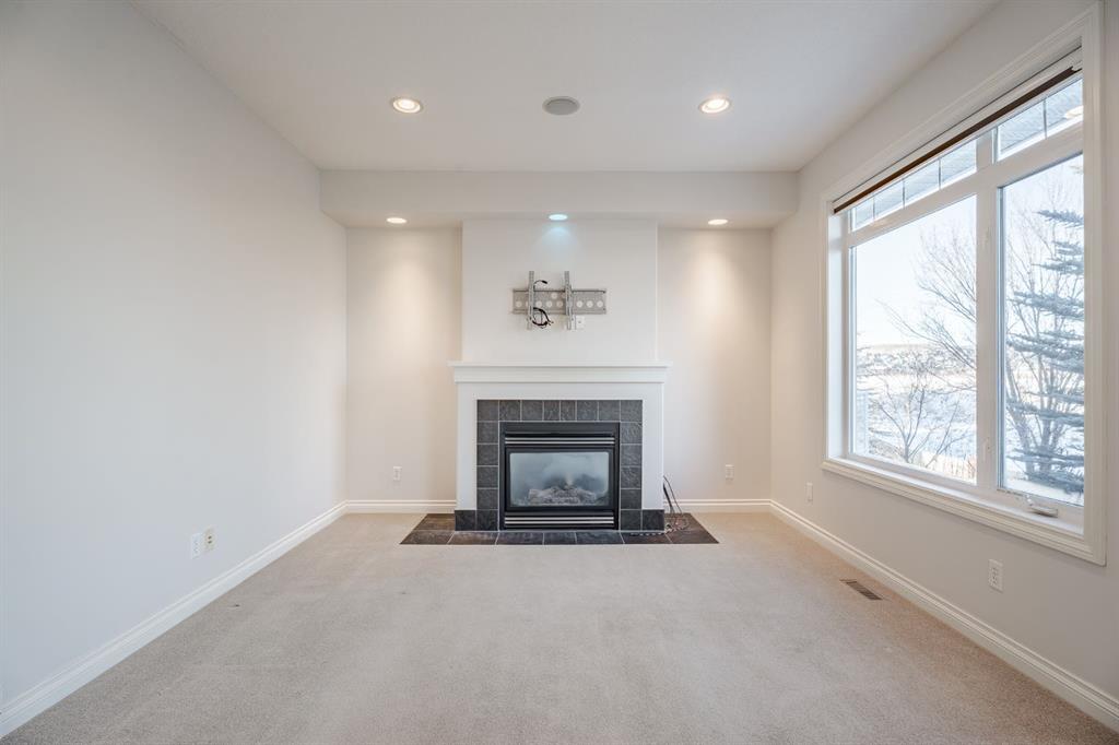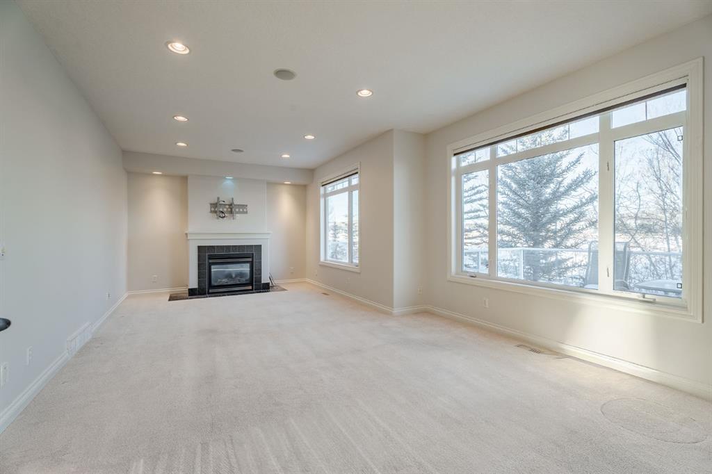 PRICE REDUCED - Ready to Right-Size your Lifestyle Without Compromise? This Exceptional Bi-level Villa presents a rare opportunity to enjoy refined, maintenance-free living in the highly sought-after community of Discovery Ridge. Perfectly positioned in a quiet enclave backing onto a private green space with Mature Trees to provide noise abatement, this home offers nearby access to Scenic Pathways leading to the breathtaking Griffith Woods Natural Reserve. From the moment you step inside, you’ll appreciate the bright, freshly painted open-concept design, highlighted by 9-foot Ceilings and Central Air Conditioning for year-round comfort. A Welcoming front Flex Room provides versatile space for a Home Office, Sitting Area, Studio, or Fitness Room, complemented by a nearby Powder Room. The Spacious Primary Suite serves as a Private Retreat, complete with a Walk-in Closet and a well-appointed 4-piece Ensuite. Convenient Main-Floor Laundry is ideally situated just off the Kitchen. Thoughtfully designed for both everyday living and entertaining, the Modern Kitchen features Granite Countertops, Maple Cabinetry, and a generous wrap-around Island with Seating. The Dining Area flows seamlessly into the inviting Great Room, where a full wall of windows fills the space with natural light. A cozy Fireplace creates a warm focal point, while Patio Doors open to a Generous Sized Deck overlooking the tranquil natural setting—perfect for relaxing or hosting guests. The Fully Developed Lower Level expands your living space with a Private Guest Retreat, a spacious second Bedroom with oversized window and dual closets, a full bathroom, and flexible areas ideal for a Home Office, Gym, Hobby Room, or Multi-generational Living (or for a Caregiver). A Welcoming Family Room with Gas Fireplace, built-in Cabinetry, and ceiling speakers provides additional comfort and style. Direct access to the Oversized, Insulated Double Attached Garage adds convenience, with ample storage. Note there is space for future elevator or stair lift for long-term accessibility. Offering over 2,100 Square Feet of beautifully finished living space, this home is nestled within a well-managed, pet-friendly complex (with board approval), surrounded by parkland and natural beauty. An Exceptional Property. A Peaceful Setting. A Turnkey Lifestyle designed for your next chapter. (Note: Some photos are virtually staged.)