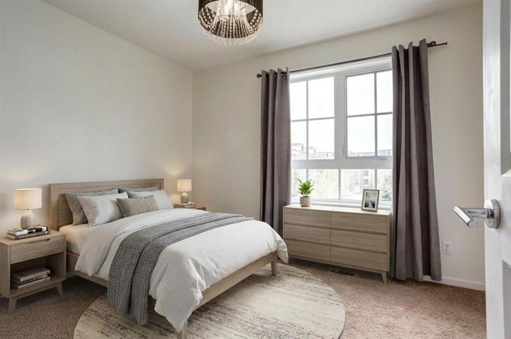 Step into style and comfort with this move-in-ready, air-conditioned townhome in the vibrant community of Copperfield. With fresh paint and thoughtful upgrades throughout, this 2-bedroom, 3-bathroom home is designed for modern living. Enjoy over 1,300 sq.ft. of functional space, including a versatile main floor flex room, perfect for a home office, gym, or guest area, with views of the green space. The open-concept living and dining area is bathed in natural light thanks to expansive south-facing windows, while the modern kitchen features granite countertops, a large island, stainless steel appliances, and direct access to a balcony with gas hookup, ideal for summer BBQs. Upstairs, the spacious primary bedroom includes a 4-piece ensuite, while the second bedroom is perfect for a guest room or family member. Convenience is key with upper floor laundry and an attached garage for easy access. Located just minutes from shopping, schools, parks, playgrounds, and a basketball court, this is a home that blends comfort, style, and unbeatable convenience. Don’t miss your chance to own this upgraded townhome, book your showing today!