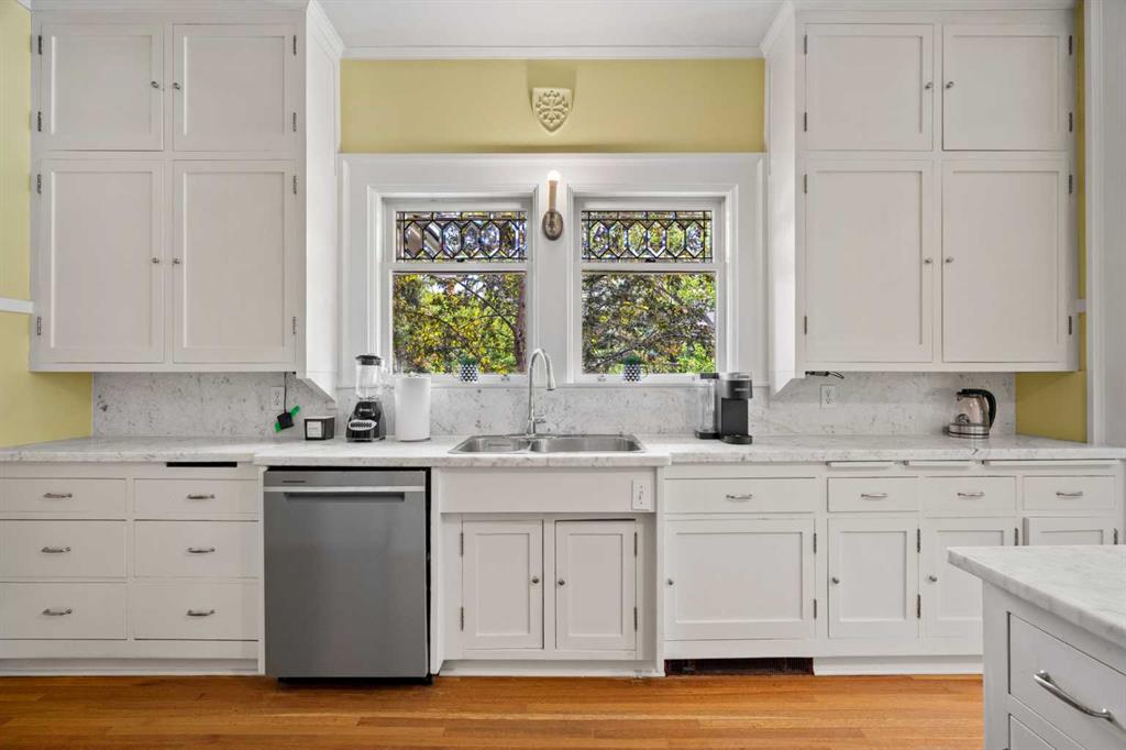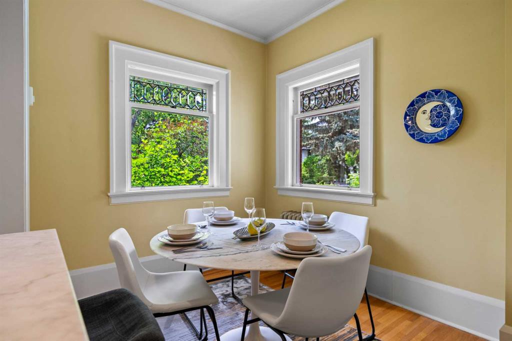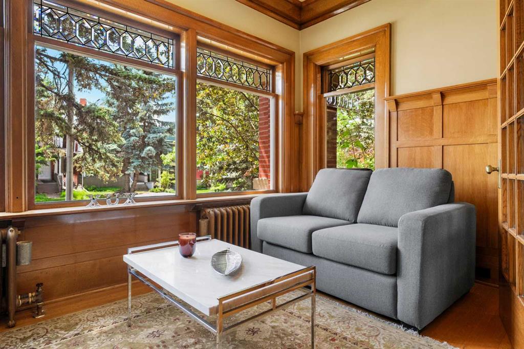 Situated in the heart of Calgary’s renowned Cliff Bungalow neighborhood, combines historic charm with modern comfort and unbeatable convenience. Explore vibrant restaurants, cafés, boutique shops, and the lively energy of 4th Street and 17th Avenue, while scenic river pathways, downtown amenities, and everyday conveniences are all just steps away. The home is also just a short walk from Western Canada High School, one of the city’s top public schools offering the International Baccalaureate (IB) program, —making location one of the home’s greatest highlights. This rare 5-bedroom home with 10ft ceilings features thoughtful upgrades, including a fully refreshed wrap-around verandah with new wood flooring, updated venting pipes, refinished kitchen taps, basement has in floor heating, a mostly new hot water tank, new basement flooring. The boiler has been replaced with an efficient model. and a new cedar shake roof was installed in 2019 at a cost of over $60,000, All old knob-and-tube wiring has been removed and replaced with modern electrical systems and a steam shower for added modern comfort . All original main-floor woodwork has been carefully cleaned and refinished with high-gloss varnish, preserving its historic integrity. Each room features individual thermal control, with a total of 8 thermostat-controlled zones throughout the house, ensuring personalized comfort in every space. Over $200,000 in renovations give this cherished historic home a renewed appearance that honors its heritage while offering modern functionality and comfort. Inside, the home opens to a grand oak-clad hallway and a flowing floor plan highlighted by original quarter-sawn oak millwork, built-in cabinetry, and beveled-glass windows that showcase the craftsmanship of the period. The dining room leads to a sunroom with leaded glass windows, while the kitchen is equipped with floor-to-ceiling built-ins and a functional dumbwaiter. The grand living room features a striking fireplace, and the master suite offers a luxurious soaking tub. Dedicated leisure spaces include a poker room and a lower-level recreation area with ping pong and pool tables, a wet bar, and lounge space. Historic elegance, modern comfort, and an unbeatable location—all in one home.