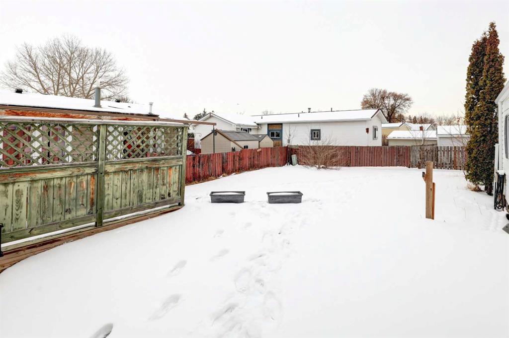 HOME SWEET HOME! Welcome to YOUR EXCITING, RARE AND AFFORDABLE OPPORTUNITY for first time home buyers and investors alike in Huntington Hills! This MOVE-IN READY MOBILE HOME with a DOUBLE ATTACHED GARAGE is situated on a LARGE TITLED LOT so you OWN IT and don’t have to pay a park lease fee! This charming home offers a ton of character with 3 bedrooms, 1.5 bathrooms and over 963 SQFT of heated open concept living space PLUS 515 SQFT of unheated storage space. Recent 2026 updates include Siding, gutters (2026- $9000), Furnace (2026-$5000), Hot water tank (2024-$2000), Plumbing (2026-$2000). Heading inside you will find linoleum and vinyl plank flooring throughout. The modern layout includes a formal dining area, modern kitchen with a peninsula island (with an eating bar, lots of cabinet space and full appliances), bright living room, 2 piece vanity jack and jill bathroom, and a laundry room. Completing the home are 3 bedrooms including a large primary bedroom and a wonderful 4 piece ensuite bathroom. Outside, you will find the convenient double attached garage which is connected to the house with a closed-in walkway (515sqft) leading from the front to back yard. There is additional driveway parking for 3 more cars. The large backyard is fenced and landscaped making it perfect for gardening or outdoor family activities. Amazing location close to several parks including NOSE HILL PARK, a public outdoor skating rink, tot lot playground, reputable schools, shopping, restaurants, public transportation and major roadways. Don’t miss out on this opportunity, book your private viewing today!