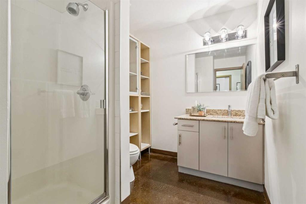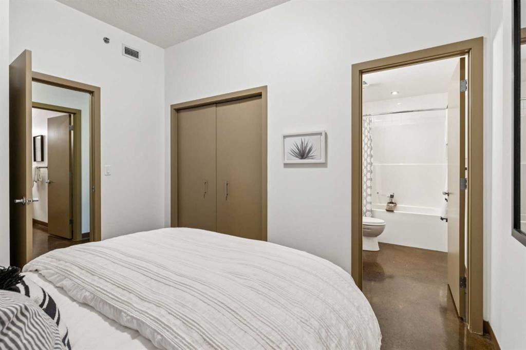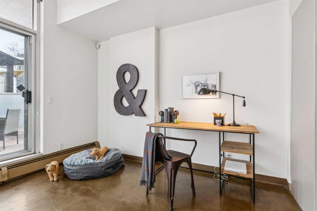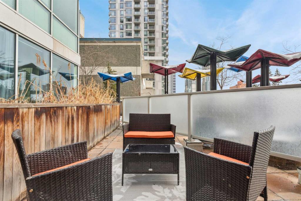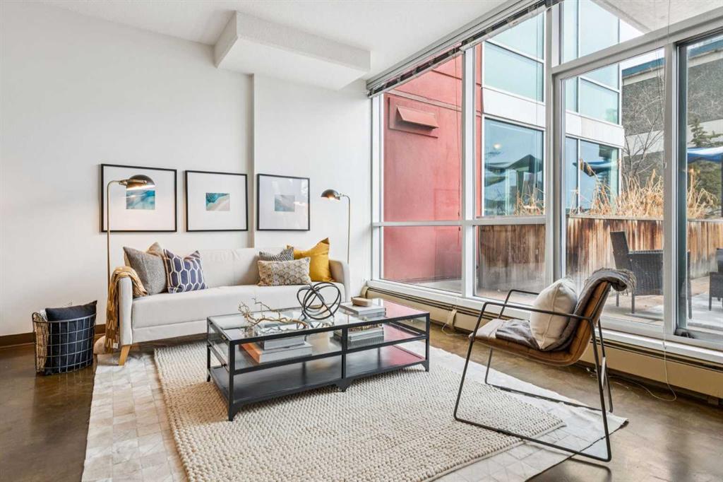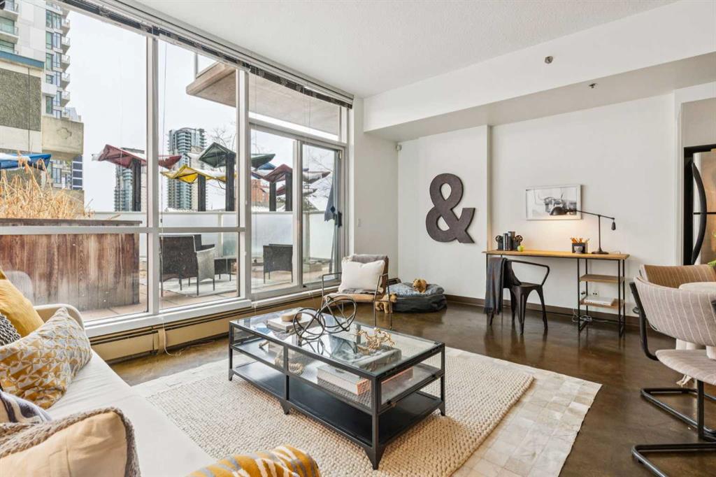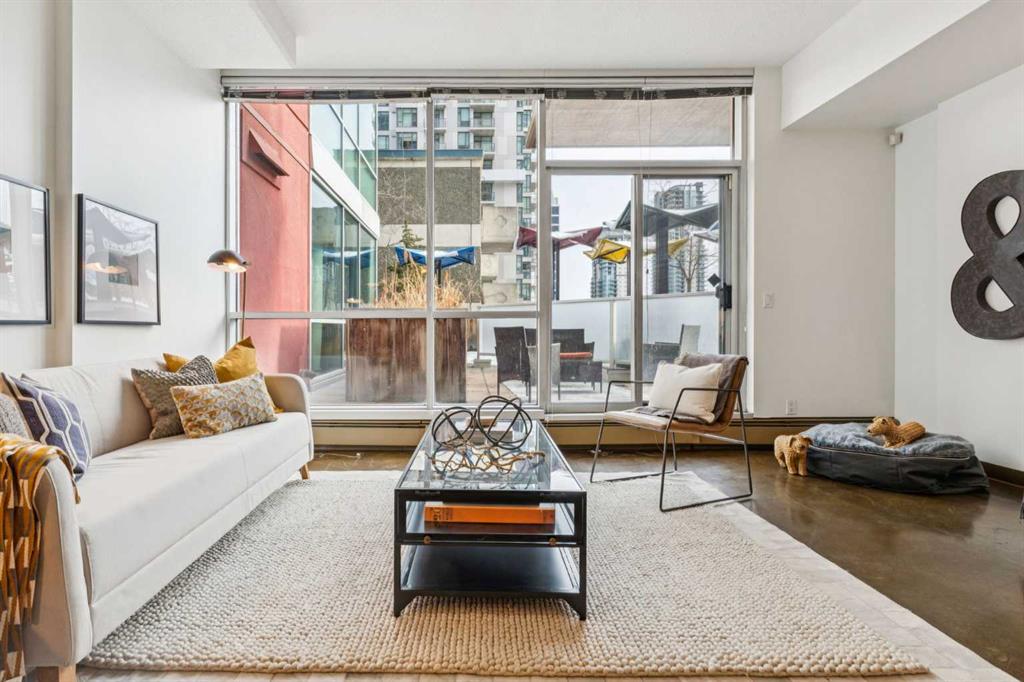 Welcome to one of the most unique and character-rich condos in the Colours building: a 2-bedroom, 2-bathroom terrace-level home with one of the largest private outdoor spaces the building has to offer. This is urban living with personality, flexibility, and serious lifestyle appeal in the heart of Calgary’s vibrant 1st Street District. Loft-inspired and effortlessly cool, the open-concept interior is grounded by striking polished concrete floors and expansive windows that flood the space with natural light. The modern kitchen is both stylish and functional, featuring stainless steel appliances, granite countertops, and seamless flow into the main living area—perfect for entertaining or everyday living. The true showstopper is the oversized terrace, which functions as your own private outdoor living and dining room. Complete with a beautiful raised planter, this space is ideal for hosting friends, gardening, relaxing in the sun, or unwinding after a long day—an exceptional feature rarely found in condo living. The bright primary bedroom offers sliding glass doors, built-in closet organizers, and a private ensuite with a deep soaker tub. The second bedroom is cleverly designed behind sliding glass doors, making it ideal as a guest room, office, or flex space. You’ll also appreciate the oversized in-suite storage room with ensuite laundry—providing exceptional functionality rarely seen in comparable units. A titled parking stall is included, and with short-term rental potential, this property offers outstanding flexibility for both end-users and investors alike. Just steps from cafés, restaurants, nightlife, and the downtown core, this home isn’t just a place to live—it’s a lifestyle. Whether you’re looking to settle in or generate income, this is your opportunity to own a slice of one of Calgary’s most exciting urban communities.