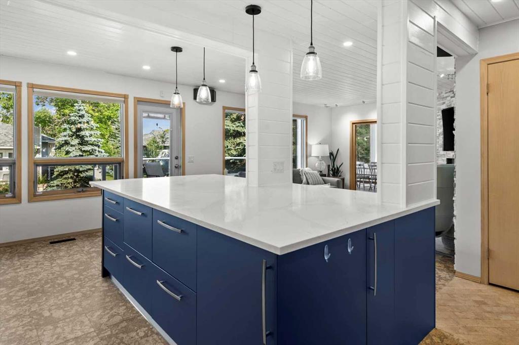 This distinctive Bellamy Homes residence in the prestigious Uplands of Hawkwood blends thoughtful functionality and quality craftsmanship to create a unique family haven with generous gathering areas and quiet private retreats across 3,350 square feet of living space. The main floor encourages comfort and conversation. A loft style living room with soaring vaulted ceilings and a two sided fireplace opens on to a bright sun room designed to host large family gatherings. Cooking is a joy in your upgraded kitchen with a large quartz island, custom cabinetry, a Sub Zero refrigerator, a six burner Fulgor gas cooktop with hood fan, Fulgor double wall ovens with warming drawer, Bosch dishwasher, wine fridge, and a custom stainless steel sink with drainboard. Extend your living space outdoors on the new back deck with barbecue hook-up and a Roman paver patio, perfect for al fresco dining and quiet relaxation. A well placed office is ideal for work from home, while a convenient powder room, practical laundry and mud room with direct access from the attached double garage, are ideal for families on the go. Upstairs, the primary retreat offers a serene escape with a relaxing ensuite featuring dual sinks, a deep soaking tub, a full sized shower, and a walk in closet with custom storage. Three additional bright bedrooms and a family style washroom support a growing household. Large gatherings unfold in the lower recreation level, a hub designed for play and connection. The spacious recreation room with wet bar is perfect for movie nights, game day parties, and family celebrations. This level also includes a versatile flex room ideal for a home gym, playroom, or second home office, a fifth bedroom perfect for teens or guests, a full washroom, and ample storage. During summer garden parties or cozy winter evenings by the fire, the fully landscaped back yard with perennial gardens and mature trees frame everyday living and special occasions with grace and beauty, offering spaces for cooking, dining and conversation, as well as a place for children and furry friends to play. Home updates include durable elastomeric coated stucco, hail resistant rubber slate roofing, new carpet and paint, renovated washroom, new hot water tank, new furnace, new washer and dryer and commercial grade sunroom windows. Residents of The Uplands enjoy exclusive access to The Uplands Recreation Centre, offering a party room with kitchen, exercise room, pool, hot tub and sauna, convertible court for squash or racquetball, tennis and pickleball courts. Families will appreciate the proximity to Hawkwood Elementary School, Hillside Park, scenic ravine pathways, and the nearby shops and amenities of Crowfoot Crossing. Properties in this quiet and cherished enclave are seldom available, presenting a rare opportunity to embrace a home crafted for meaningful celebrations, quiet moments, and every chapter of family life in between.