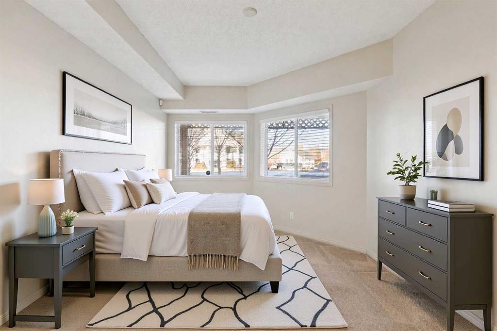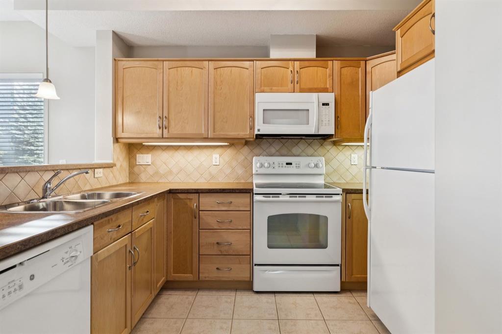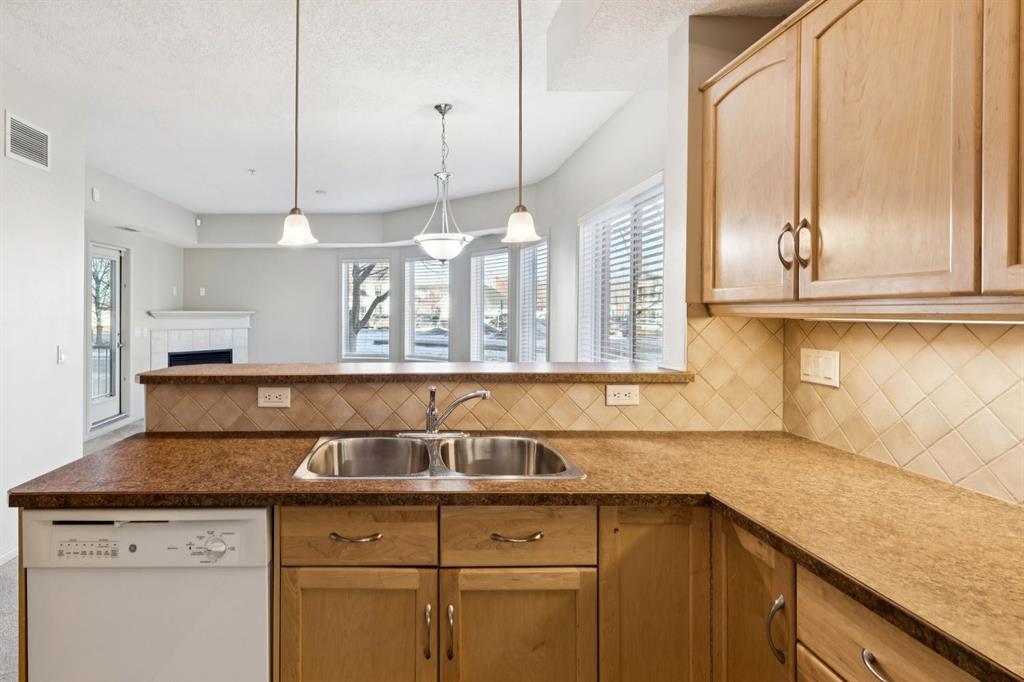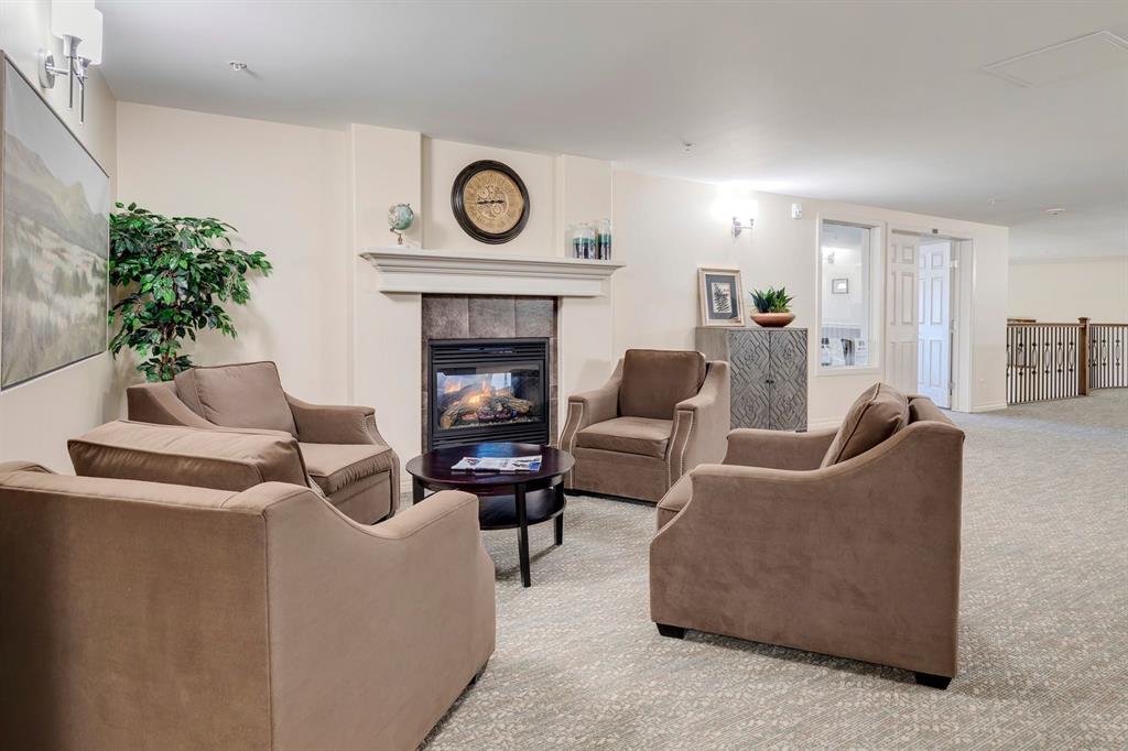 Welcome to the Aviemore of McKenzie Towne, a highly sought-after 55+ condo residence known for its welcoming atmosphere, exceptional lifestyle amenities, and unbeatable location in the heart of this lively, character-rich community. This ground-floor end unit offers a rare combination of privacy and convenience with only one shared wall, air conditioning, efficient heating, a cozy fireplace, and a personal patio that allows for easy outdoor access and relaxed everyday living. From the moment you enter, you’ll appreciate the wide-open layout enhanced by high ceilings and elegant arched doorways that create a bright, spacious feel throughout the home. The kitchen is thoughtfully positioned at the front of the unit and features a practical breakfast peninsula, full-size appliances, a garburator, and ample cabinetry—everything you need within easy reach for both daily meals and entertaining. It flows naturally into the generous living room, where the fireplace adds warmth and comfort and the patio access extends the living space outdoors. Down the hall, the layout continues with a full bathroom and two comfortable bedrooms, including a standout primary suite complete with a walk-in closet and private ensuite for added convenience. An in-suite laundry room with washer and dryer, along with additional storage space, adds everyday functionality and keeps everything neatly organized. A titled parking stall adds yet more value, providing a secure underground space with additional storage at the end of the stall. Life at the Aviemore is elevated by an impressive range of amenities designed to keep residents active, social, and engaged, including party rooms, a theatre, a fully equipped fitness centre with sauna, woodshop and hobby rooms, library, pool and billiards area, wine-making room, car wash bay, and a beautifully maintained outdoor gazebo. Beyond the building, McKenzie Towne truly shines with its walkable streets, charming High Street shops and cafés, nearby parks and pathways, and a strong sense of community that makes it easy to stay connected and enjoy a relaxed, fulfilling lifestyle right outside your door.