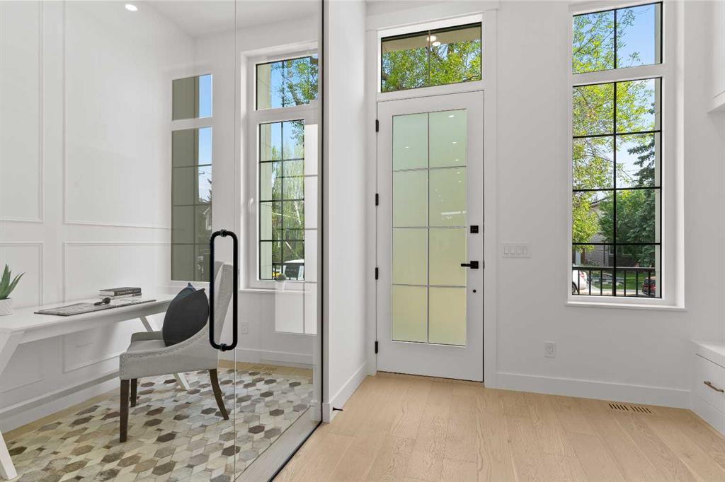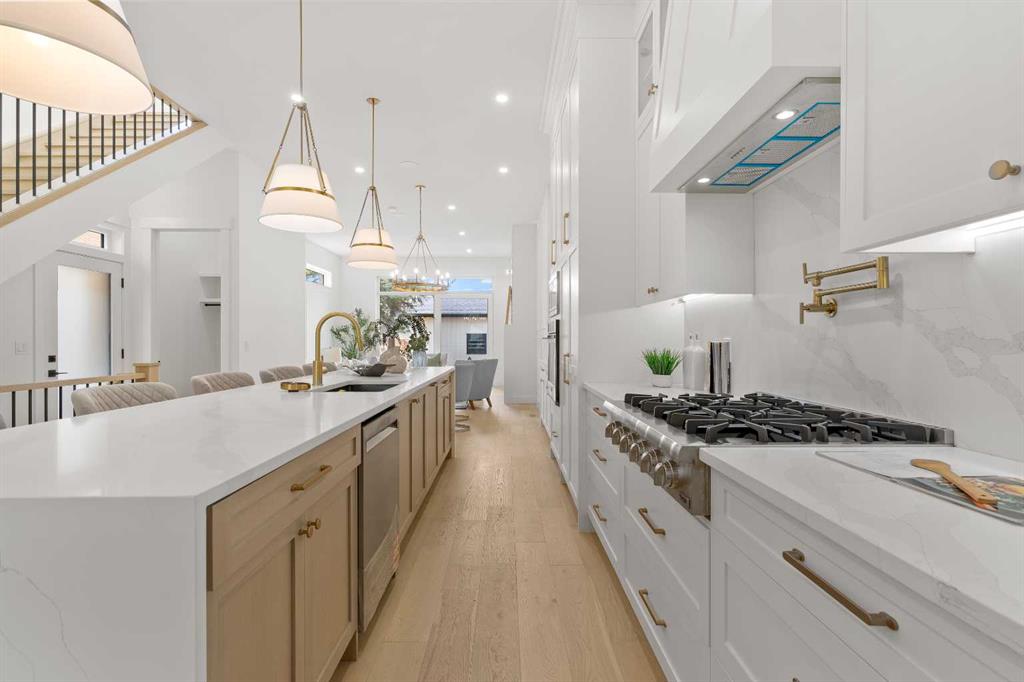 Welcome to one of West Hillhurst's FINEST homes—an exquisite detached infill accented with a stately limestone exterior, in one of Calgary’s most desirable and vibrant inner-city neighbourhoods. Thoughtfully designed for both everyday living and upscale entertaining, this home combines luxury, comfort, and functionality in a truly exceptional package. As you step inside, you're greeted by a spacious front entryway that offers a warm welcome and sets the tone for what’s to come. Just off to the right is a dedicated home office—perfect for remote work, creative projects, or a quiet retreat. The main floor unfolds into a stunning open-concept layout featuring a formal dining area, a chef-inspired kitchen with floor-to-ceiling high-end finishings, and a large living room anchored by a cozy fireplace. At the side entrance, a generous closet space helps keep things organized and clutter-free, making everyday life effortlessly stylish and functional. The south-facing backyard is bathed in natural light, providing the ideal setting for relaxing, entertaining, or enjoying sunny summer days. Upstairs, the primary suite is a true retreat, featuring a luxurious ensuite with a fully installed steam shower and a spacious walk-in closet. Two additional bedrooms on the upper level each offer private ensuites, giving family members or guests the ultimate in privacy and comfort. The fully finished lower level is designed for both entertainment and wellness; featuring a large media room perfect for movie nights or game days, a sleek wet bar, a private gym space, and a fourth bedroom with bathroom, that works beautifully as a guest room, secondary office, or flex space. Additional upgrades include a rough-in for A/C, a rough-in for a hydronic in-floor heating system in the basement, and a central vacuum rough-in. Ceiling speakers are installed on the main floor and in the basement, to set the mood in every space. With its unbeatable location, refined finishes, and thoughtful design, this home is the perfect blend of modern elegance and inner-city convenience. Don’t miss your chance to own this extraordinary West Hillhurst residence.