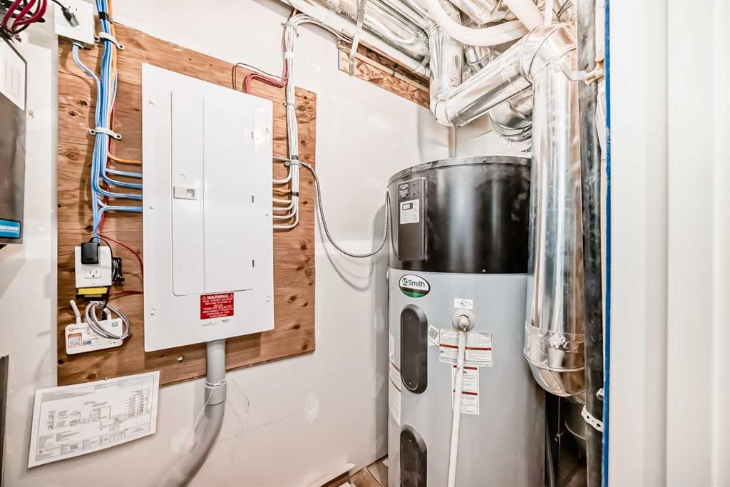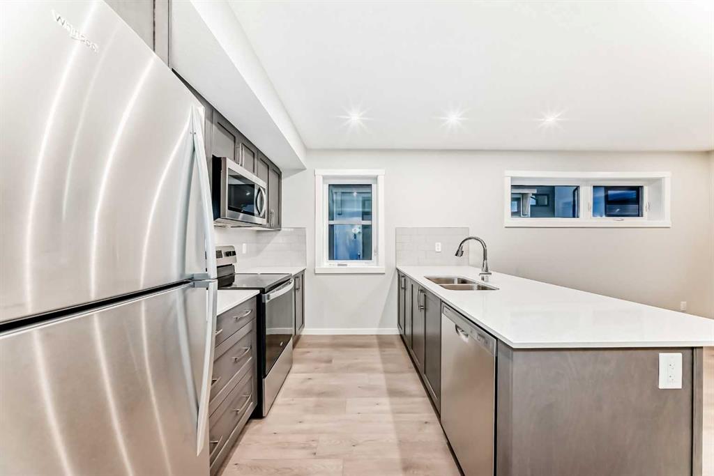 Welcome to this modern, energy-efficient townhome located in the heart of Mahogany, one of Calgary’s most desirable lake communities. The open-concept main level offers a bright living area filled with natural light, a well-appointed kitchen with contemporary finishes, and a dedicated dining space ideal for everyday living and entertaining. Large windows throughout the home allow for abundant natural light across all levels, creating a warm and inviting atmosphere. The upper level features comfortable bedrooms, modern bathrooms, and convenient upper-level laundry. A standout feature is the third-level bonus space, offering flexibility as an additional bedroom, home office, or entertainment area, with direct access to a private rooftop patio—perfect for relaxing or hosting guests. Energy-efficient upgrades include solar panels, a high-efficiency heat pump providing both heating and cooling, and enhanced insulation for year-round comfort and reduced utility costs. Enjoy close proximity to Mahogany Lake, the Beach Club, pathways, parks, shopping, restaurants, and schools. A fantastic opportunity to own a modern, low-maintenance home in an amenity-rich community.