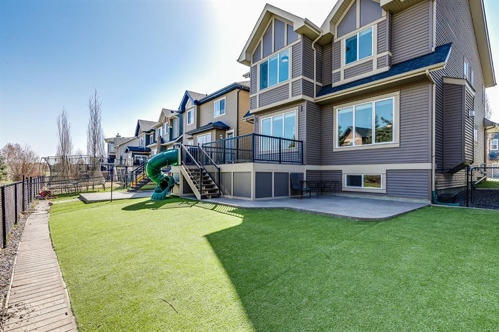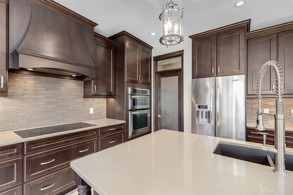 OPEN HOUSE SUN MAR 29th 2:00 - 4:00 pm ** Incredible Price on this GORGEOUS HOME! This Highly Upgraded Custom Built McKee Home boasts 2680 sqft with a Fully Finished Basement providing a total of 3818 sqft of Developed Space. This Beautiful Home has 5 Bedrooms, and BACKS ONTO GREENSPACE and PATHWAYS that is a 1 min walk from the Coopers Crossing Elementary School. When you arrive, you will enjoy the Large Private Foyer with a seating bench, and will immediately notice the beautiful Travertine Tile Flooring, 9' Ceilings, and the Home is FRESHLY PAINTED. The Front Office is nicely situated so it is Private and has French Doors. You will be impressed by the Oversized Windows that welcome you into the Living Room and Kitchen area as they bathe the Home in Natural Light. The Living Room is quite spacious and has a Feature Wall the Oversized Stone Faced Fireplace. The Kitchen is a Chef's Dream and features Upgraded Appliances including a 5 Burner Induction Cooktop, Built in Wall Oven, Built in Microwave, Stainless Steel Refrigerator, Quartz Countertops, Tons of Full Height a Beautiful Cabinetry with lots of Pot and Pan Drawers, Undermount Lighting, Glass Tiled Backsplash, a Massive Island with seating, and a Huge Walk through Pantry. The Dining area can host a large table. The Mudroom has Built in Cabinetry and opens to the Oversized Garage. The Staircase with Wrought Iron Spindles lead you to the Upper Level that opens to a Massive Family Room with Vaulted Ceilings. The oversized Primary Suite is exquisite with Hardwood Flooring, Vaulted Ceilings, a Reading Nook with Built in Shelving and opens to the Ensuite. The Spa-like Ensuite has a Soaker Tub, Dual Vanities, and an oversized Shower Stall with 3 Showerheads to help you relax and enjoy your escape away. There is also a walk in closet. 3 Additional Bedrooms, Full Bathroom, and Laundry Room complete the Upper Level. The Lower Level was completed by the Builder to keep the decor and cabinetry the same and features 9' ceilings and a Fantastic Family Room with a Stone Feature Wall with a 120" Projection Screen and Media Equipment, Built in Cabinetry, Huge Dry Bar perfect for all those movie snacks and for storage. There is also a Games area, the 5th Bedroom and a Full Bathroom on the Lower Level. This Amazing Home is Air Conditioned, has a Brand New Furnace (Dec 2025) and Hot Water Tank (Oct 2025), Water Softener, Sonos System and Speakers throughout, and Vacuum System. The Exterior has a Large Upper Deck with BBQ Gas Line, a Slide for the kids, and has Composite Decking. The Lower Aggregate Patio extends under the enclosed Deck making storage easy and clean. The Home is surrounded by Pet Friendly Artificial Turf making it low maintenance for a busy Family. The Oversized Heated Garage is 25'.7" x 19'1". Coopers Crossing is the Premier Community in Airdrie. Watch your kids walk to school from the Home and ride their bikes on the back pathway. This is an amazing Family Home. Ensure to watch the tour on MLS or Realtor.ca.
