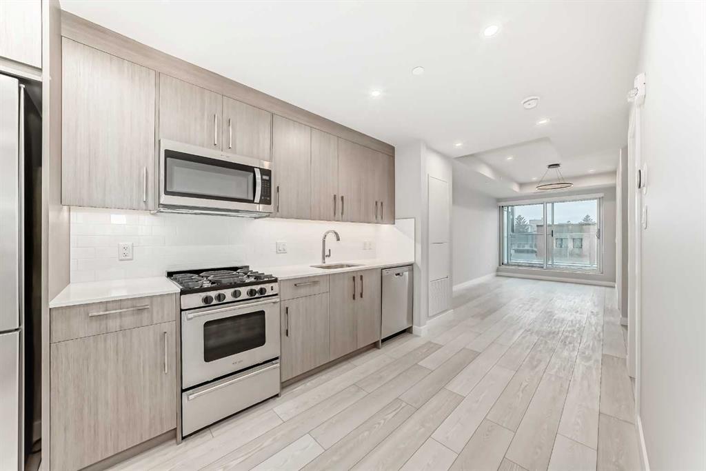 Welcome to Frontier by Truman – Brand New 2 Bed, 1 Bath Condo in the Heart of Kensington! Discover the ideal mix of modern design and city living in this brand-new 2nd floor unit located in one of Calgary’s most walkable and vibrant communities. Just steps from Kensington’s popular cafés, restaurants, boutique shops, and minutes from the Bow River pathways and downtown. This spacious 2-bedroom, 1-bathroom condo features an open-concept layout with a chef-inspired kitchen, quartz countertops, stainless steel appliances, and a bright living area that opens onto a private balcony with gas BBQ hookup. Both bedrooms are generously sized—perfect for a home office, guest room, or shared living. The elegant 4-piece bathroom is finished with premium materials and a modern design. Additional Features: Private balcony with views & gas BBQ hookup Underground titled parking stall Secure storage locker Access to a private landscaped terrace State-of-the-art fitness centre Stylish co-working spaces Secure underground bicycle storage Same-floor garbage chute for convenience Low-maintenance living, and unmatched location make this home perfect for first-time buyers, professionals, or investors. Don’t miss your opportunity to own in Frontier—book your private showing today!