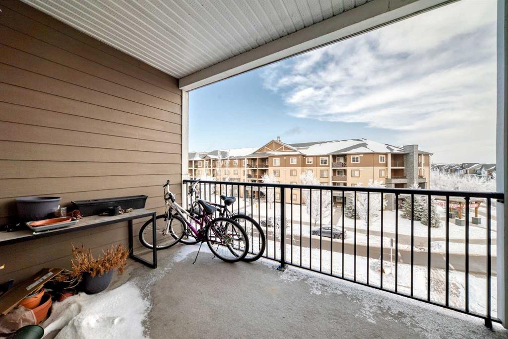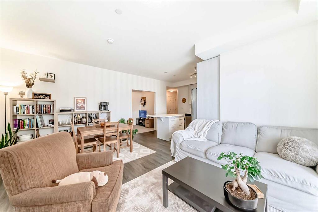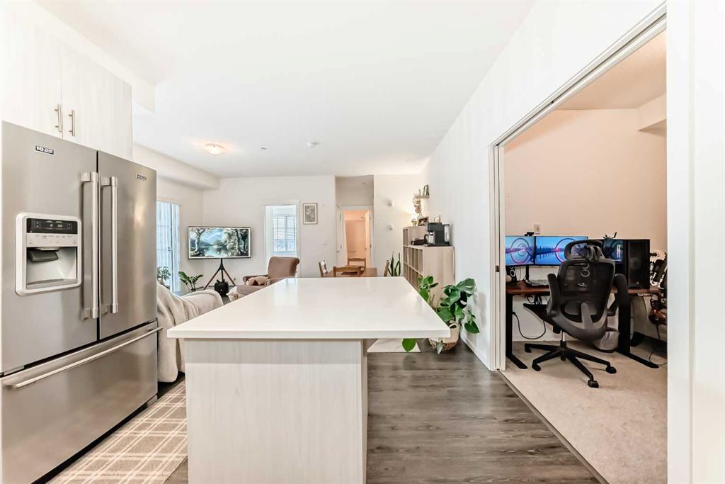 Welcome to this bright and spacious 2-bedroom + den corner unit ideally located in the heart of Legacy, directly across from a park with unobstructed green-space views. With the rare advantage of two titled parking stalls and a highly functional layout, this home offers both comfort and convenience. Situated on a main road for excellent accessibility, it is steps from walking paths, a community pond, transit, and Legacy’s vibrant shopping plaza. As an end unit, the home is flooded with natural light and offers 893 sq ft of living space, making it one of the larger units in the building. The welcoming foyer opens to durable luxury vinyl plank flooring throughout, with carpeted bedrooms for added comfort. A generous den/home office and in-suite laundry provide ideal flexibility for remote work, hobbies, or additional storage. The modern kitchen features quartz countertops, a subway-tile backsplash, textured thermafoil cabinetry, and a movable quartz island - perfect for entertaining and everyday living. Both full bathrooms are finished with quartz counters, continuing the clean, contemporary design. Additional highlights include rough-ins for air conditioning, a BBQ gas line, and the rare benefit of two titled parking stalls—one underground and one surface stall. An excellent opportunity for first-time buyers, downsizers, or investors seeking space, natural light, and a prime location in a growing community. Book your private showing today!