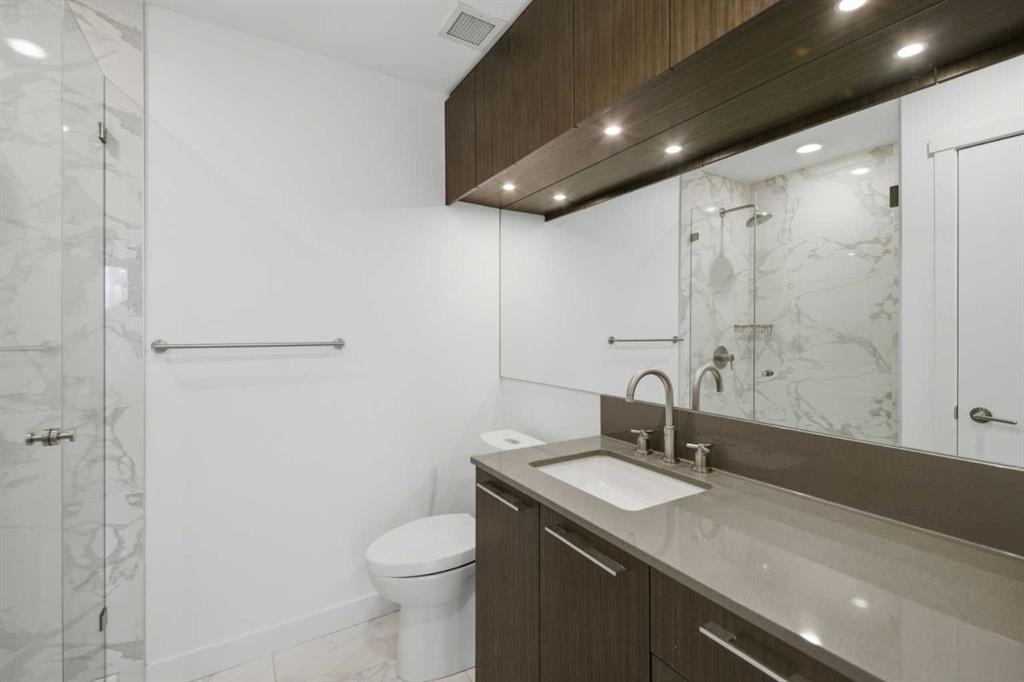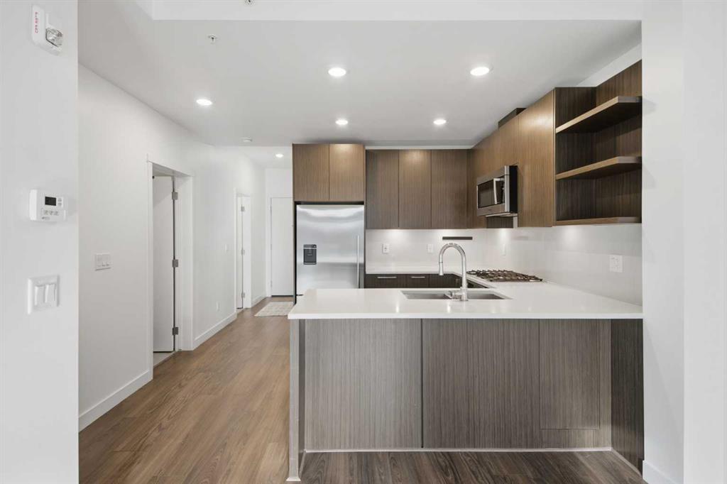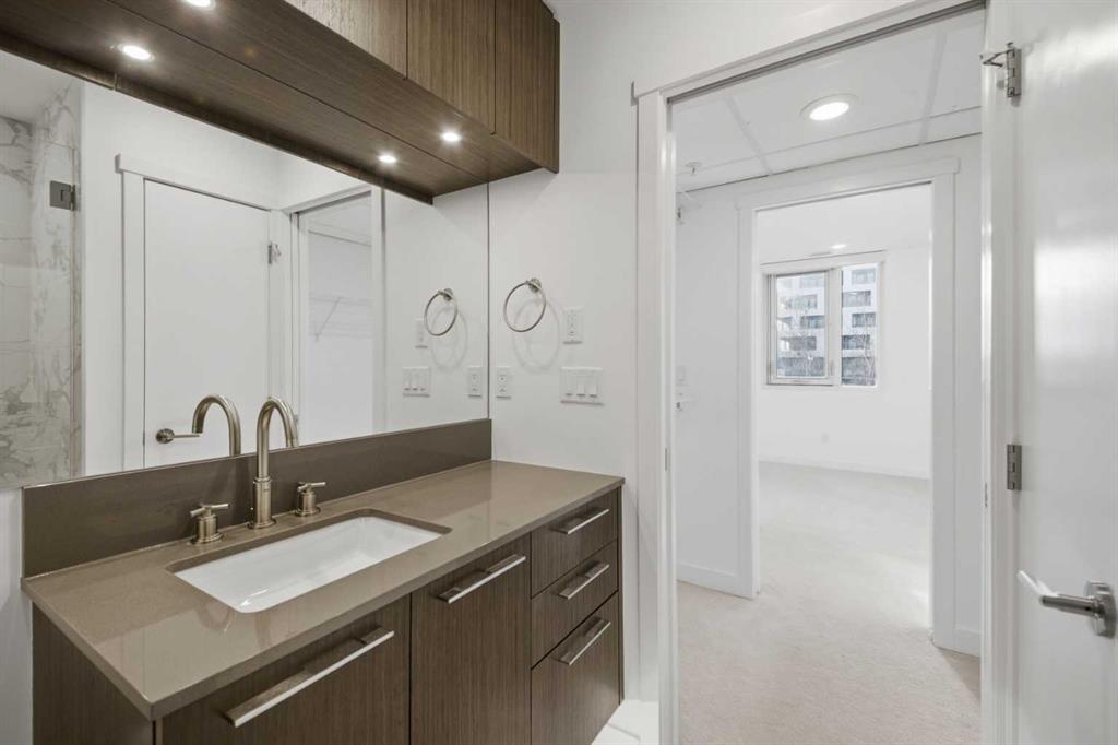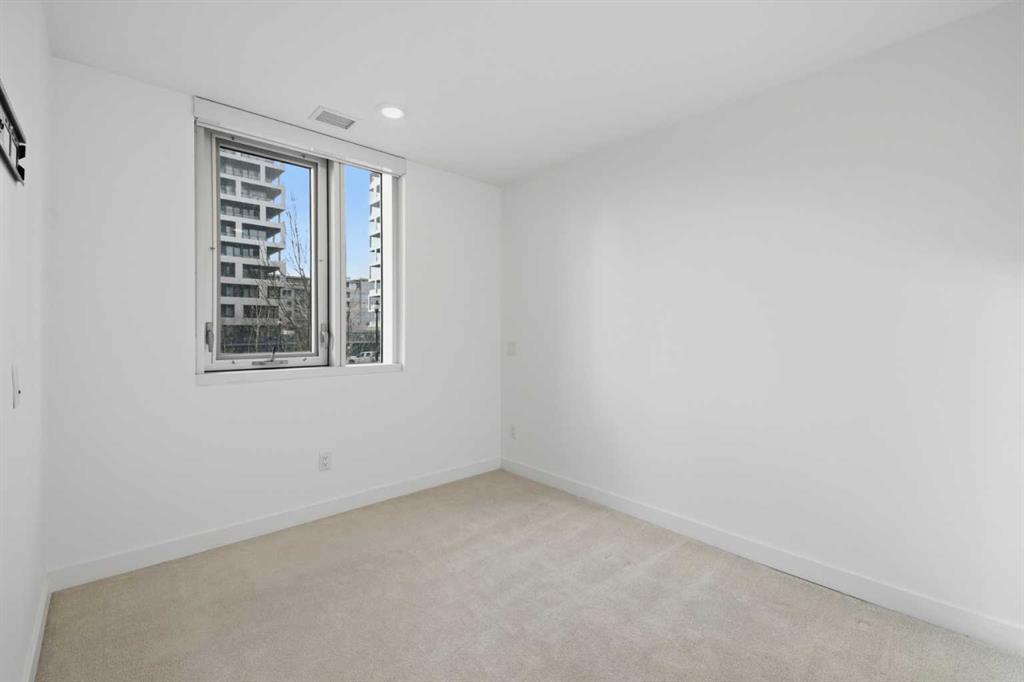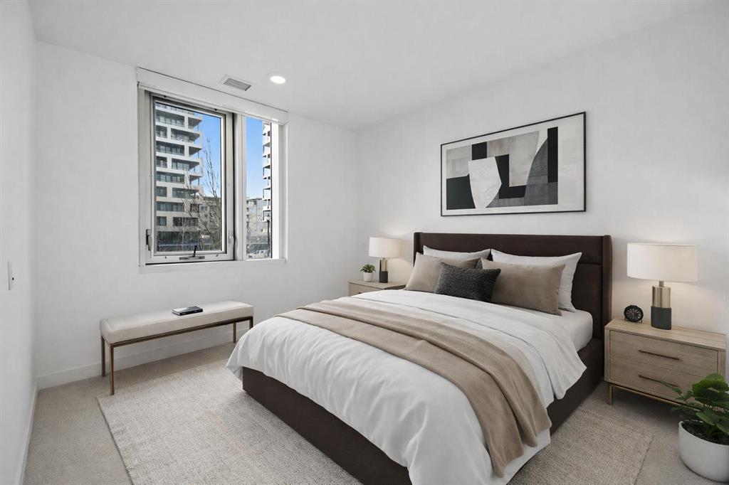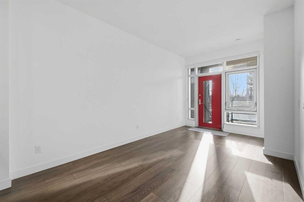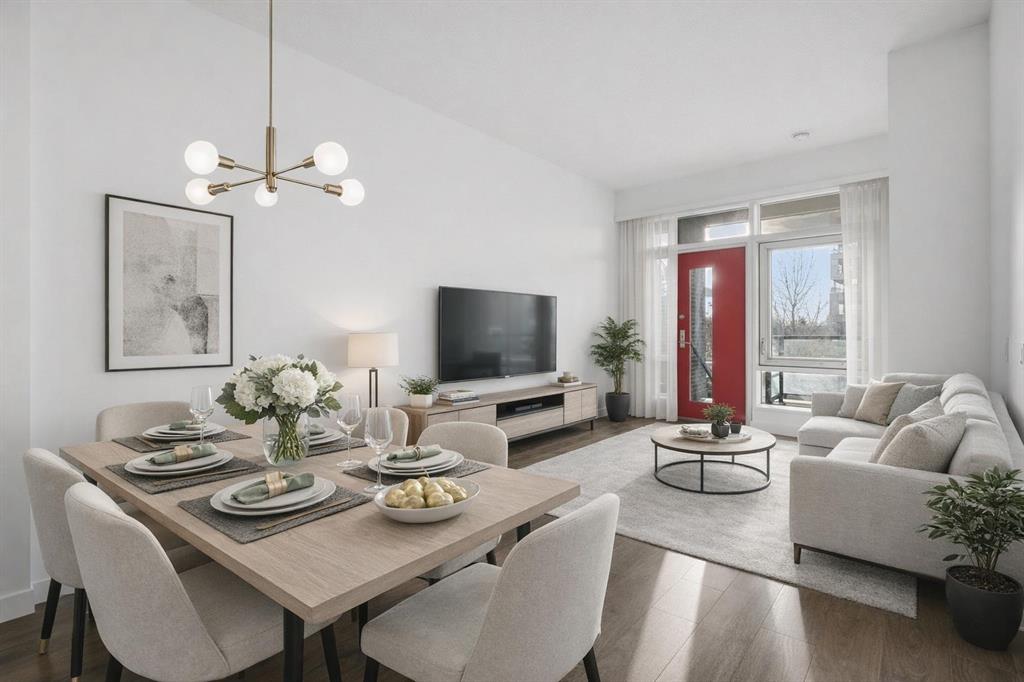 **OPEN HOUSE 1-3 PM SUNDAY 22nd March** This GROUND-FLOOR TWO BEDROOM, TWO BATHROOM apartment offers a rare layout with a PRIVATE EXTERIOR ENTRANCE. Inside, the layout is OPEN AND FUNCTIONAL, with LARGE WINDOWS bringing in steady natural light throughout the day. The living and dining areas connect directly to TWO SPACIOUS PATIOS, providing excellent outdoor space for daily use, entertaining, or pets. The KITCHEN is clean and modern with STREAMLINED CABINETRY, CONTEMPORARY FINISHES, and a FULL-WIDTH ISLAND that works well for meals and gathering. The PRIMARY BEDROOM includes a WALK-THROUGH CLOSET leading to a private ENSUITE BATHROOM. The SECOND BEDROOM features a BUILT-IN MURPHY BED, allowing the room to function comfortably as a bedroom, office, or flex space. Additional features include IN-SUITE LAUNDRY, AIR CONDITIONING, an OVERSIZED CORNER TITLED UNDERGROUND PARKING STALL , SEPARATE STORAGE LOCKER, and SECURE BIKE STORAGE. The building offers a wide range of shared amenities, including TWO FITNESS ROOMS, YOGA STUDIO, SPIN STUDIO, ROOFTOP PATIO, CAR WASH, and DOG WASH STATION. Gyms located on Floors 1 and 3; yoga and spin studios on Floors 4 and 5; bike storage, storage locker, and dog wash on P1; parking on P2. Located in BRIDGELAND, the property is within walking distance to RESTAURANTS, COFFEE SHOPS, GROCERY STORES, PARKS, and the C-TRAIN STATION, offering practical access to daily amenities and transit. Well suited for OWNER OCCUPIERS OR INVESTORS seeking a low maintenance property with strong functionality and location.