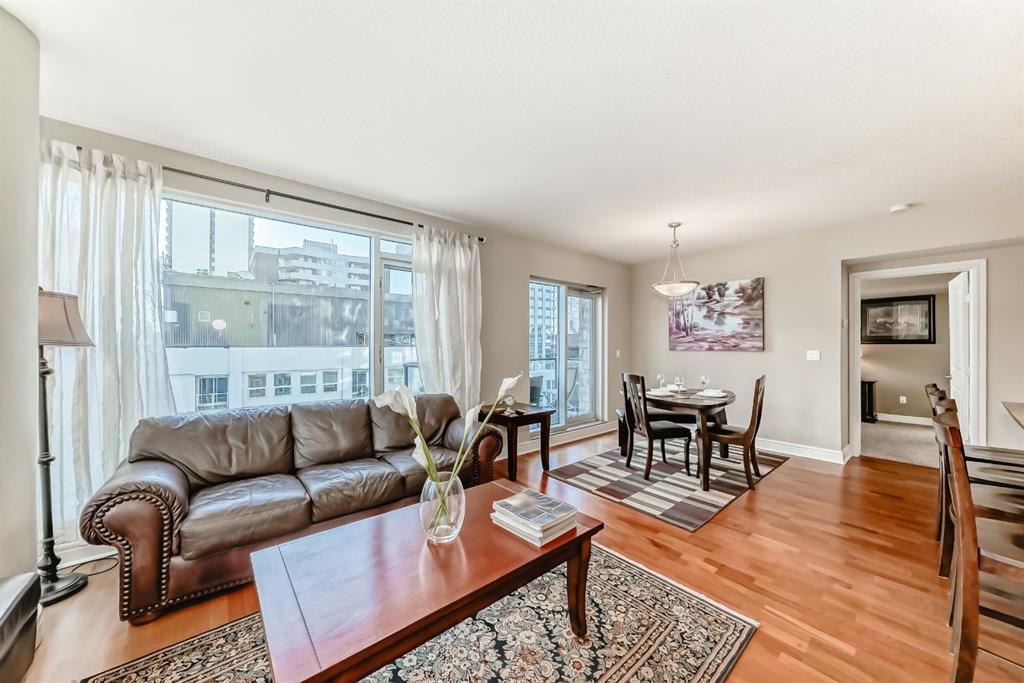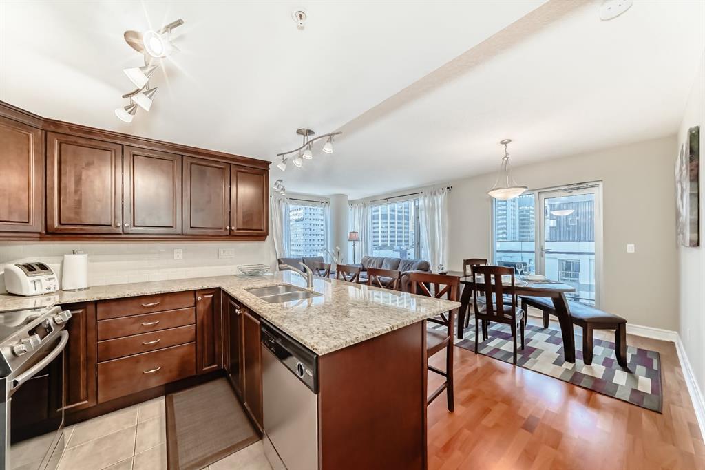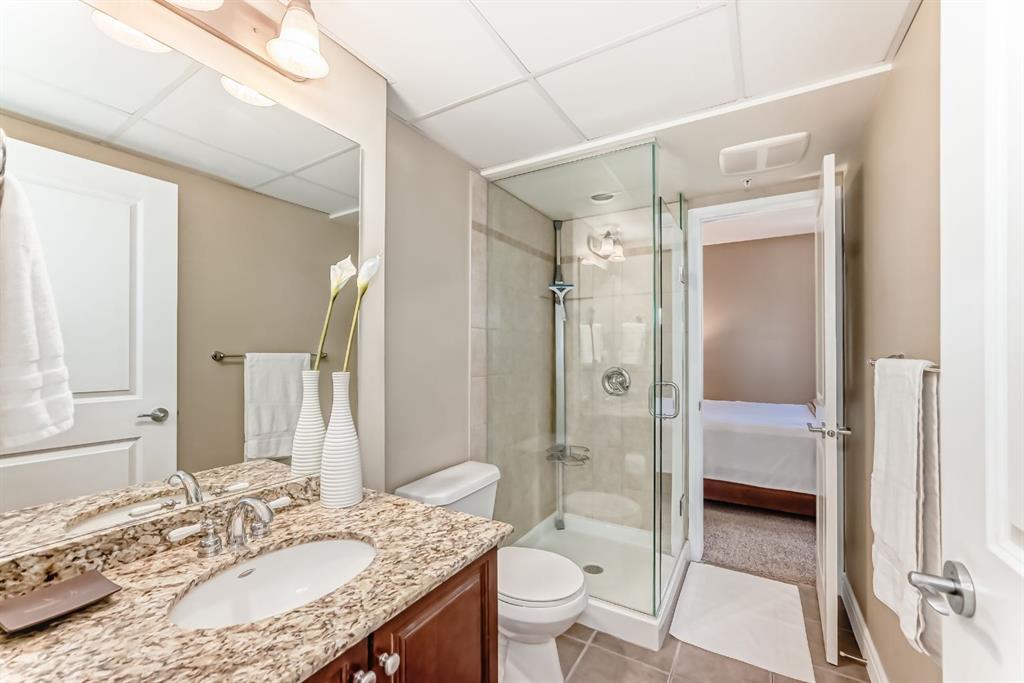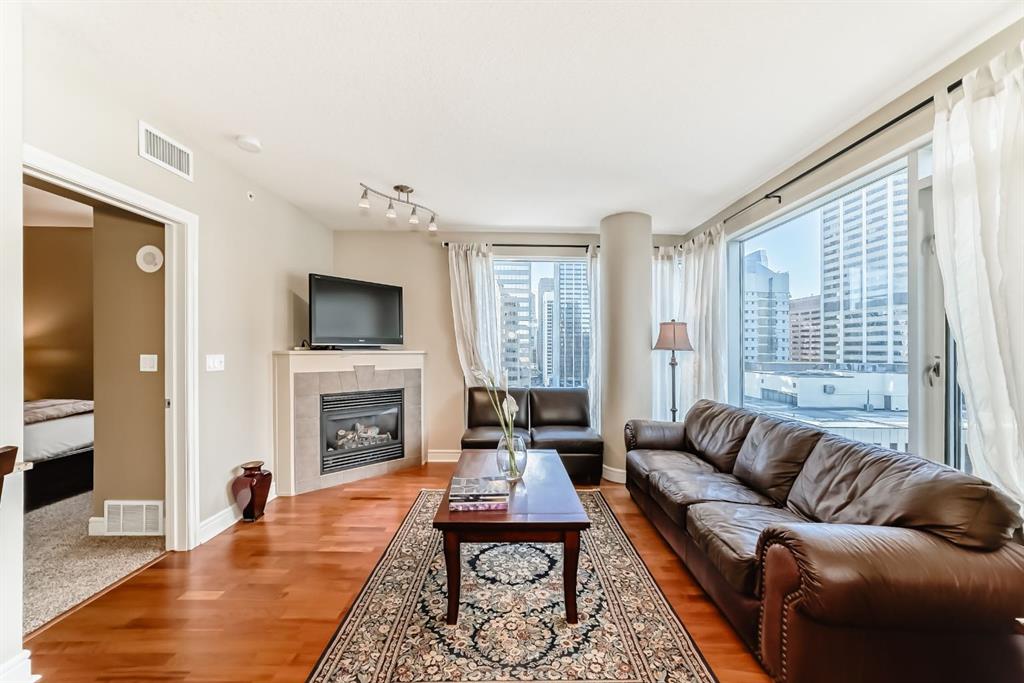 An exquisite residence located in the esteemed FIVE WEST – Phase 2, nestled in the vibrant heart of Downtown. This luxurious haven showcases a clever layout adorned with air conditioning, two secluded bedrooms, two well-appointed bathrooms, a conveniently structured office nook, and a charming fireplace for those cozy evenings. All these attributes speak volume of its move-in readiness that uniformly exudes evident pride of ownership. Situated in the epicenter of all amenities, this property is within an arm's reach to the serene Bow River, an extensive pathway system, a diverse range of restaurants, and shopping outlets. The Downtown Core and LRT access are effortlessly walkable, engraving a superb urban living experience. Entering this home you will find a modernized kitchen adorned with pristine granite countertops and stainless appliances. It flawlessly opens onto the dining and living room, illuminated by floor-to-ceiling windows that radiate natural light. The corner fireplace amplifies the ambiance, and a private balcony comes complete with a gas bbq outlet, perfect for the al fresco dining experience. The generously sized master bedroom boasts a comprehensive 4-piece ensuite with jetted tub and sizeable walk-in closet. The second bedroom ingeniously features a door to a second 3-piece bathroom, ensuring privacy for all occupants. Further home amenities include a custom-built computer nook and spacious in-suite laundry, showcasing well-thought-out efficiency. The building's perks include a heated, underground parking, a dedicated storage unit, an inviting party room that opens onto a private sun deck, dutiful concierge service, and a handy car wash. Indoor visitor parking is also graciously provided, putting your company's convenience at the forefront. Don't miss this golden opportunity. Contact your agent today for a private viewing and let this property pique your house-hunting desire!