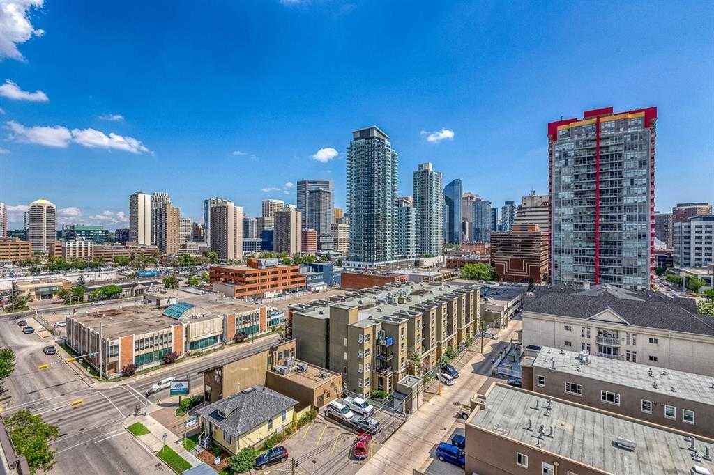 WELCOME TO LUNA — 1-BED/1-BATH W/ UNOBSTRUCTED 180-DEGREE DOWNTOWN VIEWS & FULL-SERVICE AMENITIES! Set in the popular LUNA building in the heart of the Beltline, this 1-bedroom, 1-bath condo offers one of the best layouts in the building, great storage, and open views of Calgary’s downtown skyline. Walking in, you’re welcomed by a spacious foyer and walk-in shoe closet, giving you plenty of room to unload shoes, coats, and daily gear. The open-concept kitchen is sure to impress, featuring Quartz countertops, flat-panel walnut & glass cabinetry, matching glass backsplash, stainless steel appliances, a gas cooktop, and a large island with seating for 4. The living and dining area easily fits a full sectional and TV setup, with direct access to the balcony. Step outside to enjoy a relaxing morning coffee while taking in the East-facing views of the Calgary skyline. Back inside, a built-in desk area provides a convenient work-from-home setup without taking over the living space. The bedroom fits a queen bed comfortably and connects to the balcony, with a walk-through closet leading into the 4-piece bathroom. The bathroom includes a soaker tub, a separate glass shower, and clean, modern finishes. This unit also includes in-suite laundry, central A/C, a separate in-unit storage room (a rare bonus in a one-bedroom), and a titled parking stall in the heated underground parkade. LUNA is a concrete building with concierge service and strong amenities, including a full fitness centre, yoga studio, owner’s lounge with fireplace and games area, guest suites, and secure underground parking. The building is well managed and known for its modern feel and unbeatable location. Situated in the heart of the Beltline, LUNA is surrounded by Calgary’s top dining, shopping, and lifestyle amenities. Enjoy walkability to 17th Ave, Safeway, fitness studios, cafés, restaurants and more. Plus, get easy access to the rest of the downtown core and city through nearby LRT train station with free fare when traveling within downtown. Jumping in the car: Airport is a 19 min drive (17.5KM), & Banff is a 1 hr 27 min drive (126KM).
