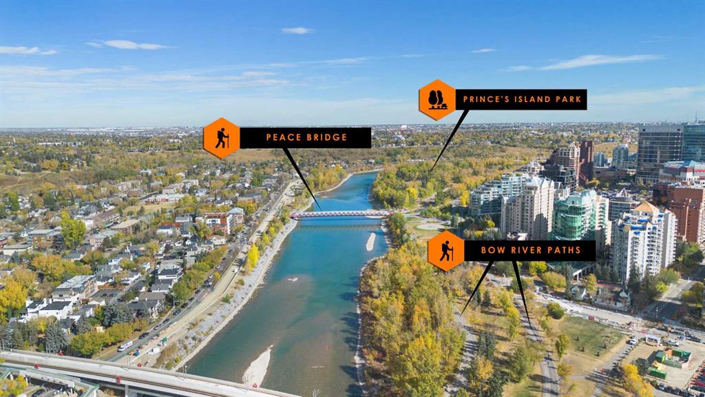 Welcome to Riverwest, where sophistication meets serenity at one of Calgary’s iconic and prestigious addresses in the Downtown West End. This exceptional corner suite spans over 2,000+sq.ft of pure elegance, 2 Bedroom+Den/Office wrapped in panoramic views of the Bow River, and dazzling city skyline—a rare fusion of natural beauty and urban vibrance. Wake up to breathtaking river views and wind down with city lights dancing on the water—every room in this home offers a front-row seat to Calgary’s finest scenery. Whether you're sipping your morning coffee on one of the three private terraces, or entertaining guests against a backdrop of sunsets over the river, this home offers a lifestyle that’s as luxurious as it is unforgettable. Step inside and experience refined living with floor-to-ceiling windows that flood the space with natural light. The kitchen is both stylish and functional, featuring granite countertops, custom maple cabinetry, stainless-steel appliances, and a spacious breakfast bar—perfectly integrated with the open-concept dining and living areas to create a seamless space for cooking, dining, and entertaining. The primary suite is a private oasis designed for ultimate relaxation—complete with its own terrace, a walk-in closet, and a spa-like ensuite with a jetted soaker tub, glass shower, and dual vanity. A versatile third bedroom with sweeping views offers the perfect blend of function and style—ideal as a private home office, den, or guest room for the modern urban professional. This home is thoughtfully appointed with hardwood and tile flooring, central A/C, and two underground parking stalls for added comfort and convenience. As a resident of Riverwest, you'll enjoy resort-style amenities including pool, gym, lounge area with ping pong/pool table, daytime concierge and overnight security. Step outside and you're mere moments from the Bow River pathways, CTrain station, acclaimed restaurants, boutique shopping, and Calgary’s vibrant downtown core.