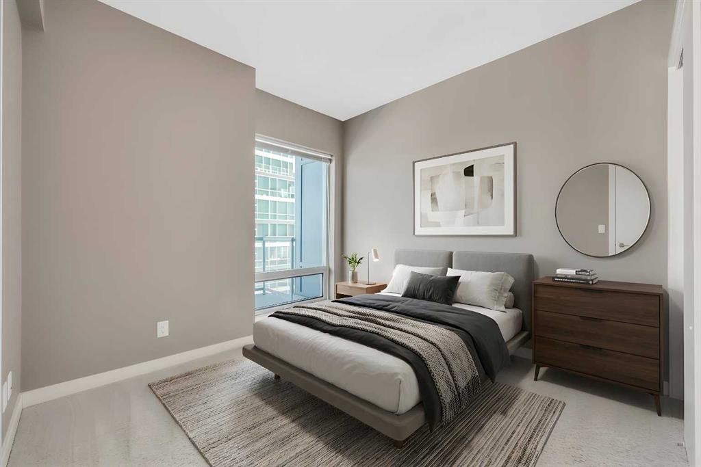 Discover elevated urban living in this gorgeous 20th-floor corner unit in the concrete Union Square building, located in Calgary’s vibrant Beltline. This 2 BED, 2 BATH condo offers a spacious layout with over 900 SQ FT, and with floor-to-ceiling windows showcasing spectacular Downtown Calgary views. The open-concept living and dining area is flooded with natural light and features rich upgraded hardwood throughout. The modern kitchen features stainless steel appliances and ample storage, ready for all your cooking needs. The generously sized primary bedroom boasts a large ensuite bathroom, while the second bedroom and full bathroom provide privacy and convenience, ideal for guests or a home office. Additional highlights include in-suite laundry, a private balcony, heated and titled underground heated parking, and additional dedicated storage locker. Central A/C! Just a few short blocks from Calgary’s downtown core, this unit places you steps from some of the city’s best restaurants, cafes, and amenities. Enjoy easy access to green spaces, bike paths, convenient routes in and out of the city, and nearby landmarks including Stampede Park, the Saddledome, and the LRT—perfectly blending comfort, style, and urban convenience. You don’t want to miss this one! Union Square sits nestled in between restaurants and shops in a mini entertainment district on 1st St SW.