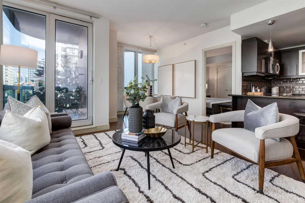Bright, quiet, and impeccably positioned on the 5th floor, this nearly 900 sq ft corner suite offers a refined urban lifestyle in one of Calgary’s most sought-after inner-city locations. Featuring two bedrooms and two full bathrooms, the home strikes a rare balance between downtown energy and everyday tranquility, sitting just steps from the excitement of 17th Avenue while staying thoughtfully set back from the bustle of city life. Living here means embracing a truly walkable lifestyle. Start your mornings with coffee from a nearby café, pick up groceries or fresh produce just around the corner, or head to your favourite yoga studio or boutique gym, all without ever needing your car. Commuting is effortless, whether you work downtown, attend meetings across the core, or rely on nearby transit routes for easy access throughout the city. In the evenings, stroll to award-winning restaurants, lively patios, cocktail lounges, and local boutiques, then return home to a peaceful retreat elevated above the street. Inside, the open-concept layout is flooded with natural light thanks to floor-to-ceiling windows and a desirable corner orientation. Hardwood floors, central air conditioning and heating, in-suite laundry, and a thoughtful split-bedroom design create a space that feels both stylish and highly functional. The primary bedroom offers excellent privacy with a generous closet and a well-appointed ensuite, while the second bedroom and full bathroom are ideally positioned for guests, roommates, or a dedicated home office. Step onto the private balcony off the living room and enjoy your own outdoor space, complete with a gas BBQ hookup…perfect for relaxed evenings, summer grilling, or entertaining friends before heading out on 17th Ave. The home also includes titled underground parking and a separate storage locker, adding everyday convenience and peace of mind. The Montana is a standout building in Calgary’s urban landscape, known for its timeless architectural design and quality concrete construction that provides superior soundproofing and long-term value. Residents enjoy a low-maintenance, luxury lifestyle with a 7-day concierge, a newly updated fitness centre, and condominium fees that include heat, water, insurance, and more. Beautifully maintained and move-in ready, this residence is ideal for professionals, downsizing, or urban enthusiasts seeking sophisticated downtown living without compromise. This is a home that truly complements the vibrant, connected lifestyle that downtown Calgary is known for.