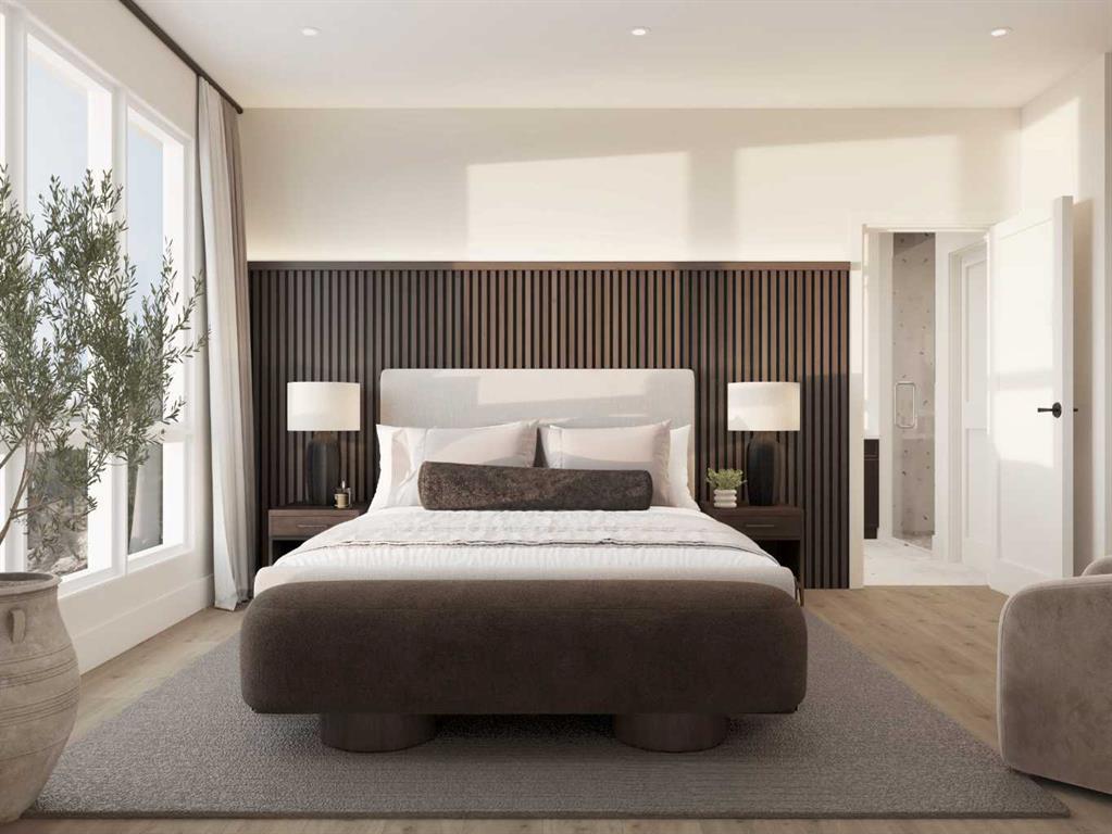 **OPEN HOUSE Hours are at the Show Suite - Look for Signs** Welcome to Unit 811 in the boutique Hortus Building at Canmore Renaissance, ideally located along Three Sisters Parkway just minutes from Stewart Creek Golf Course and surrounded by the Rocky Mountains. This 1st-floor 2-bedroom, 2-bathroom residence offers 930 sq ft of well-designed interior space paired with an impressive 160 sq ft private walk-out patio, perfect for morning coffee, entertaining, or easy pet access. The open-concept kitchen, dining, and living area is finished with quartz countertops, Bosch panel-ready appliances, stained and painted millwork, and an LG washer and dryer. Flooring throughout includes engineered hardwood, porcelain tile, and luxury vinyl tile, delivering both style and durability for mountain living. The primary suite features a walk-in closet and a private ensuite, while the second bedroom and full bathroom provide flexibility for guests, family, or a home office. The thoughtful layout offers excellent separation between bedrooms and living areas, making the space feel larger and more functional. Hortus is a pet- and kid-friendly building with access to premium shared amenities in the nearby Abruzzo Building, including underground parking, a fitness centre, and a resident recreation lounge. With only 8 luxury residences in the Hortus Building, this is a rare opportunity to secure a brand-new ground-floor home in one of Canmore’s most desirable communities. Contact us for pricing, availability, and private showings.