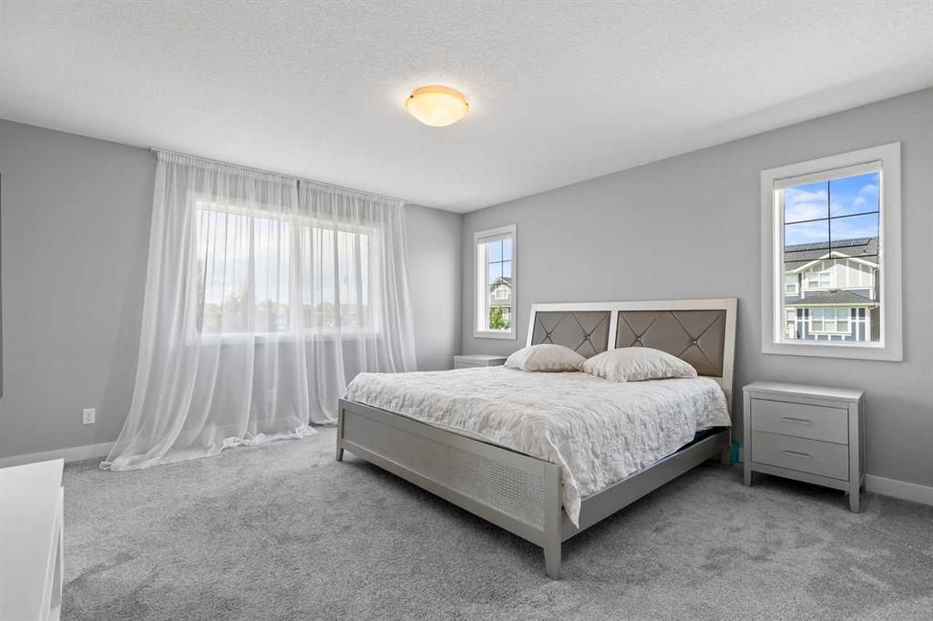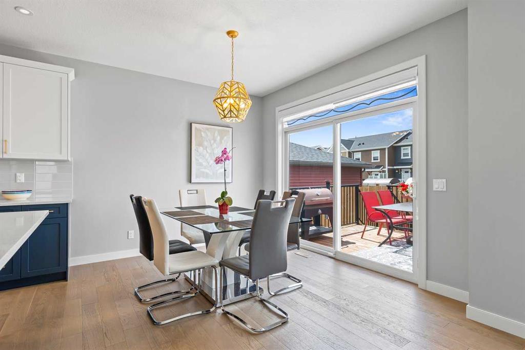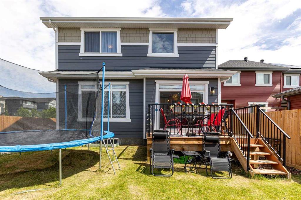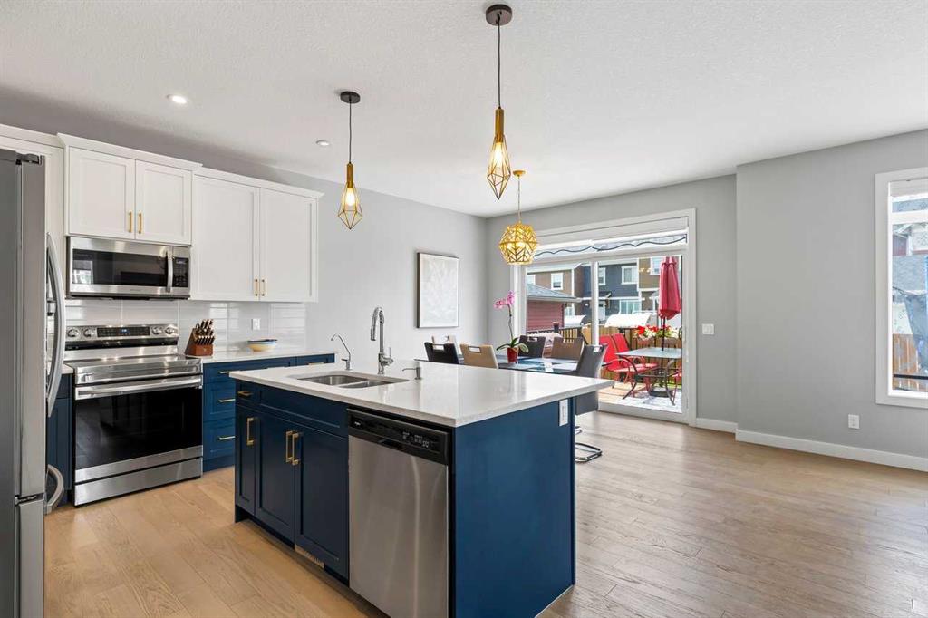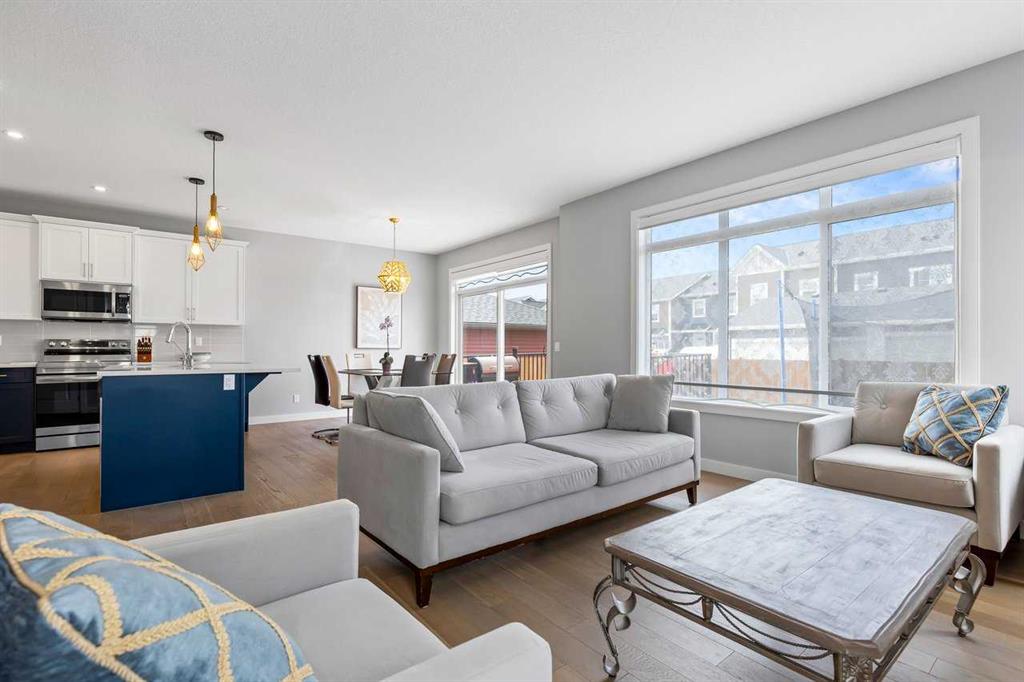 Welcome home to this bright, beautifully upgraded 3-bedroom gem in the heart of Sunset Ridge! Perfectly set on a spacious corner lot with plenty of extra parking, this home immediately impresses with its 9’ ceilings, rich engineered hardwood floors, and an abundance of natural light streaming through the large main-floor windows. Step into the open-concept main level, where the gourmet kitchen takes center stage with its premium builder’s appliance package, striking quartz island, and sleek matching quartz counters in both the ensuite and main bath. The sunny dining area flows seamlessly onto your west-facing backyard—an ideal spot to unwind and soak in stunning evening sunsets. The great room offers a warm and welcoming atmosphere, complete with a modern electric fireplace. A versatile main-floor flex room with elegant 8-foot double doors adds even more comfort and functionality—perfect for a home office, play space, or creative studio. Head upstairs to find a bright and spacious bonus room, perfect as a second family hangout or homework hub. The primary suite feels like a private retreat, featuring a spa-inspired 5-piece ensuite and a generous walk-in closet. Two additional bedrooms and a beautifully finished main bath complete this thoughtfully designed upper level. Located just blocks from RancheView K–8 School and a short drive to St. Timothy High School, this home is surrounded by convenience, with a future community centre and additional school planned nearby—ideal for a growing family. Enjoy being only 30 minutes from Calgary, 45 minutes to the airport, and just a scenic 40–45 minute drive to the mountains for your weekend getaways. This is an incredible opportunity to own a beautifully upgraded home in a vibrant, family-friendly community. Come see it for yourself—book your showing today.
