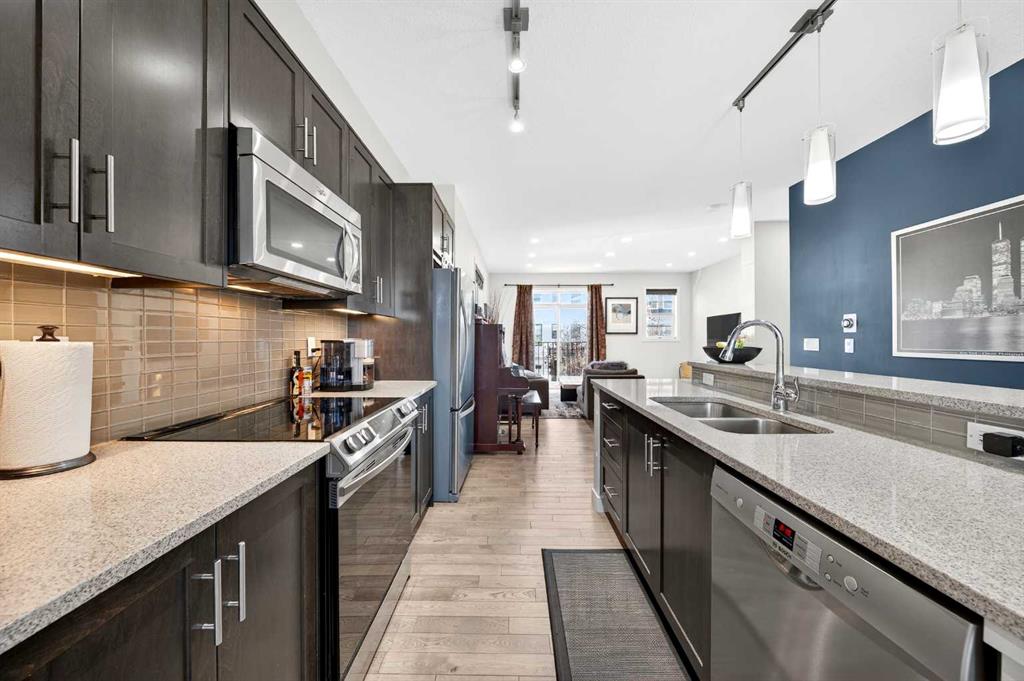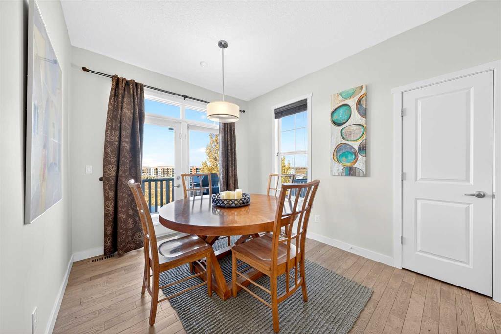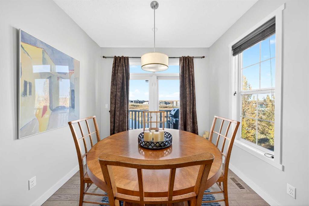 Discover this stunning End-Unit Townhouse in Nolan Hill, backing onto a peaceful Pond, Green Space, and Walking Paths—no neighbors behind! This home features 3 Bedrooms, 2.5 Baths, and 1,546 sq. ft. of thoughtfully designed living space. Step into the Main Floor with 9’ ceilings and gleaming hardwood floors throughout the Open-Concept Layout. The Kitchen showcases a Central Island, Raised Eating Bar with Quartz Countertops, Stainless Steel Appliances, plus a convenient Pantry. The Living Room includes a Juliet Balcony, while the Dining Area opens onto a Balcony with Gas Hookup, perfect for BBQs while enjoying serene Pond views. A Half Bath with Window completes the Main Level. On the upper level, the Primary Bedroom offers a Walk-In Closet, 3-Piece Ensuite with a standing shower and seat, and a large window overlooking the Pond. Two additional Bedrooms, one with a Walk-In Closet, share a 4-Piece Bathroom, and the Upper-Level Laundry adds practicality. Additional highlights include a Double Attached Tandem Garage with a rear room that’s perfect for a Gym or Workshop, plus Visitor Parking conveniently next to the unit. Within walking distance to Green Space Pathways, Shopping, and Public Transit, with easy access to Shaganappi Trail and Stoney Trail. Don’t miss this rare opportunity to enjoy Nolan Hill living at its finest!