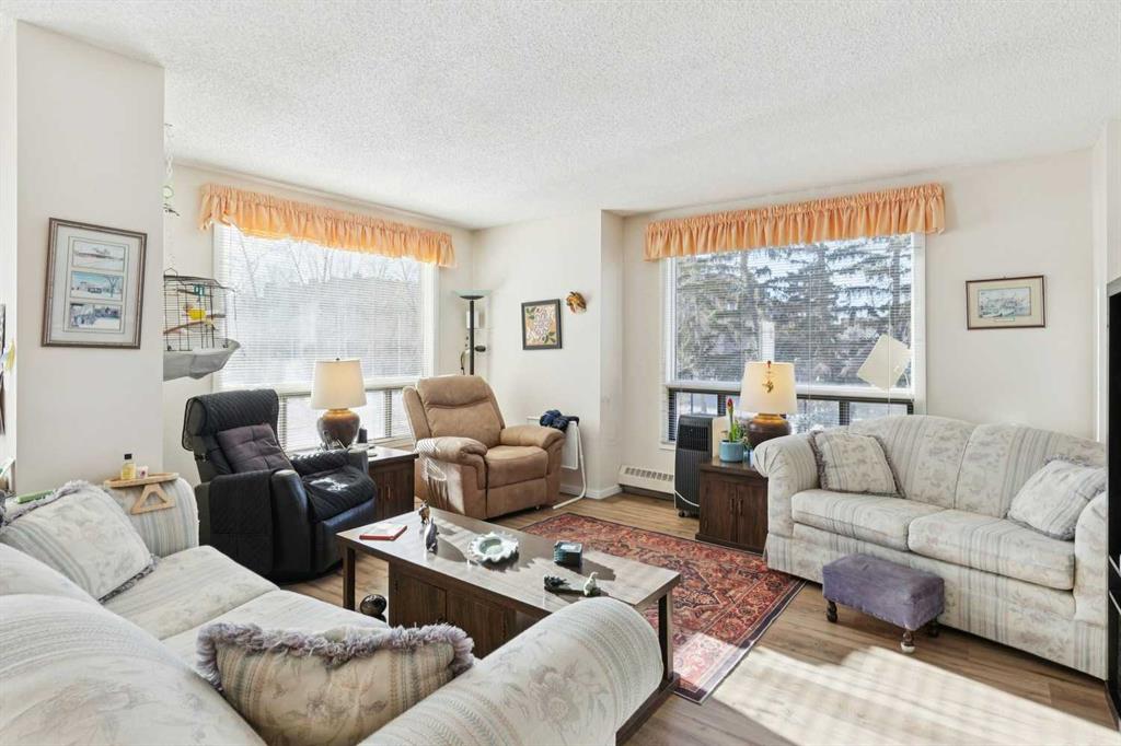 Opportunity knocks at #207. This popular floor plan is a rare find with windows facing south, west and north, is only found on the four corners of the building! Located at the end of the hallway allowing for lots of privacy with only one neighboring common wall. Three exterior walls have windows bringing in an abundance of natural light. The spacious 963 sqft floor plan features a large living room, fully size dining area, open kitchen with upgraded cabinets, primary bedroom with 2 pc ensuite, 2nd bedroom which can be used as an office or den, 4 pc bathroom and a storage room. Full size sliding doors open onto a large south exposure balcony, perfect for a BBQ and additional seasonal storage. Titled underground parking stall #36. Long-term tenants (23 years) would like to stay if possible, currently a month-to-month tenancy. Dorchester Square is a concrete building with post tension cables - maintenance and engineer's reports available. Excellent building amenities: located on the same floor as 207 is a social/games room with billiard table and a large well maintained common laundry room. The main floor has a fully equipped gym, women's sauna and a racquet court. Well managed building with on-site office and manager. Pet restrictions (cats ok, no dogs) and no short term rentals. Many long-time owners in the building which give the building a feeling of community.