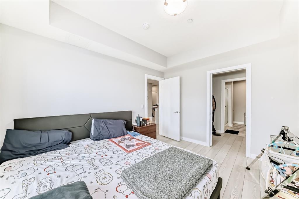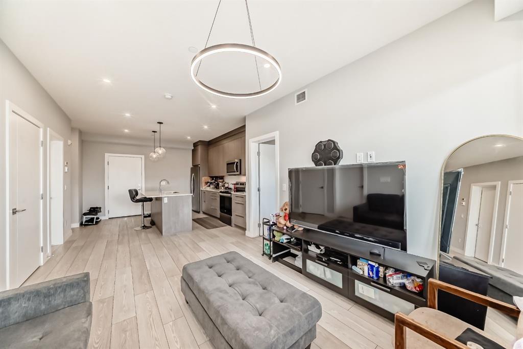 2 BEDROOM + DEN, 2 FULL BATHROOMS, MASSIVE 32 FOOT BALCONY OVERLOOKING THE PARK, UNDERGROUND PARKING! Welcome home to a perfect blend of luxury & location! Ideally situated within walking distance to multiple shopping plazas and just steps away from transit, minutes from major roads, & a 10-minute drive to CrossIron Mills & Costco! Step inside to discover a bright, open-concept layout featuring UPGRADED KITCHEN with CEILING-HEIGHT CABINETRY, STAINLESS STEEL APPLIANCES, and a stylish QUARTZ ISLAND! You will find a cozy DEN that provides the perfect space for an OFFICE or flex area - whatever fits your lifestyle. The TWO BEDROOMS are thoughtfully sepatated for privacy and functionality. The PRIMARY MASTER BEDROOM features LARGE WINDOWS overlooking the HUGE BALCONY with the views of the GREEN SPACE. The WALK-THROUGH closet leads you to a STUNNING 4-PIECE ENSUITE complete with TALL CABINETS, DOUBLE SINKS, GORGEOUS QUARTZ COUNTERTOPS, & WALK-IN SHOWER- your personal spa at home! The second BEDROOM also enjoys beautiful views, along with a WALK-THROUGH closet that connects to the second FULL BATHROOM, that can also be accessed from the hall way, providing ease and convenience for guests. Elegant finishes include TALL CABINETRY & QUARTZ COUNTERTOPS! Step into your MASSIVE 32-FOOT covered BALCONY - perfect for relaxing, entertaining, or grilling under the built-in pot lights as you enjoy the open skies and natural light. Welcome to your new home, where LUXURY, COMFORT, and CONVENIENCE come together beautifully.