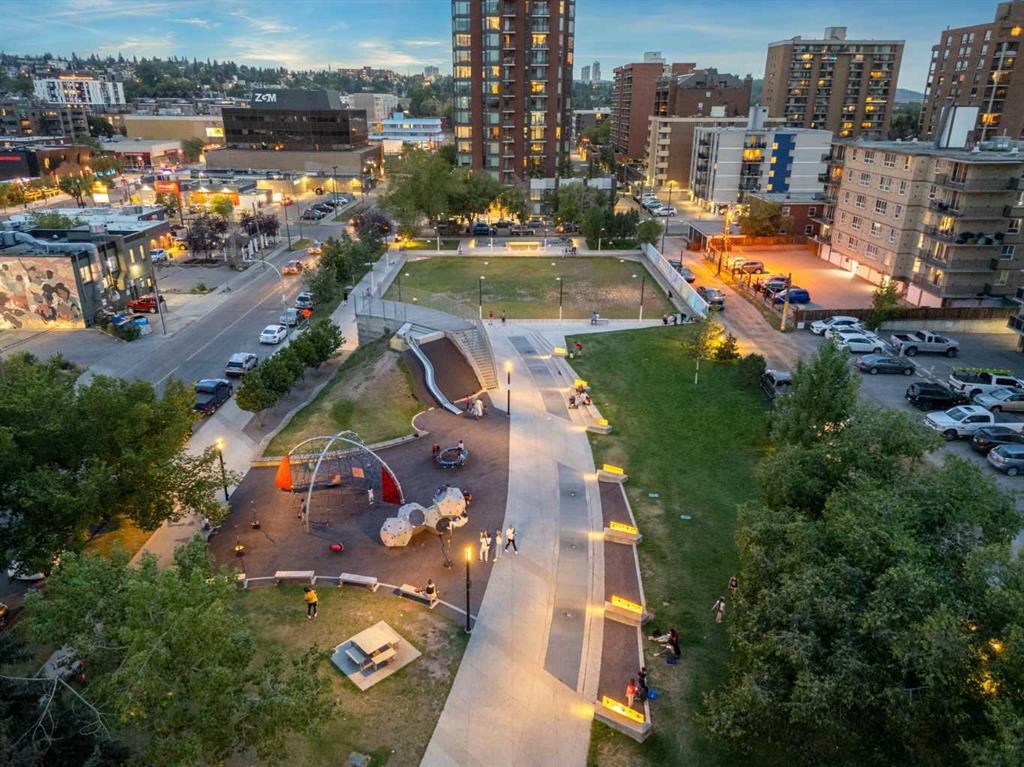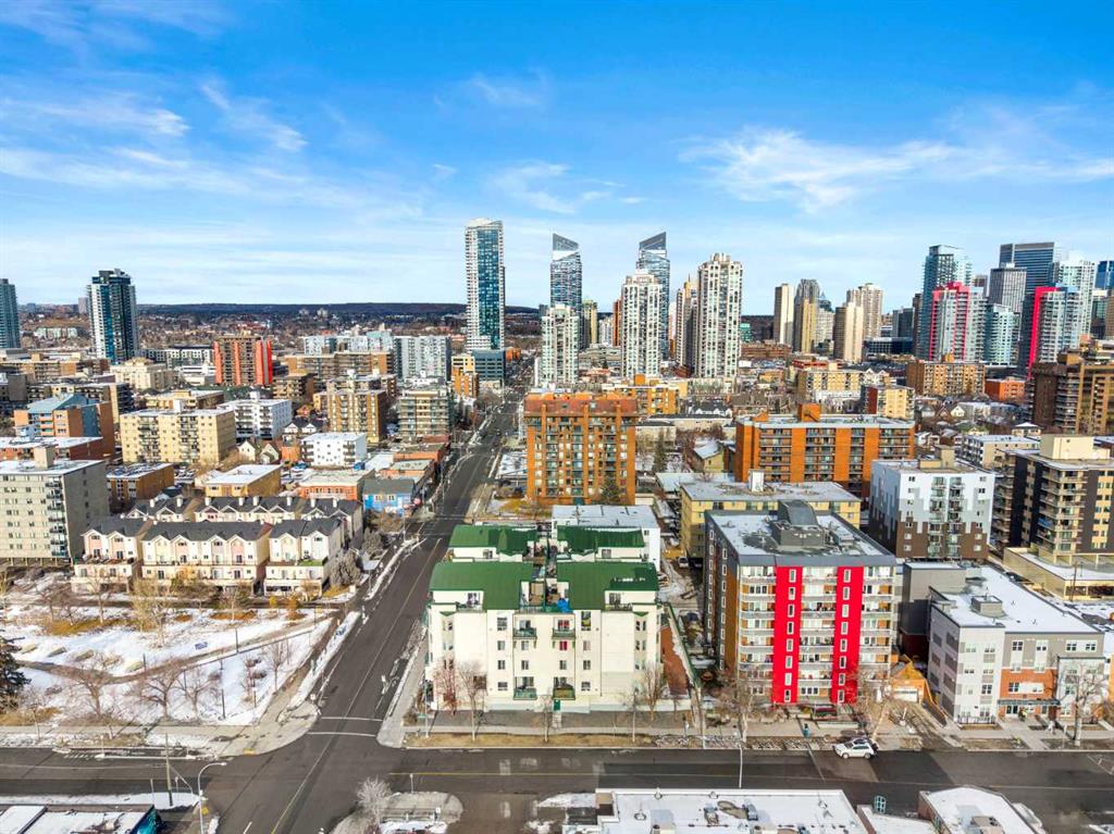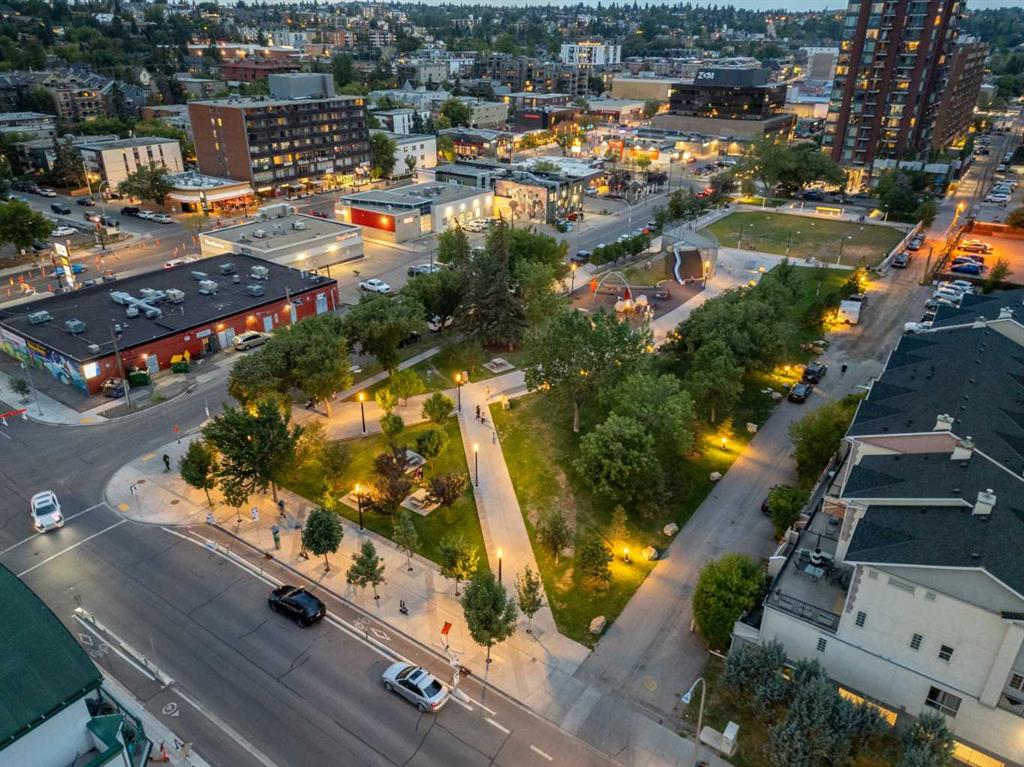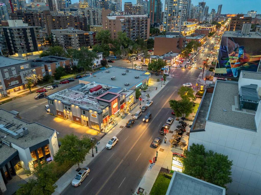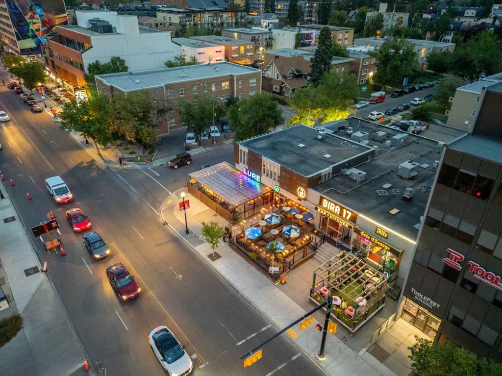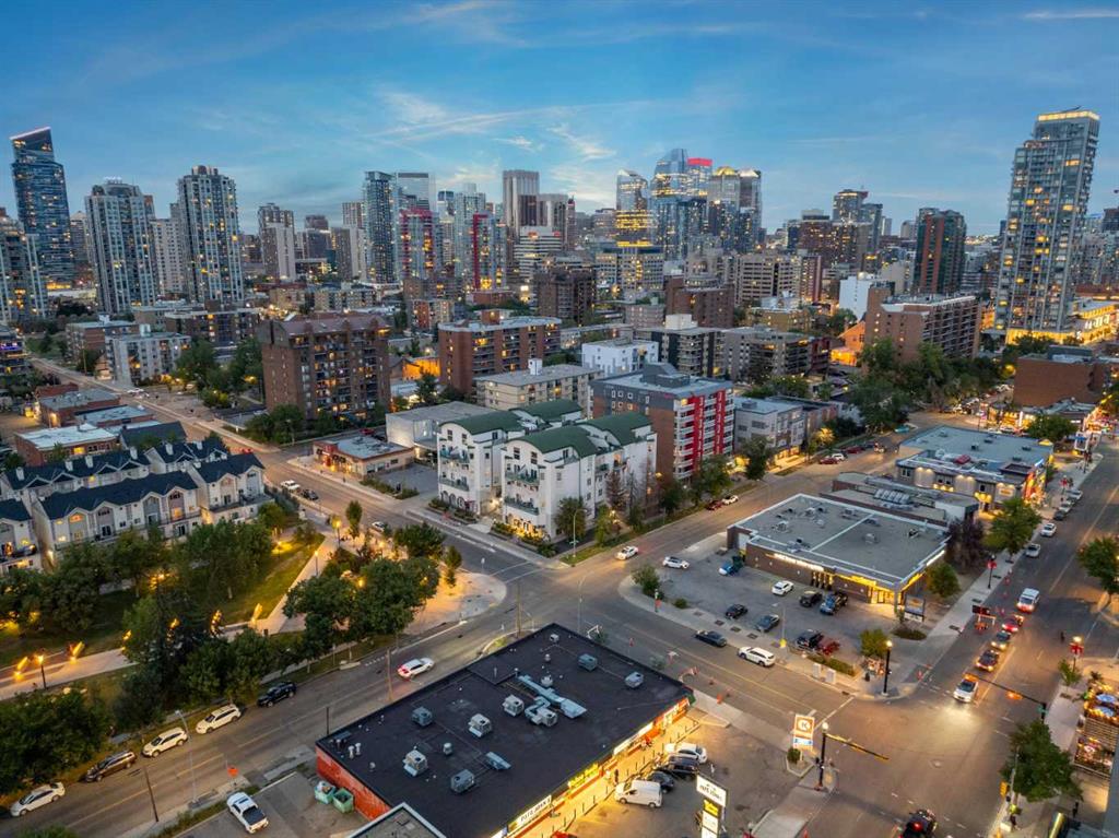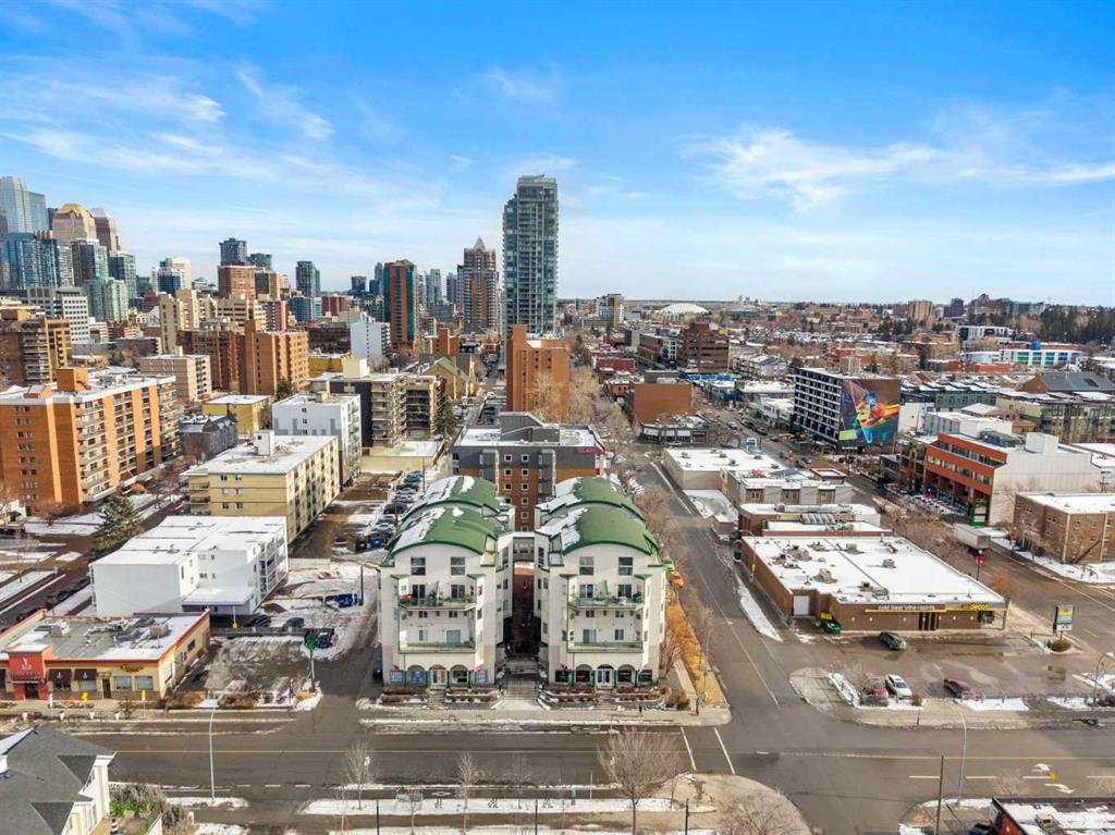 Step into refined urban living in this beautifully upgraded 1036 SqFT, 2-bedroom, 2-bath, two-storey property, featuring a rare private gated entry. This exceptional blend of sophistication and townhome-style privacy is located in Calgary's coveted Beltline, just moments from the vibrancy of iconic 17th Avenue. Inside, the airy open-concept design is enhanced by soaring 9-foot ceilings, contemporary lighting, and curated finishes throughout. The main level is both stylish and inviting, with a spacious living and dining area anchored by a cozy corner gas fireplace—perfect for intimate evenings or elegant entertaining. Patio doors open to a private, sun-drenched south-facing deck complete with a gas BBQ hookup, creating a seamless indoor-outdoor experience ideal for summer gatherings. The thoughtfully updated kitchen impresses with sleek white appliances, modern cabinetry, a tile backsplash, and rich butcher block countertops. A chic 2-piece powder room completes the main floor. Upstairs, retreat to the generous primary suite, which includes a walk-in closet and direct access to a spa-inspired main bathroom, showcasing striking tile work and an oversized walk-in shower with a built-in corner bench. A bright and versatile second bedroom provides the perfect space for guests or a sophisticated home office. Upper-level in-suite laundry and discreet storage enhance everyday convenience. The home features seamless additional storage, including an extra-deep front foyer closet and dedicated storage in the parkade. This unit also includes convenient heated underground parking. Step outside and immerse yourself in the ultimate inner-city lifestyle. Enjoy artisan coffee steps from your door, explore boutique shopping, acclaimed restaurants, and vibrant nightlife along 17th Avenue, or take advantage of nearby schools, transit, bike routes, and effortless access throughout the city. This is more than a home—it's a statement in urban luxury and lifestyle. Experience Beltline living at its finest! *** Make sure to click the 3D virtual tour for the full experience***