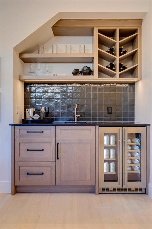 Discover exceptional living in the heart of Calgary’s Inner City with this exquisitely crafted home in the vibrant and highly sought after community of Currie. Meticulously built and designed to impress, this true bungalow villa is a statement in refined elegance, boasting premium upgrades, custom millwork, and a layout that seamlessly blends timeless sophistication with everyday functionality. From the moment you step into the spacious foyer, you're welcomed by soaring ceilings and engineered white oak herringbone hardwood flooring, setting the tone for the superior level of finish throughout. A private front den with views of the charming front porch serves as the perfect home office or library, offering separation from the main living space. The heart of the home is an expansive open concept living area that pairs a classic design aesthetic with modern luxuries. The formal dining area is ideal for entertaining, while the masterfully curated kitchen is the "chef's kiss" featuring custom cabinetry, quartz countertops, and an elite panelled Sub-Zero refrigerator, Wolf appliance package, including a 6-burner gas range with griddle, built-in wall oven and microwave, and Asko dishwasher. An oversized island invites gatherings, and the adjacent open pantry keeps essentials close at hand yet neatly tucked away. The living room is adorned in natural light and anchored by a striking matte black feature fireplace wall, creating a dramatic focal point. Large sliding glass doors extend the living area outdoors to a pergola covered deck, offering a seamless indoor/outdoor lifestyle experience. Retreat to the luxurious primary suite with vaulted ceilings, expansive window, and a custom designed dressing room leading to a lavish 6pc ensuite. Indulge in the deep soaker tub, his/her sinks, and a show stopping walk-in shower with dual rainfall heads and a built-in bench, all appointed with exquisite tile and designer fixtures. Thoughtfully designed for convenience, the main floor also features a spacious laundry/mudroom with access to the heated double garage with aggregate flooring. This unit is the base model and upgrades such as vaulted ceilings are available at additional costs! Lower level presents boiler in-floor heating system, spacious bedroom, full bathroom, grand games room with wet bar, and media room. Homeowners will love the large pergola deck that steps down to their own backyard where gardening enthusiasts can create an outdoor colourful oasis or a relaxation retreat. Located in Currie, a master planned community rich in history and brimming with modern lifestyle amenities, from scenic parks and pathways to dog parks, cafés, restaurants, and top-tier schools. Just minutes from Marda Loop and downtown Calgary. Personalize your dream villa today by meeting with our design experts and customizing the finishing touches to match your unique style and vision.