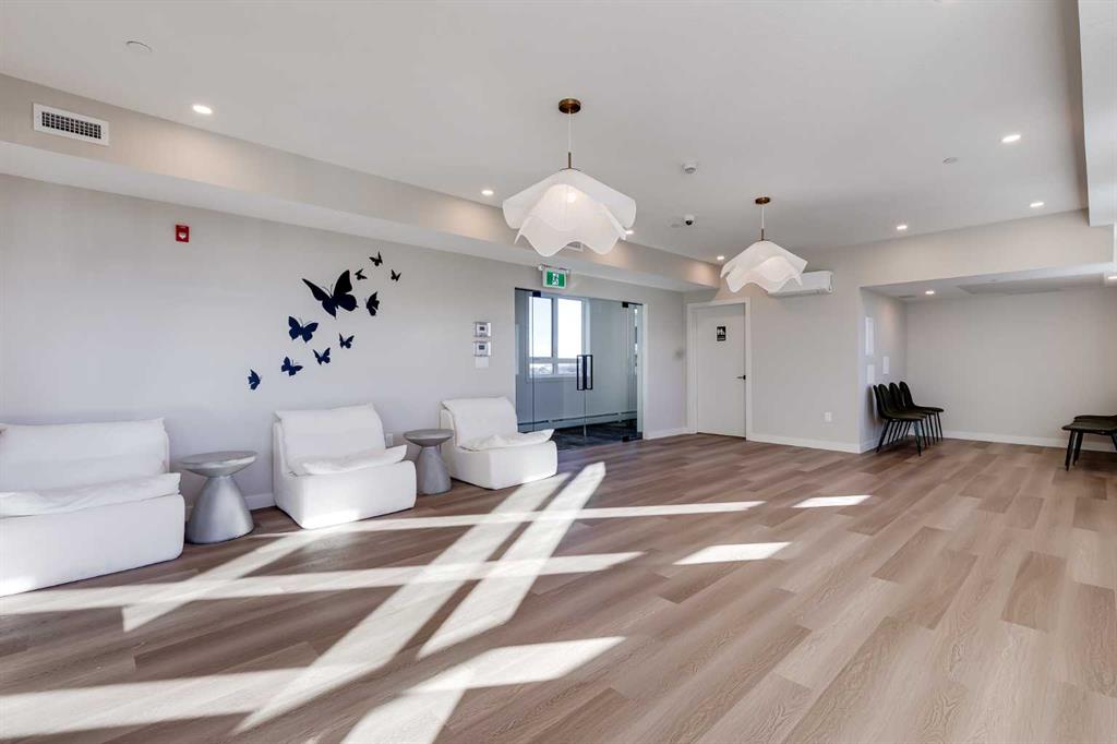 Perched on the top floor, this impressive B4 floor plan showcases 10-foot ceilings and a bright eastern-facing exposure, creating an airy, light-filled living space. The thoughtfully designed 2-bedroom, 2-bath plus den layout offers modern open-concept living, finished with quartz countertops throughout, luxury vinyl plank flooring, and contemporary recessed lighting. The primary suite features a walk-in closet and a private ensuite, while wall-unit air conditioning ensures year-round comfort. The Monarch delivers an exceptional amenity experience, including a fully equipped gym, yoga studio, boardroom, large residents’ lounge, party room with deck and BBQ, two rooftop decks, guest suite, and a dog wash station. Underground parade parking adds everyday convenience. Ideally located in the Cooper’s Crossing community, just steps from Coopers Promenade and close to schools, parks, and everyday amenities, with quick access to 8th Avenue, 40th Avenue, and Highway 2 for an easy commute to Calgary. Additional units are available, offering flexibility to suit a variety of lifestyles. A fantastic opportunity to enjoy low-maintenance, upscale living in one of Airdrie’s premier neighborhoods.