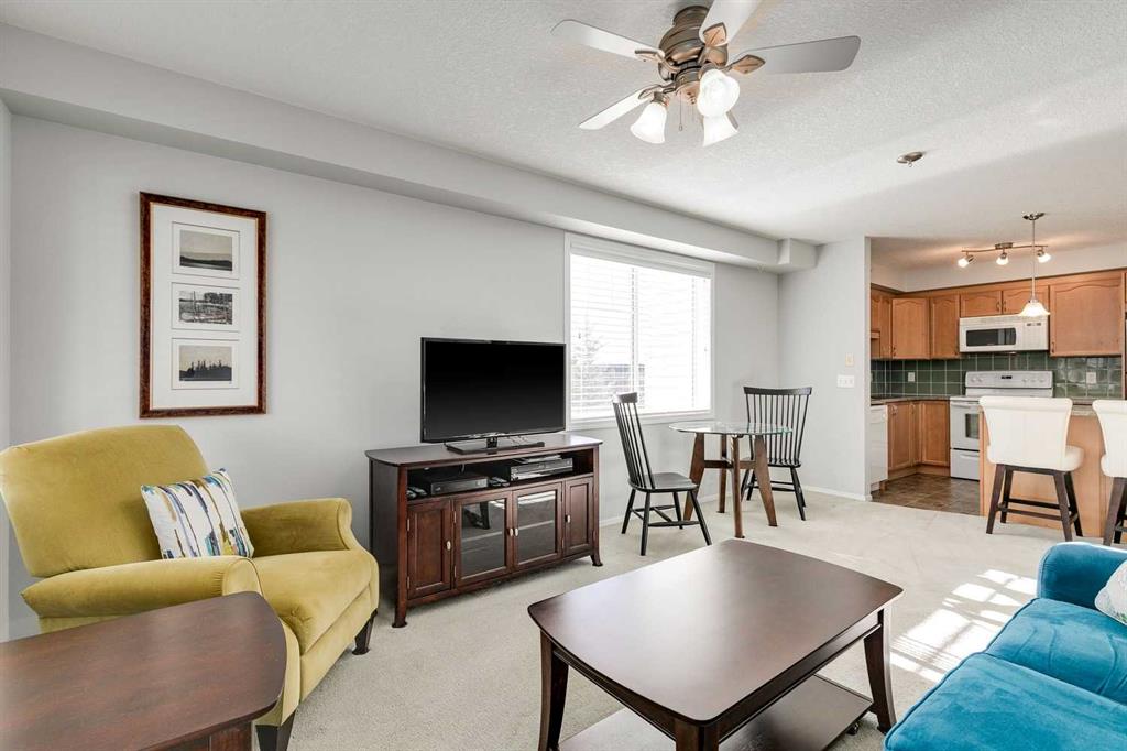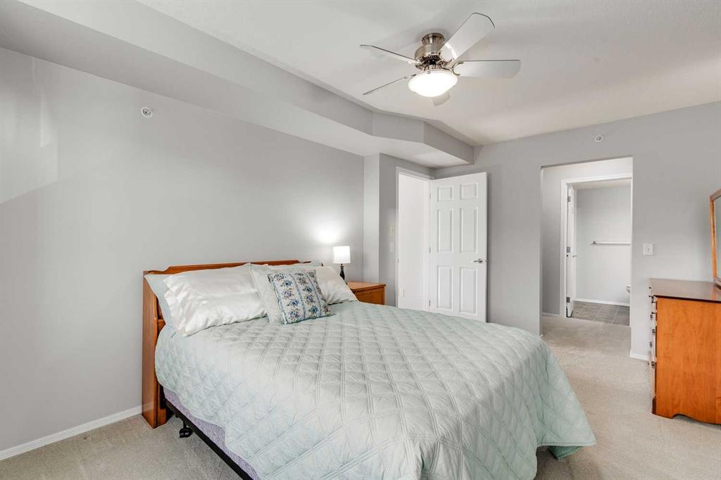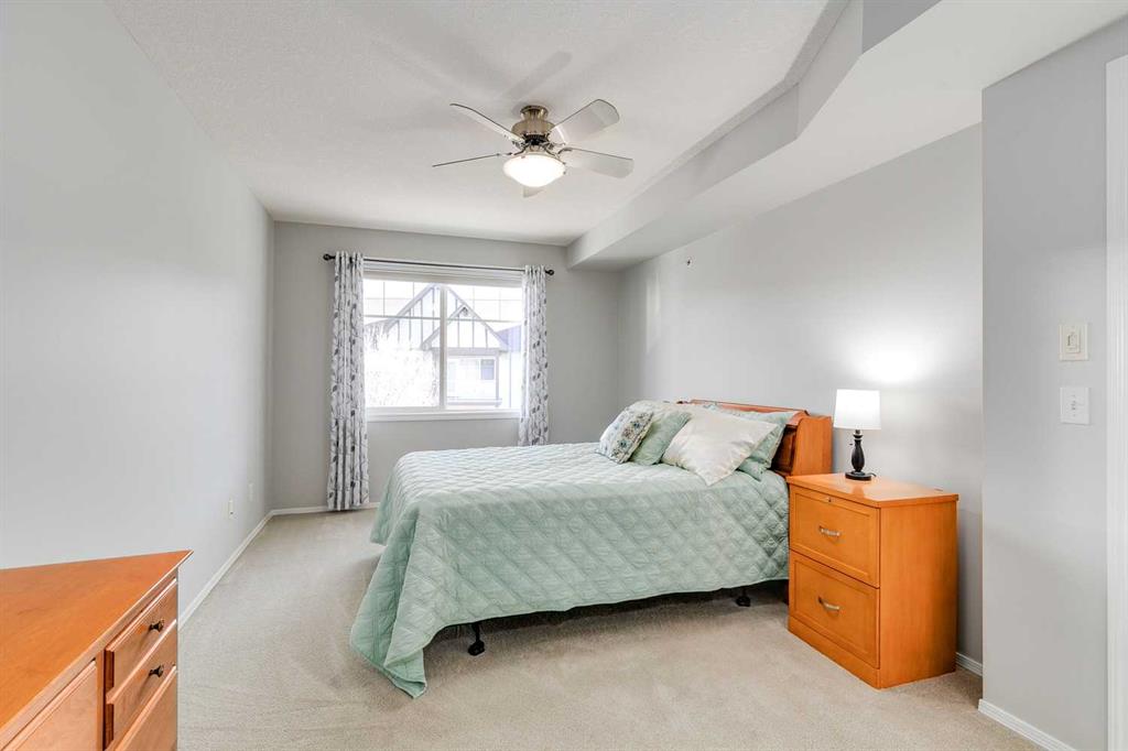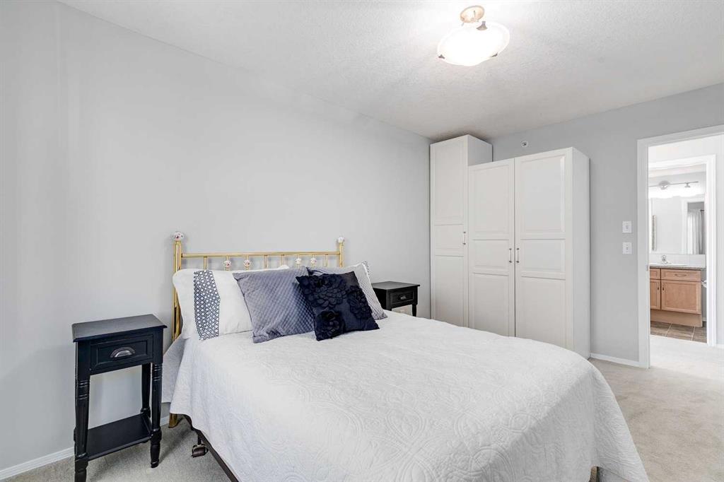 Amazing opportunity in the highly sought-after, 55+ Calvanna Village! Immaculately maintained, this top floor, corner unit is sure to impress the minute you walk in. With almost 900 square feet, this well-designed floorplan offers 2 bedroom and 2 bathrooms. The well equipped kitchen w/maple cabinets provide plenty of storage and counter space, plus the island has room for a couple of stools. Appliances look new and are well maintained. Flooded with natural light, the space feels bright and airy. Open concept design allows for nice flow between your kitchen, dining area and living room w/beautiful SE exposure through all the windows. Patio door leads out to your private balcony complete w/a gas line. Enjoy the outdoor space on those warm days. Spacious primary bedroom can easily accommodate your king bed and all your furniture plus the closet area is complete w/California closet built-ins…a great bonus providing more functionality. 3-pc ensuite with a walk-in shower is what you need for easy access. 2nd bedroom is well sized and a 4-pc bathroom completes the space. Insuite laundry plus a large storage room in the unit is an added perk. Did I forget to mention you have an underground parking stall? Your winter days will be easy, plus an extra storage locker in front. The community that has been created in Calvanna is what residents love. This is the perfect lifestyle for those seeking the convenience of condo living and connection to your neighbours. A private clubhouse offers a social room and a kitchen for larger gatherings. The rec area has table tennis, a pool table and gym equipment. There is no shortage of activities for those looking to participate with cards, bingo and coffee dates to chat with your neighbors. Easy access to shopping and restaurants plus plenty of walking paths along the river. Don’t wait on this one. Premium, top floor units like this don’t come up for sale very often.