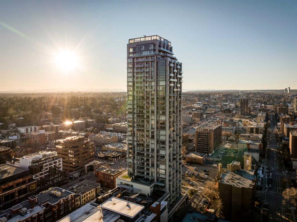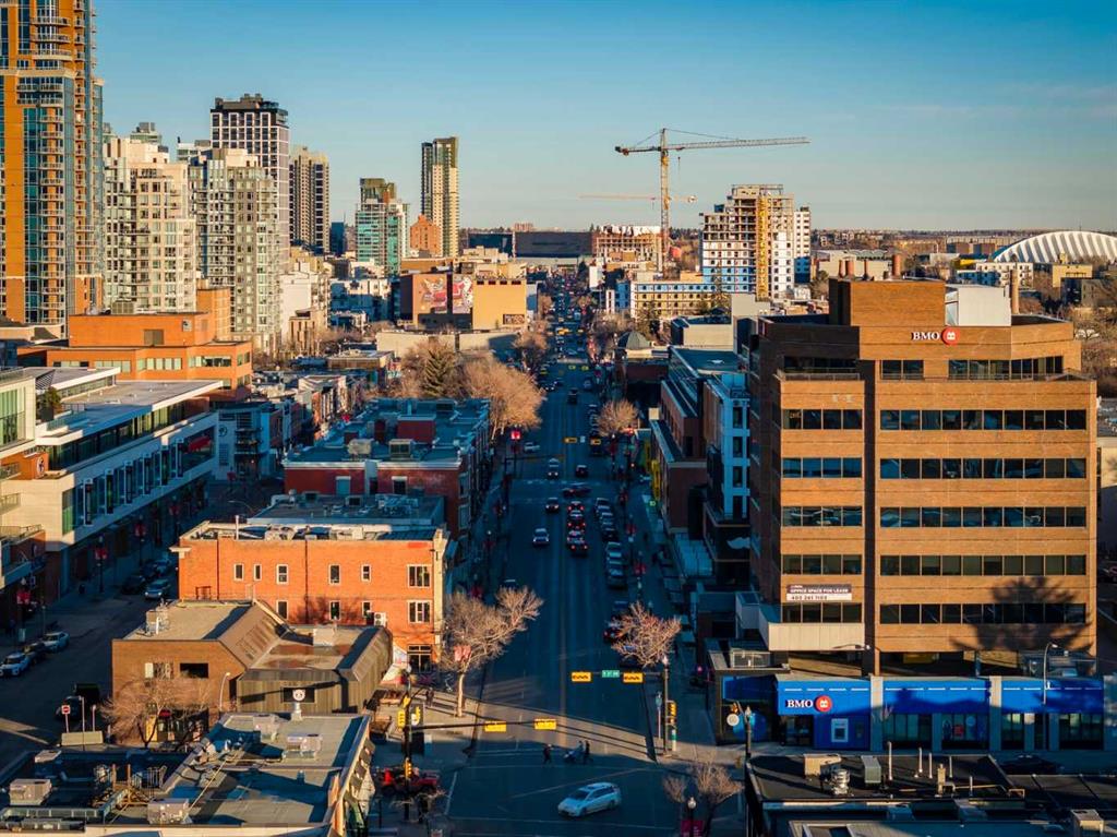 Flooded with natural light, this exceptional corner unit features two walls of floor-to-ceiling windows with beautiful views of the historic Grace Presbyterian Church. Recently updated with brand new flooring in the living areas and bedrooms, the home showcases 9’ ceilings in the living room, high-end finishes throughout, and a sleek, contemporary feel. The chef-inspired kitchen offers a sophisticated blend of dark wood and white cabinetry, quartz countertops, gas range, marble backsplash, and a large central island with breakfast bar. Thoughtful details include a pantry, coffee station, and integrated fridge and dishwasher, making the space as functional as it is stylish. The primary bedroom is a serene retreat with a crisp white ensuite featuring dual vanities, ample storage, a spacious shower, and a walk-in closet with built-in organizers. A second bedroom and full bathroom provide flexibility for guests, a home office, or shared living. In-suite laundry adds everyday convenience. Located in The Royal, a highly desirable building, residents enjoy outstanding amenities including a concierge desk, fitness centre, squash courts, sauna and steam room, a rooftop patio and garden, and a party room with fireplace and pool table. One assigned underground parking stall and a storage locker are included with this unit. Pets welcome with board approval. Set in the heart of vibrant 17th Avenue, this is a true walkable lifestyle surrounded by award-winning restaurants, cafés, boutiques, groceries, and everyday conveniences, with easy access to the downtown core. Perfect for a young professional, stylish couple, or empty nester seeking an active, urban lifestyle in one of the area’s most sought-after buildings.