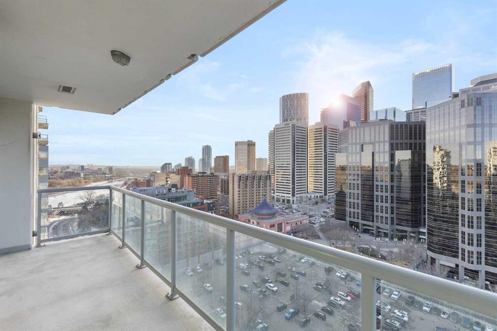 Welcome to 1826 at the Waterfront Condos—Calgary’s premier luxury address where riverfront serenity meets urban sophistication, just steps from Prince’s Island Park. This 1-bedroom + den home pairs upscale finishes with everyday convenience, making it an exceptional downtown home or a perfect executive rental investment. Enjoy captivating VIEWS of the Bow River and Calgary’s skyline, plus unbeatable walkability to top restaurants, cafés, entertainment, office towers, and cultural destinations. Inside, the open-concept layout is enhanced by quiet concrete construction and contemporary design, plus central air conditioning for year-round comfort. The gourmet kitchen features a Sub-Zero refrigerator with dual freezers, an Electrolux gas cooktop, dishwasher, built-in microwave, and sleek quartz countertops—ideal for cooking and entertaining. Floor-to-ceiling south facing windows flood the living space in natural light and open onto a spacious balcony that overlooks the city & river from the 18th floor, creating a private outdoor retreat for morning coffee or evening drinks. The versatile office/flex space is perfect for working from home, workout studio, or extra storage, and is complemented by the warmth and ambience of a gas fireplace. The generous primary bedroom includes a walk-through closet and a spa-inspired ensuite with a deep soaker tub—your own calming escape at the end of the day. Residents enjoy over 6,000 sq. ft. of PREMIUM AMENITIES, including a fully equipped fitness centre, yoga studio, hot tub, sauna, private cinema, and owner’s lounge—all supported by the prestige and peace of mind of full-service CONCIERGE. Secure heated underground parking is complemented by visitor parking and an on-site car wash, while a dedicated parking stall and large storage locker add exceptional convenience. Perfectly positioned along the river pathways and moments from Prince’s Island Park, Stephen Avenue, grocery stores, and the C-Train, this location offers everything you love about Calgary living—right at your doorstep. Discover the ideal combination of luxury, lifestyle, and long-term value at Waterfront.