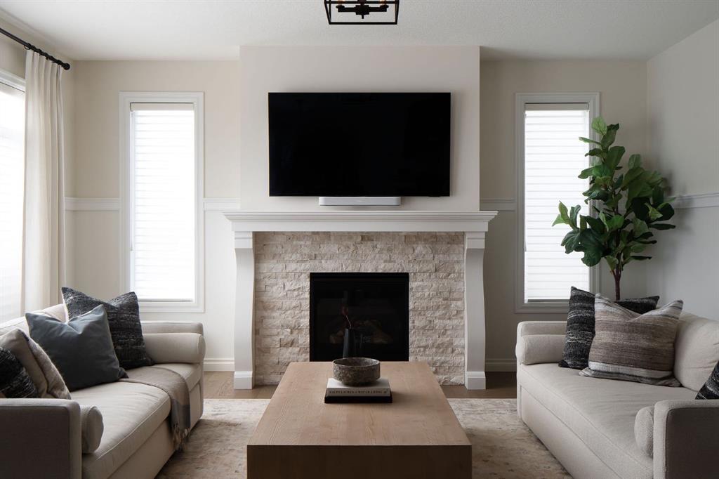 BILD Calgary Award Finalist | Built by Morrison Homes Backing onto a quiet, private wooded setting in Legacy, this beautifully upgraded estate home offers timeless design paired with exceptional functionality. Upgraded hardwood flooring flows throughout both the main and upper levels, complemented by ornate moldings and custom cabinetry that elevate every space. The chef-inspired kitchen is equipped with premium stainless steel appliances, granite countertops, custom glass cabinetry, and a striking statement hood fan. The open-concept main floor features a welcoming great room with gas fireplace, an elegant dining area with triple-panel patio doors, and a private office with custom built-ins. A thoughtfully designed mudroom, wet bar, and large enclosed pantry connect seamlessly to the heated triple attached garage. Upstairs, the spacious primary retreat offers a spa-like ensuite and walk-in closet, alongside three additional bedrooms, a full bathroom with dual sinks, a generous bonus room, and convenient upper-level laundry. The fully finished sunshine basement includes a bedroom with walk-in closet, a 4-piece bathroom, and a large recreation room—ideal for guests, teens, or extended family. Located just steps from the future Living Spirit Catholic School (K–9, opening 2026) and close to parks, shopping, and major roadways, this exceptional home combines luxury, comfort, and a rare wooded backdrop in one of Legacy’s most desirable family communities.