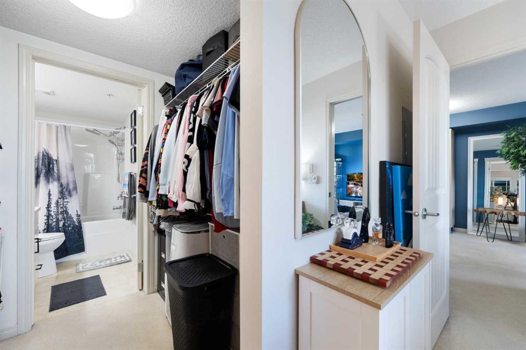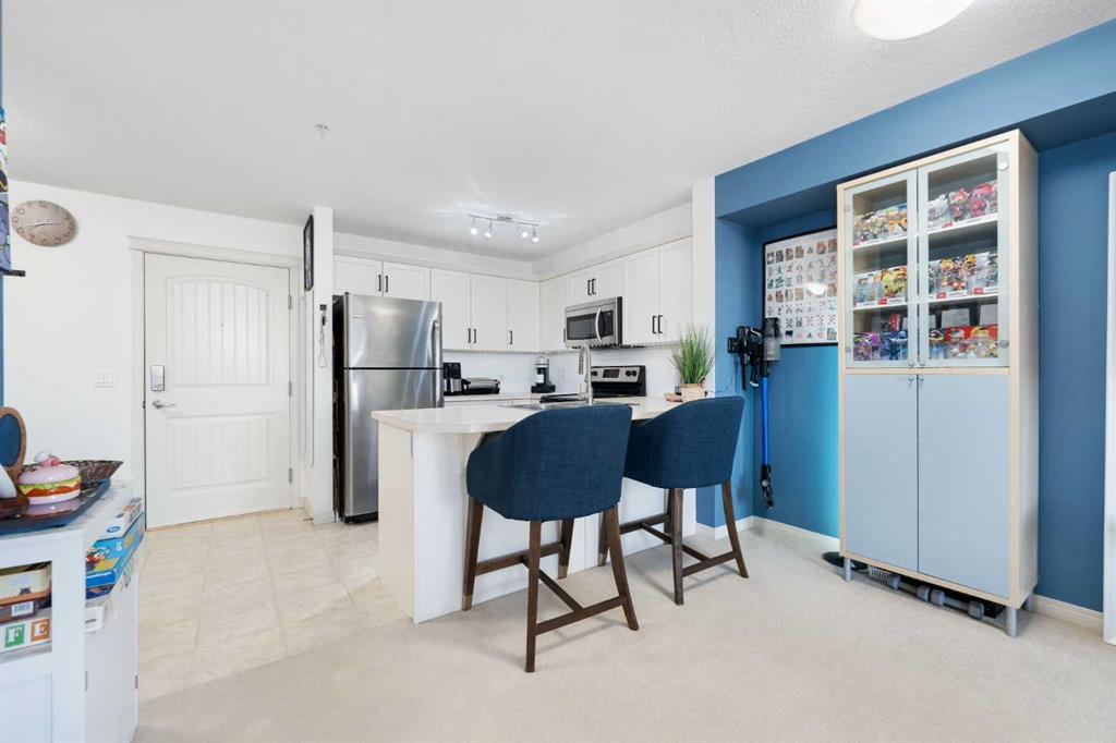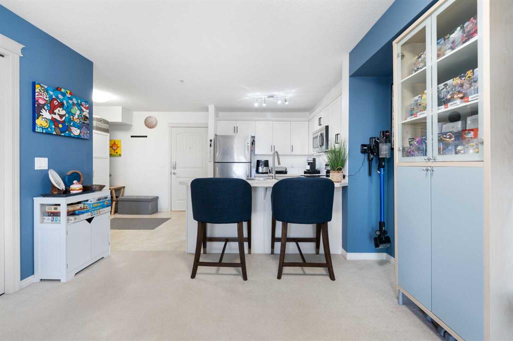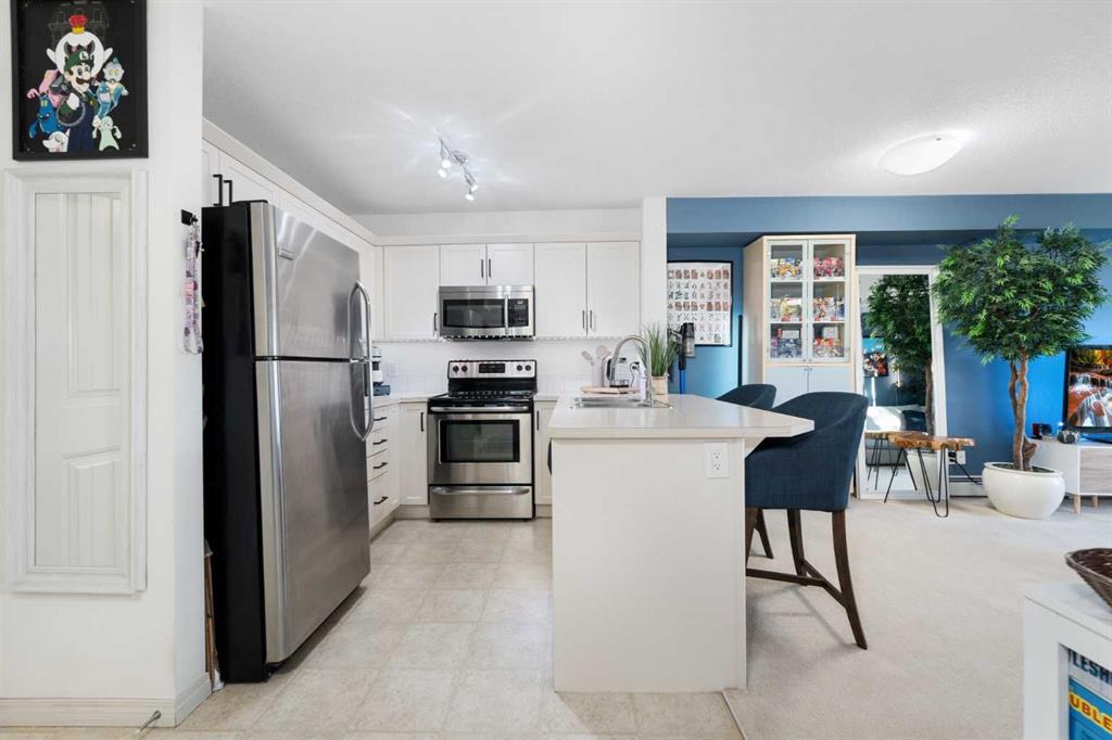 Welcome to Prestwick Place, in the heart of McKenzie Towne! This bright, move-in ready main floor unit combines thoughtful upgrades, modern comforts, and an unbeatable location - perfect for first-time buyers, downsizers, or anyone looking for a turnkey home. Step inside to the foyer, complete with an upgraded storage organizer in the front closet. The open-concept living area is filled with west-facing natural light, offering a serene view of the adjacent field. The kitchen has been thoughtfully upgraded with stainless steel appliances, built-in microwave and hood fan combo, double sinks, upgraded faucet with retractable sprayer, ample cabinetry with breakfast bar, and a stylish new light fixture — perfect for cooking or casual dining while enjoying the bright living area. The spacious bedroom features a walk-through closet with upgraded built-in organizers, drawers, open shelves, a custom drawer for jewelry and sunglasses, and a section designed for long items like dresses. From here, you have direct access to the upgraded bathroom, which boasts a new rainfall showerhead with water filter, upgraded toilet, and modern light fixture. The bathroom also has dual entry from the living area for added convenience. Additional upgrades include a fan light in the bedroom and a keypad entry lock for security and ease of use. Enjoy the large balcony overlooking the park and field, in-suite laundry, a dedicated storage locker in the underground parkade, and titled outside parking with plug-in. The building itself has been recently renovated in 2024, including new hall carpets, fresh paint, and an updated lobby, providing a refreshed and welcoming community. This pet-friendly complex (subject to board approval) is steps from the 130th Avenue shopping plaza, including Walmart, restaurants, and everyday amenities. Commuting is easy with quick access to Deerfoot Trail, Stoney Trail, South Health Campus, Fish Creek Park, and transit options. With thoughtful upgrades throughout, bright west-facing windows, a serene park view, and a prime location near shopping and transit, this Prestwick Place unit offers a lifestyle of comfort, convenience, and modern living. Don’t miss the opportunity to make this well-maintained, move-in ready home your own — schedule your viewing today!