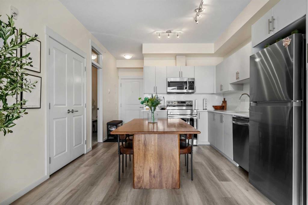 This bright and sunny south-facing 656 sq.ft. (RMS) top floor condo offers a well designed 2 bed + 2 bath layout with an open concept living space filled with natural sunlight. Walking in you are greeted with the functional kitchen which features quartz countertops, full stainless steel appliance package and cabinets galore. The kitchen center leaves plenty of room for a proper dining room table to gather for a meal or view the balcony for an evening sunset. The spacious balcony is perfect for relaxing or entertaining and includes a BBQ gas line. The unit's 9-foot ceilings enhance the open concept, with bedrooms on each end of the layout providing privacy, perfect for roommates, or a WFH office. In suite laundry, a titled underground parking stall and a dedicated storage space are also included with this unit. The primary bedroom includes a functional walk-through closet and 3-piece ensuite including stand up shower. Sage Hill Park II backs directly onto ponds and beautiful green space with a scenic bike path. This unit offers a peaceful setting while remaining close to everything, steps to shopping and amenities located at Sage Hill Crossing, and just minutes to Sarcee Trail & Beacon Hill Centre. Easy access to Stoney Trail ensures a quick and convenient commute anywhere! Call your favourite realtor for a private showing today!