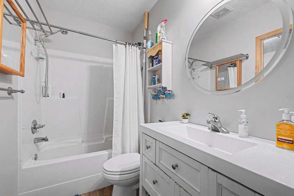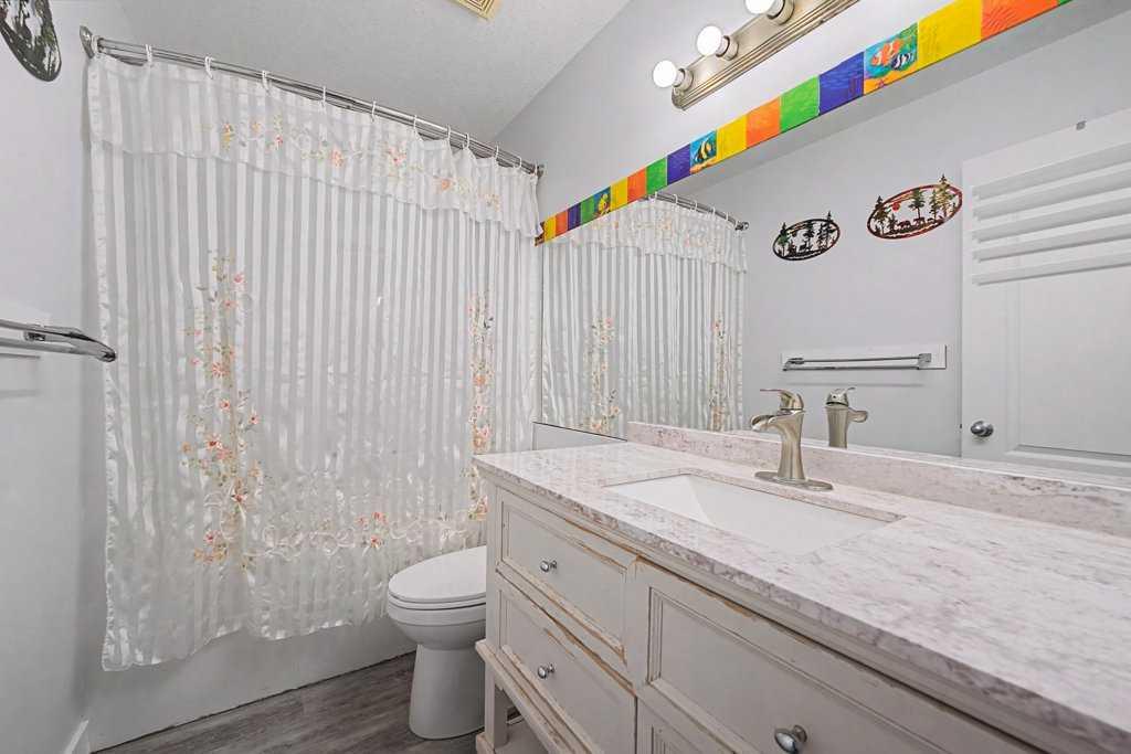 Such a unique "one-of-a-kind" home..... 5 bedroom, 3 bathroom home with recent renovations - backing onto Green Space - Sunny West Exposure with a large deck! Nearly 2200 sq. ft. of "Air Conditioned" comfort - includes a 2 bedroom basement Legal Suite! Be welcomed into the spacious "open plan" design with soaring vaulted ceilings with a large skylight throughout the living room, plus all new windows throughout this home! Much natural light abounds here! All wide vinyl plank flooring on main level! The chef's gourmet kitchen boasts newer white lacquer smooth-finish cabinetry with quartz counters and large island with a stainless steel under mount sink, new backsplash, new high-end fridge and new stove, stylish hood fan, plus Bosch stainless steel dishwasher. The "eat-in" kitchen nook also provides adjacent access to the sunny west fibreglass deck! This unique home offers a spacious main level master bedroom with a 4 pc ensuite - plus walk-in closet, 2 additional bedrooms and another full 4 pc bathroom, plus a main level laundry. The 2 bedroom basement legal suite offers 2 bedrooms, a full 4 pc bathroom, large living area, separate laundry room, plus storage area. The greenhouse offers the perfect garden oasis, the fire pit and apple trees add to the overall ambience and this lot has privacy galore. New roof and new hot water tank. Double attached front drive garage, plus an oversized driveway for 3 cars! Quiet crescent location within walking distance to Transit #3301, Schools, Park, Movie Theatre , Vivo, Superstore and all amenities.